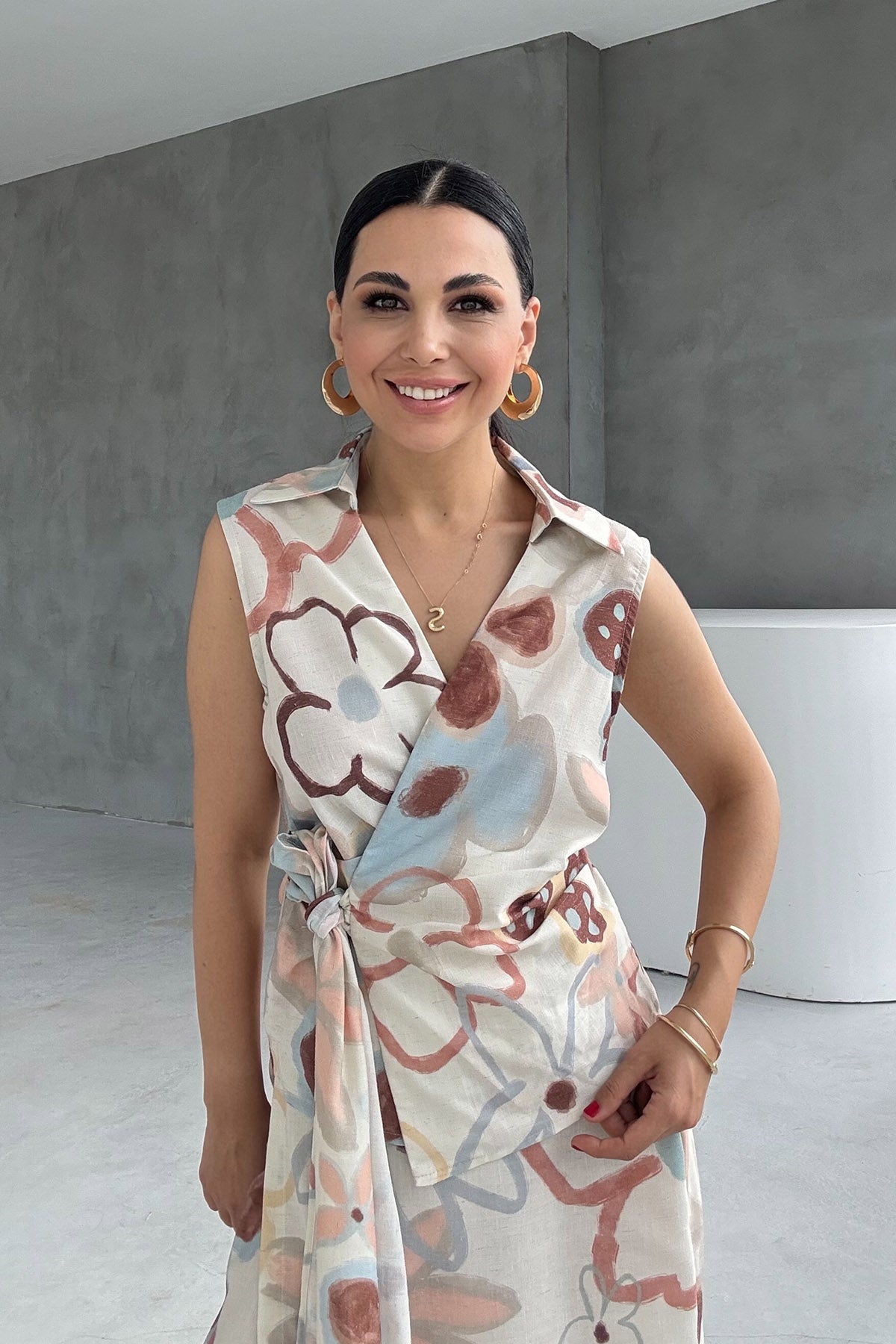 Renkli Çiçek Desenli Ketek Yelek Pantolon Takım SY-3228-Renkli