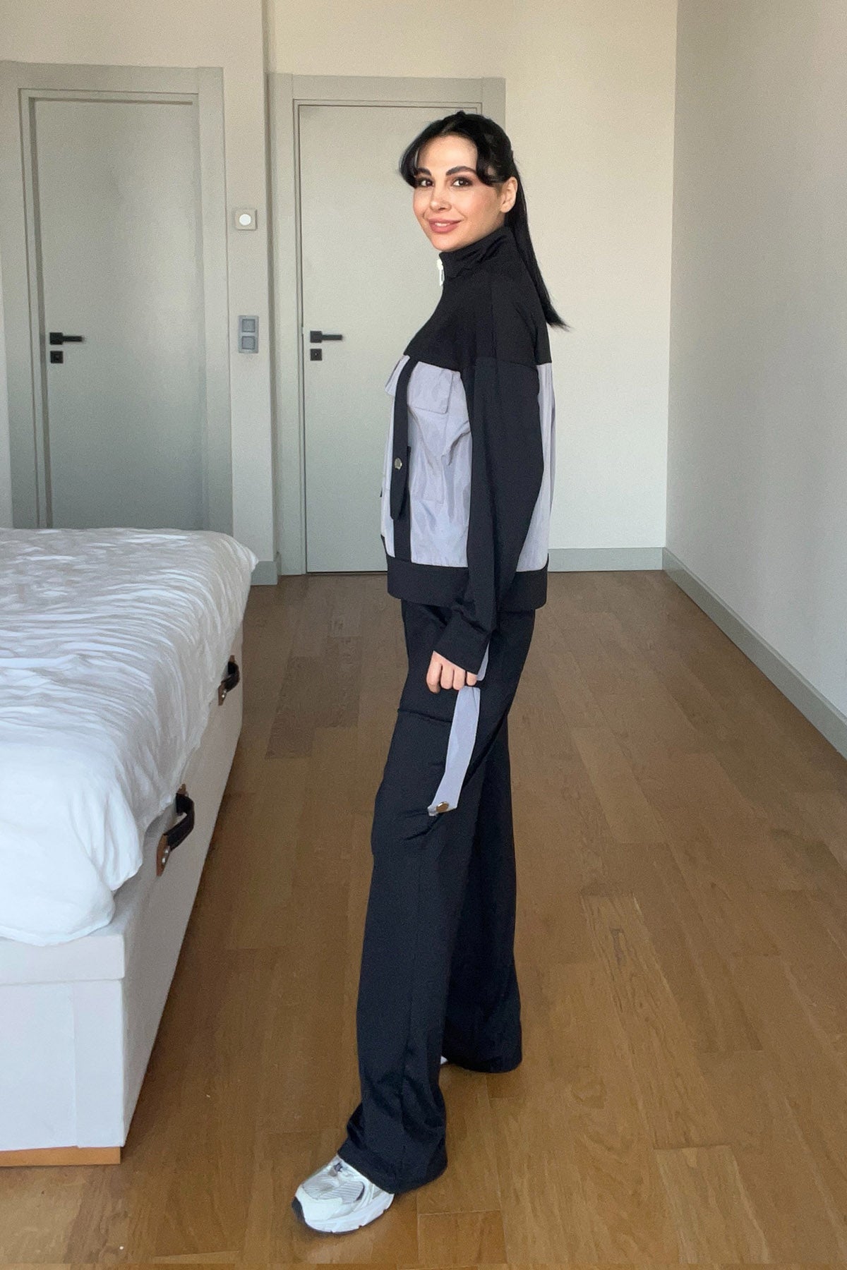 Siyah Blok Renkli Paraşüt Takım SY-2974-Siyah