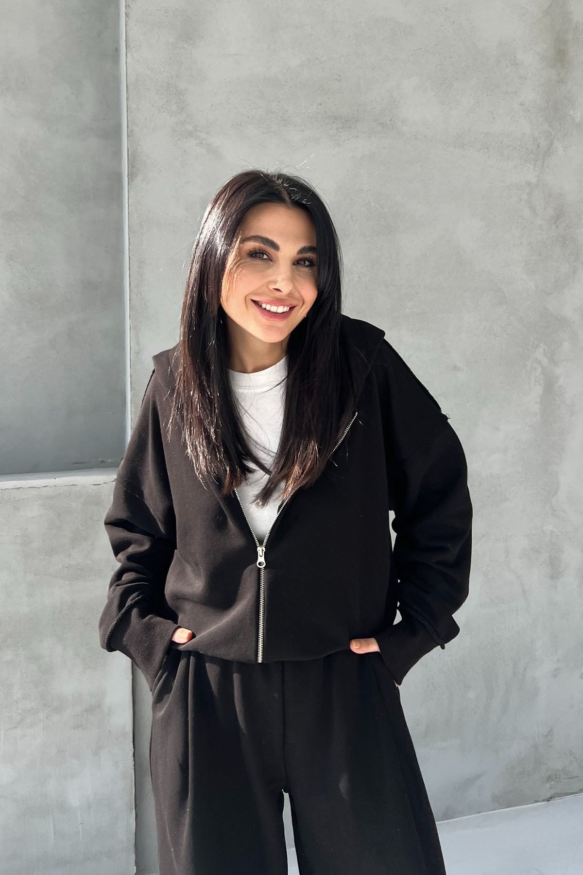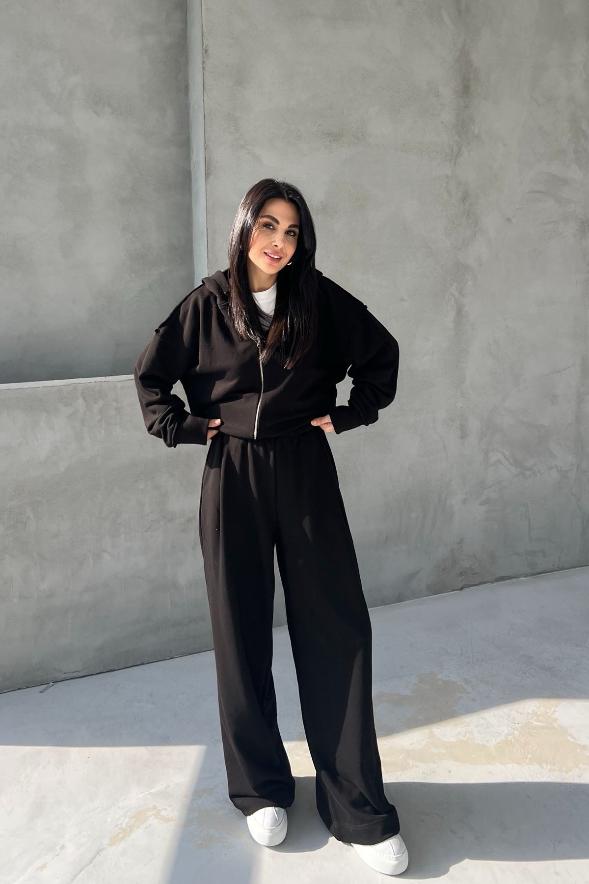 Siyah Pianosa Bol Paça Eşofman Hırka Takım SY-2693-Siyah