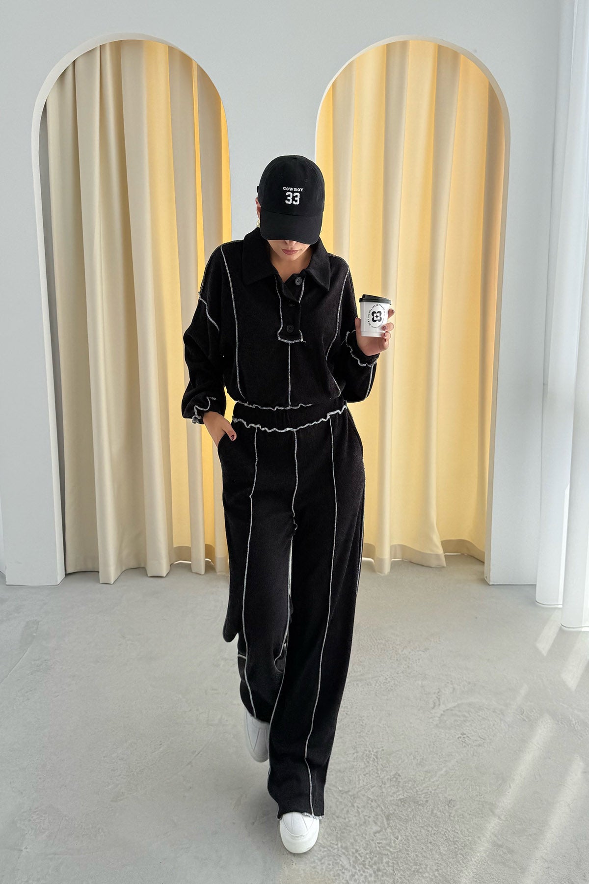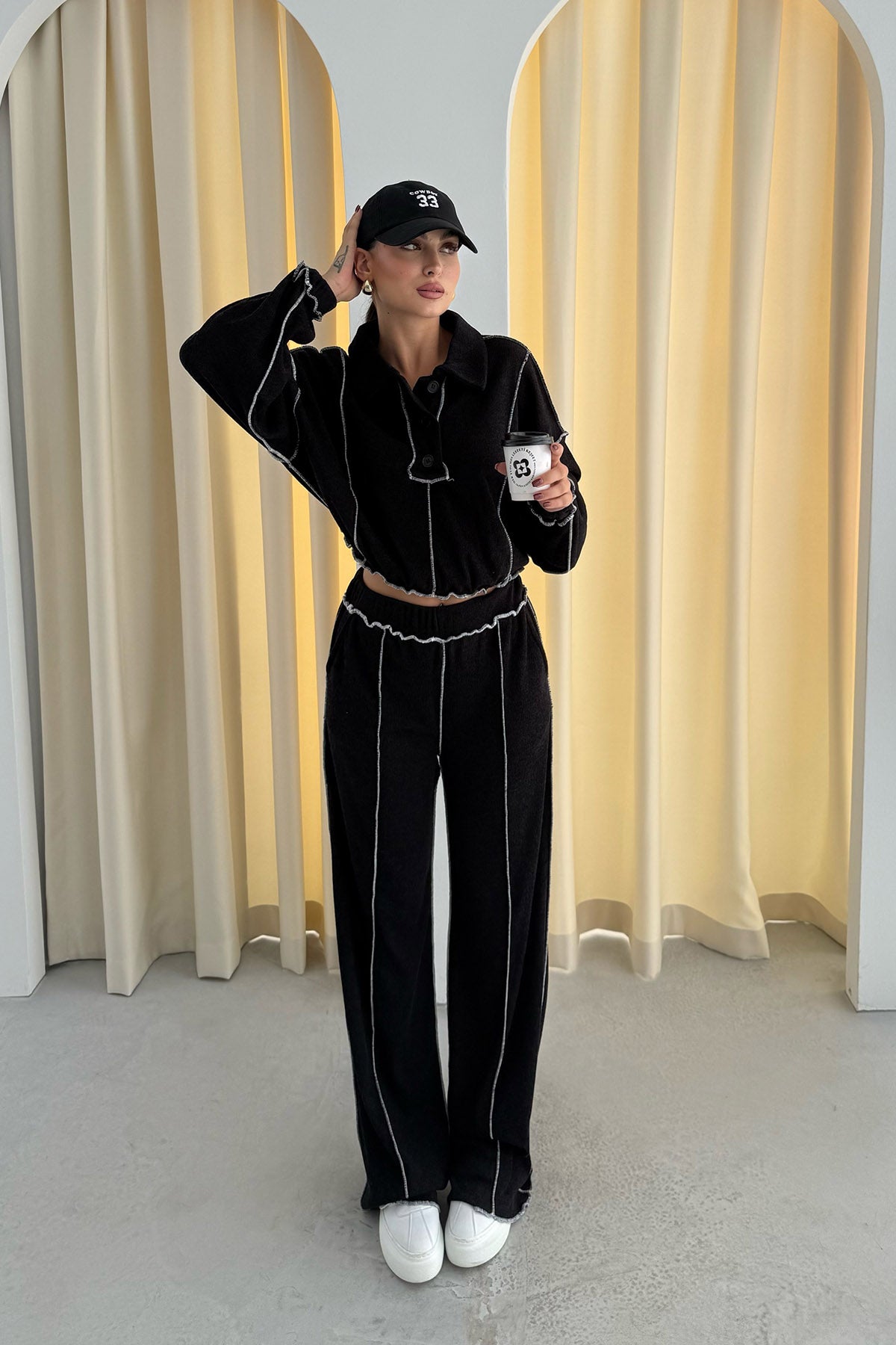 Ürün Detayları ; Sezonun en sevilen Takımları Seda Yalçın Atelier'de sizleri bekliyor. Siyah Ters Dikiş Detay Polo Yaka Triko Takım kombinlerinizin vazgeçilmezi olacak !