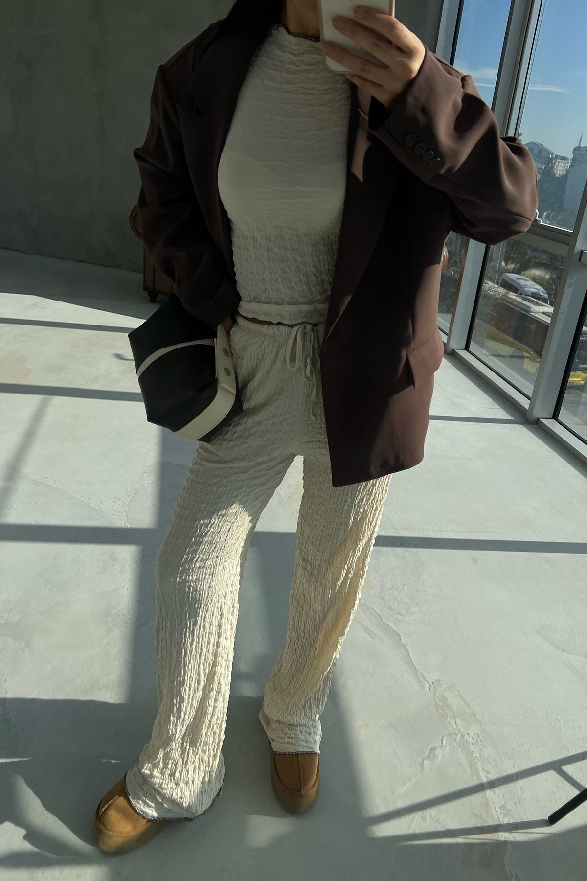 Ürün Detayları ; Sezonun en sevilen Takımları Seda Yalçın Atelier'de sizleri bekliyor. Dokulu Bahar Basic Rahat Takım kombinlerinizin vazgeçilmezi olacak !