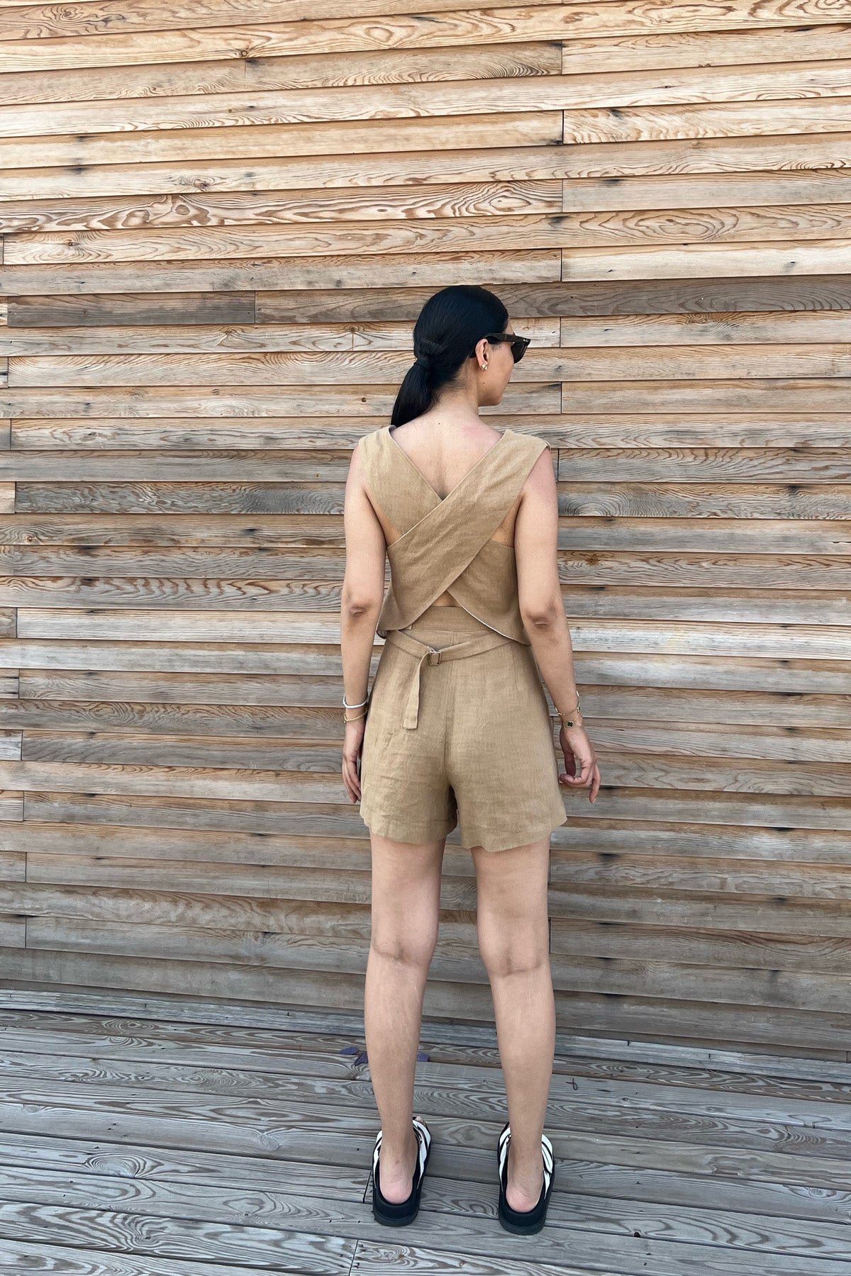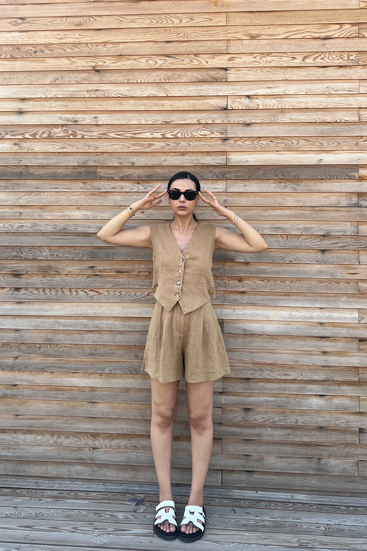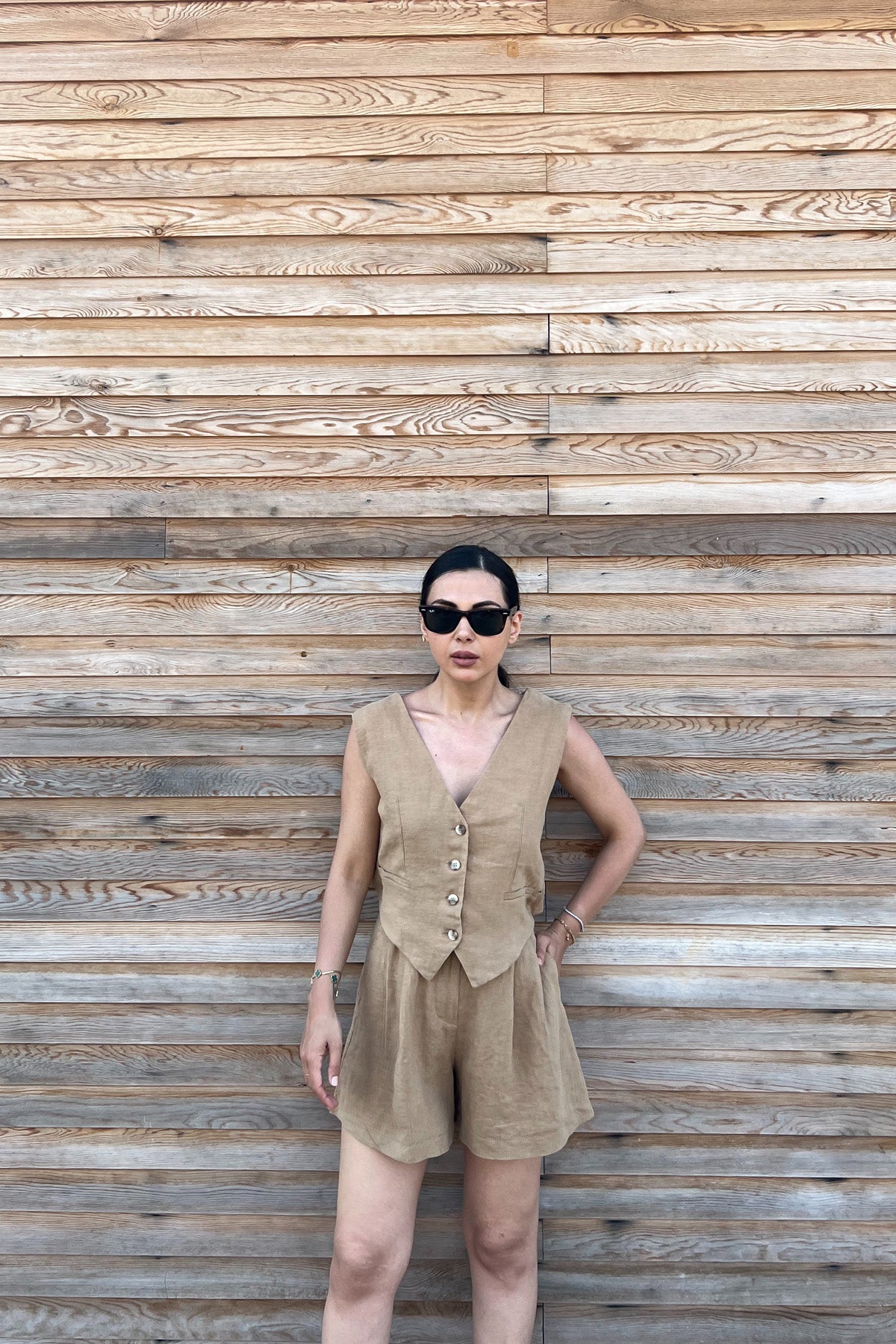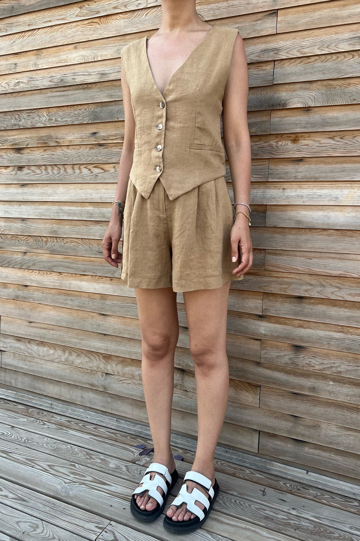 Sırt Detaylı Yelek Şort Keten Takım