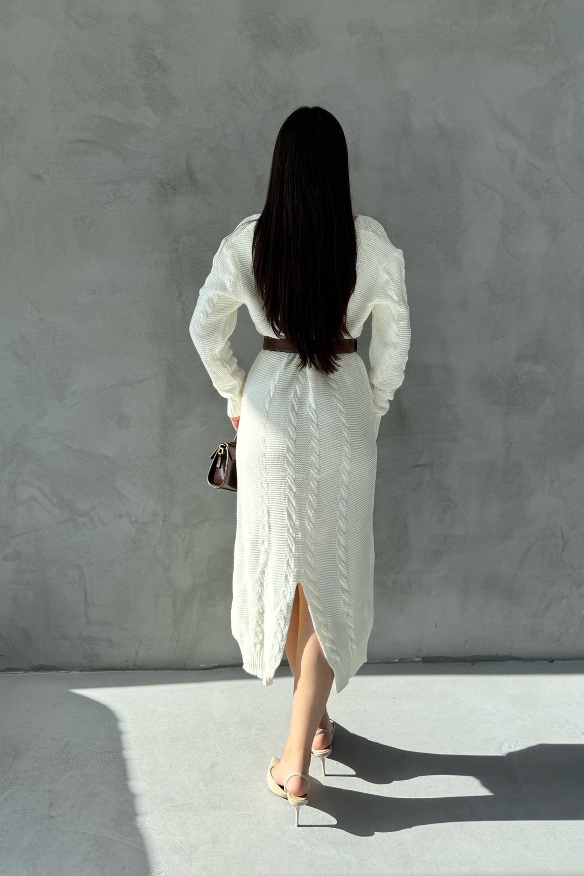 Ürün Detayları ;Arkası küçük yırtmaçlı örgülü triko elbise