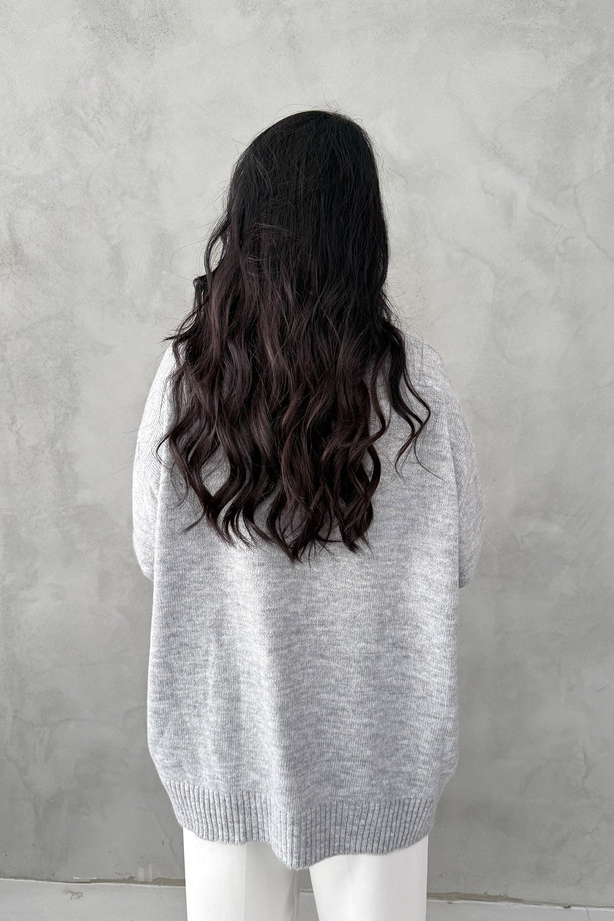 Gri Bisiklet Yaka Lastikli Pinterest Triko Kazak SY-3368-Gri