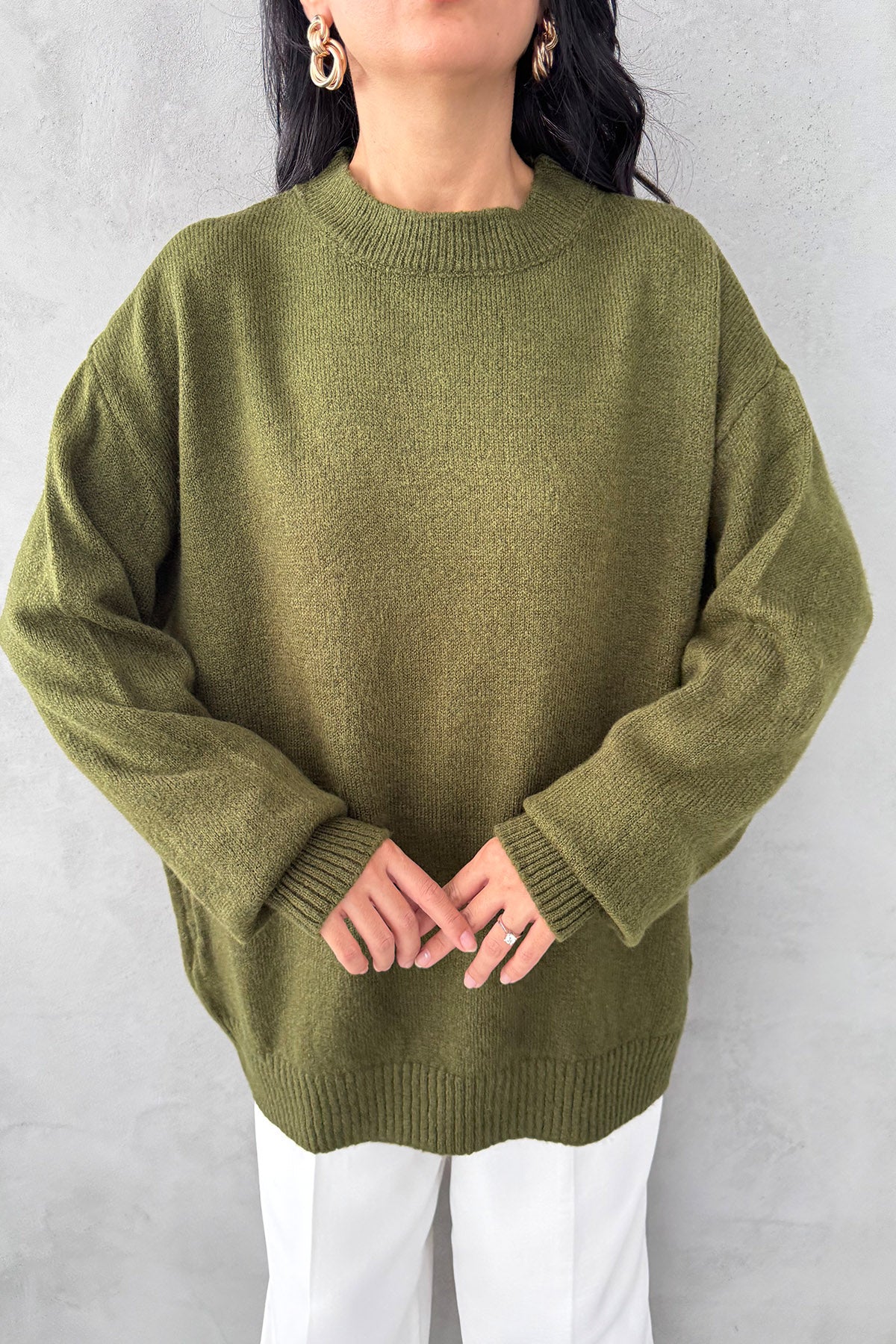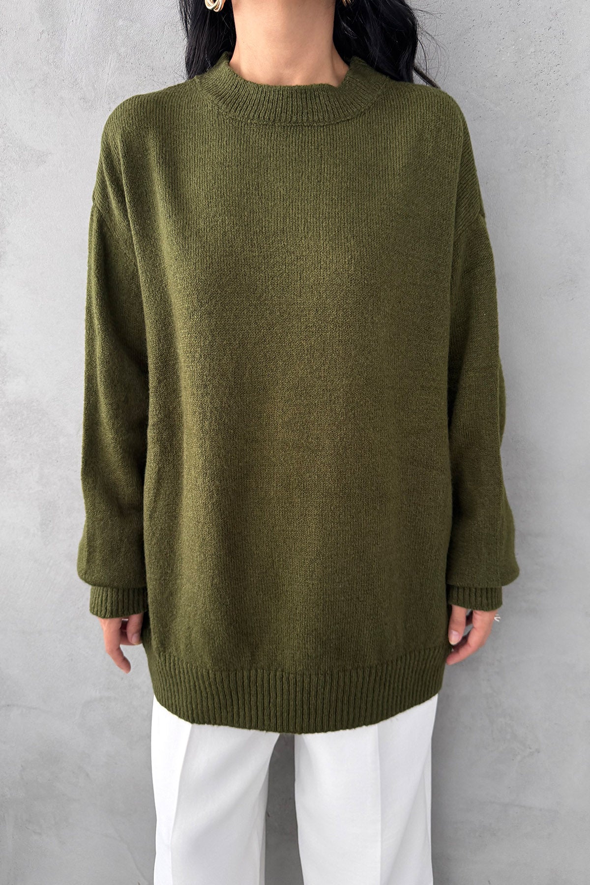 Haki Bisiklet Yaka Lastikli Pinterest Triko Kazak SY-3368-Haki
