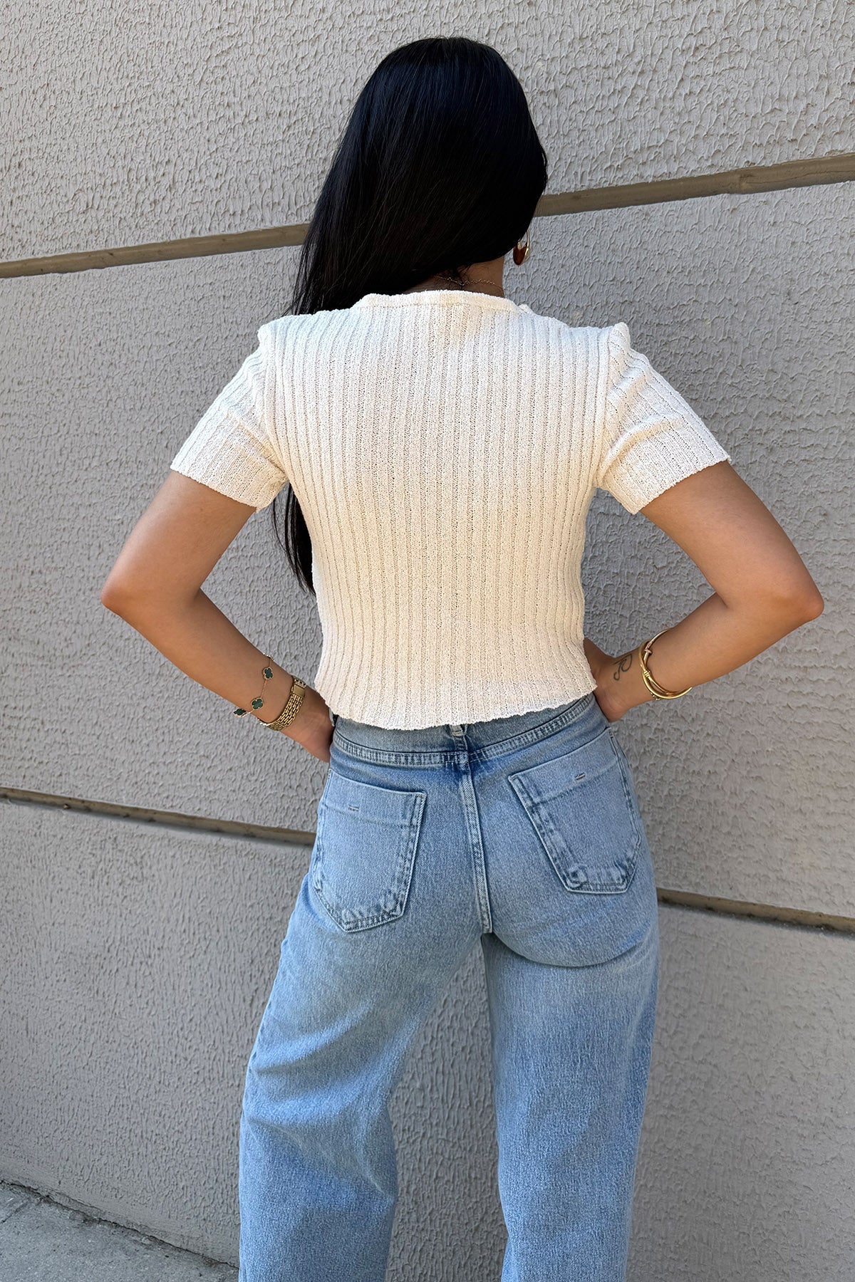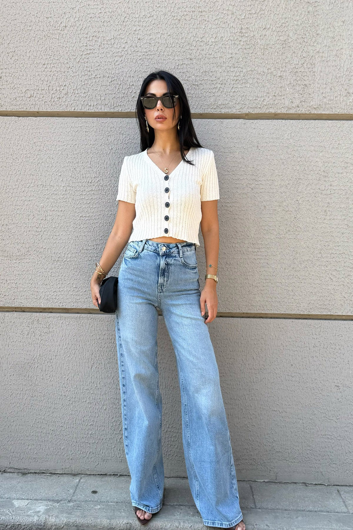 Krem V Yaka Siyah Düğmeli Triko SY-3323-Krem