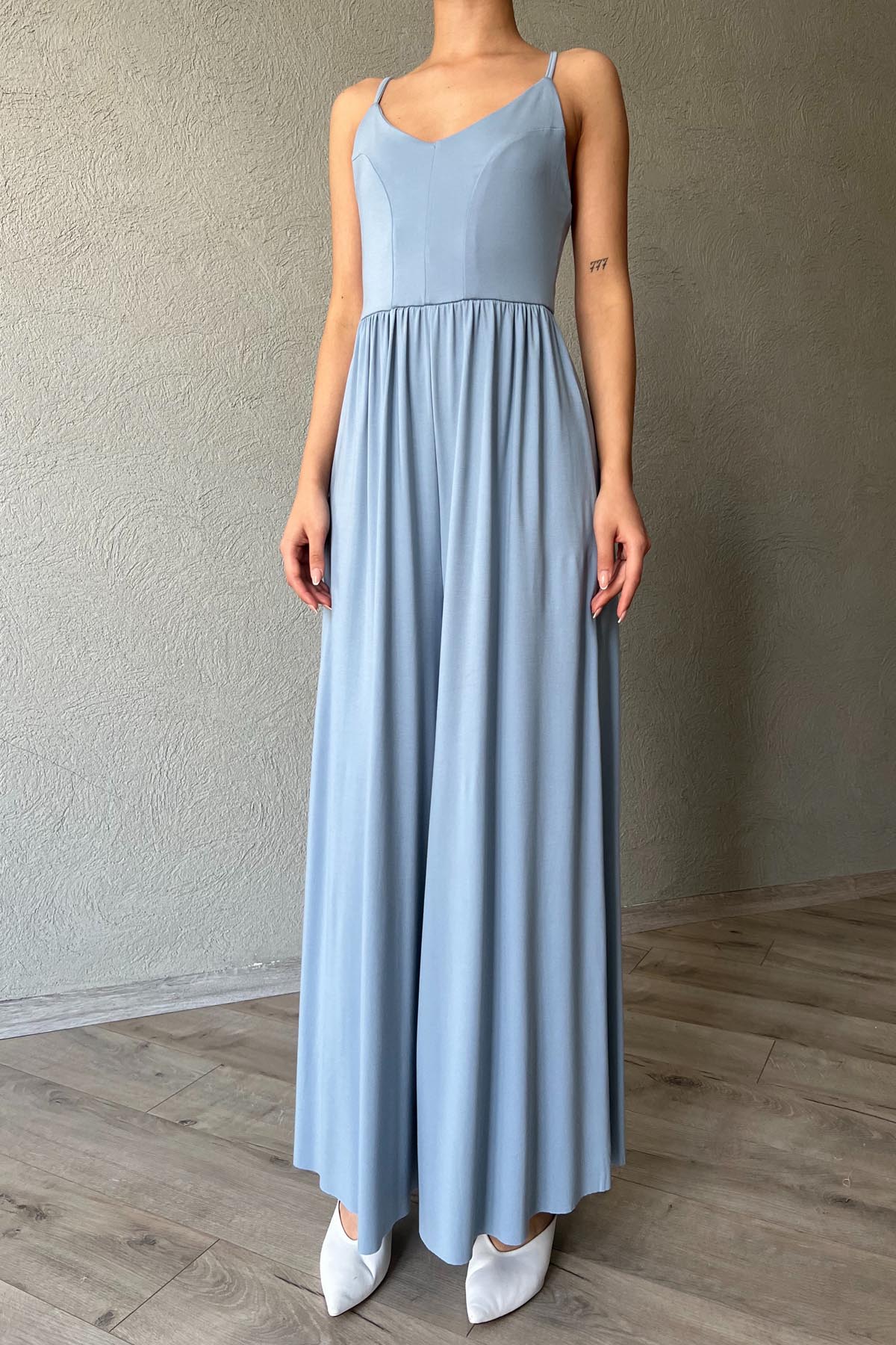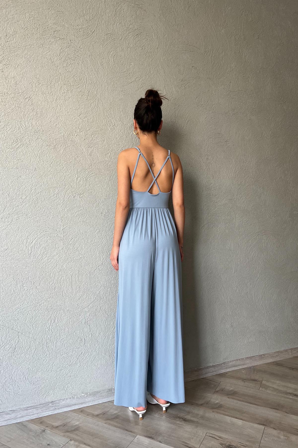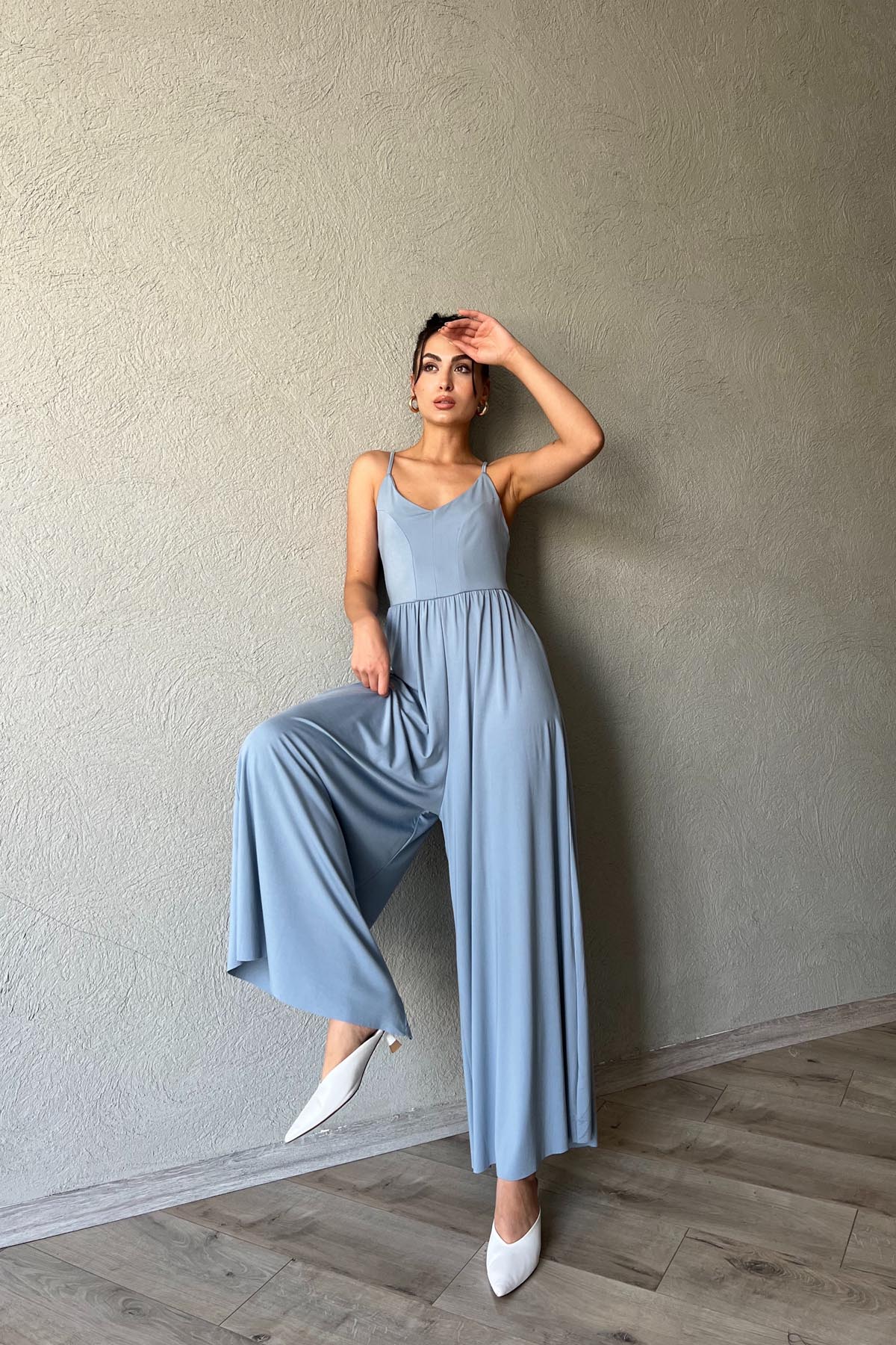 Mavi İnce Askı Detaylı Bol Paça Modal Tulum SY-1980-Mavi