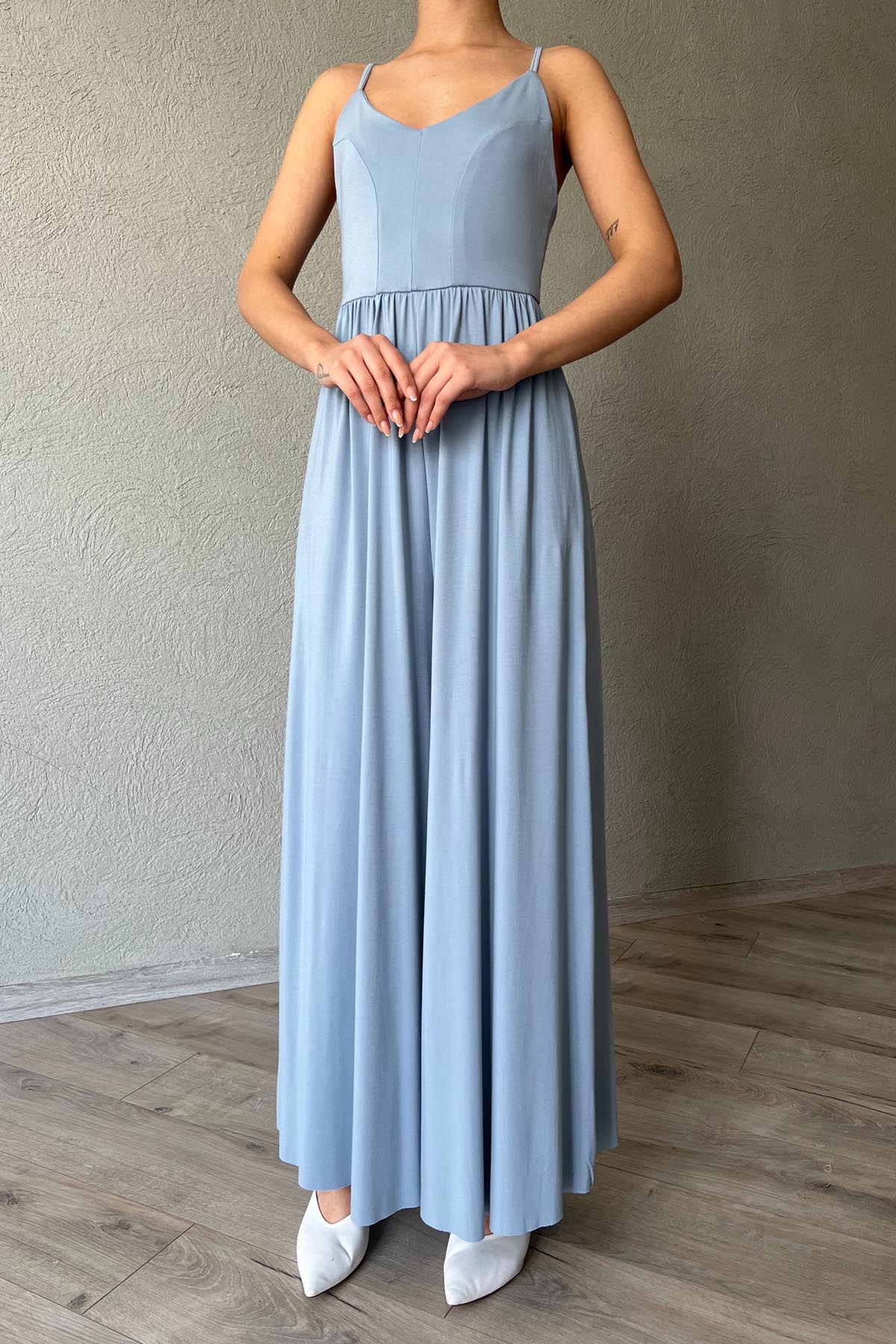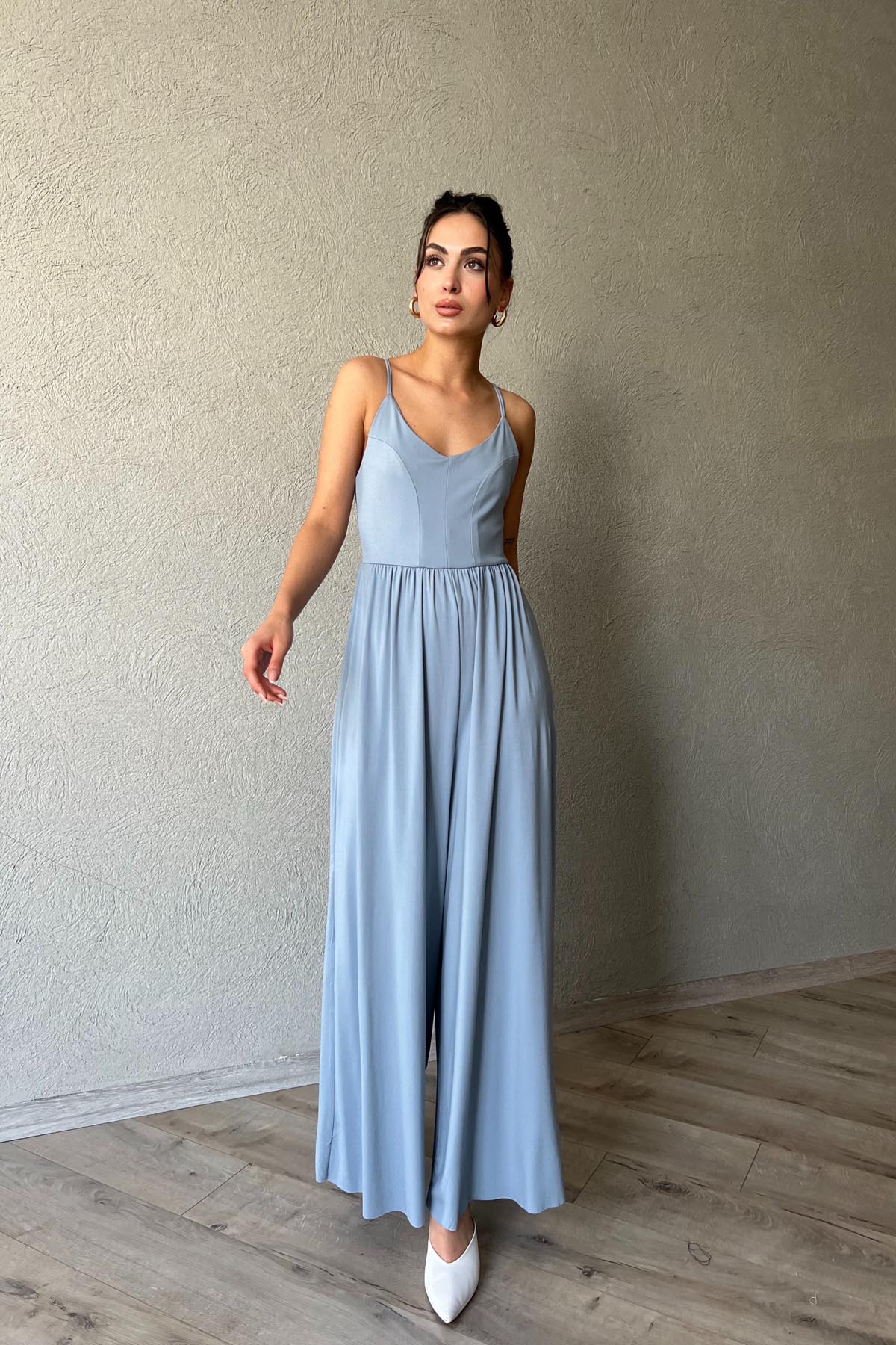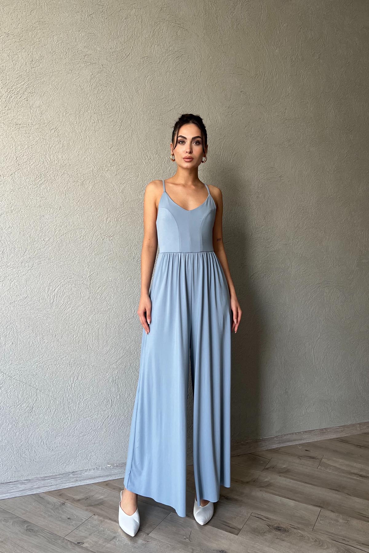 Mavi İnce Askı Detaylı Bol Paça Modal Tulum SY-1980-Mavi