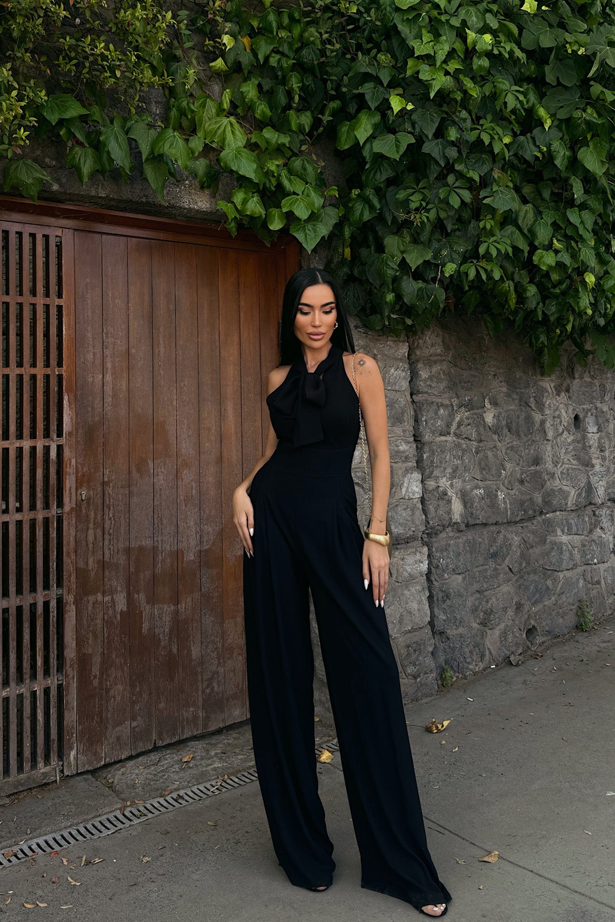 Siyah Rahat Kesim Bağlama Detaylı Tulum SY-3197-Siyah