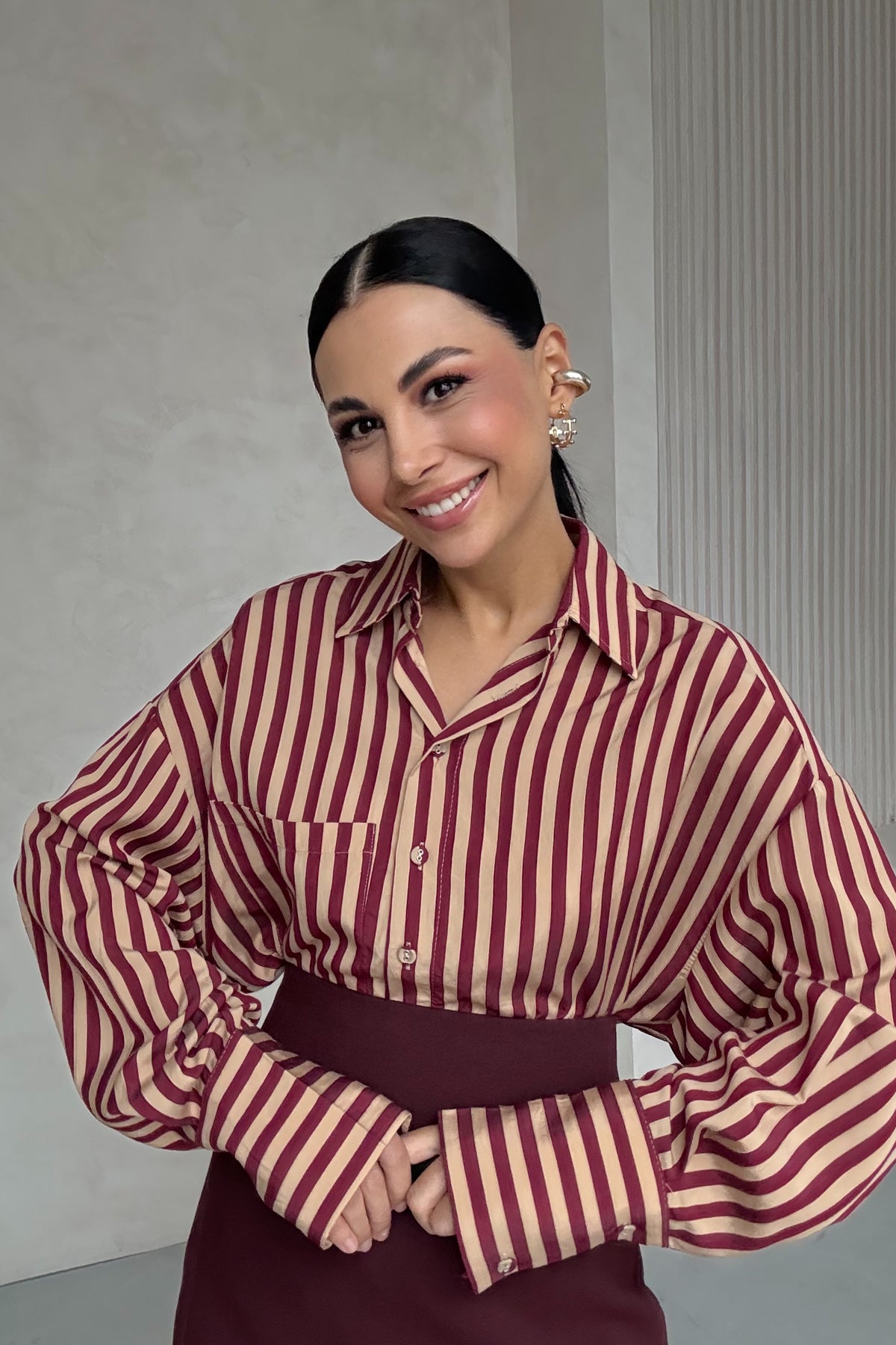 Ürün Detayları ; Bordo Çizgili Premium Gömlek