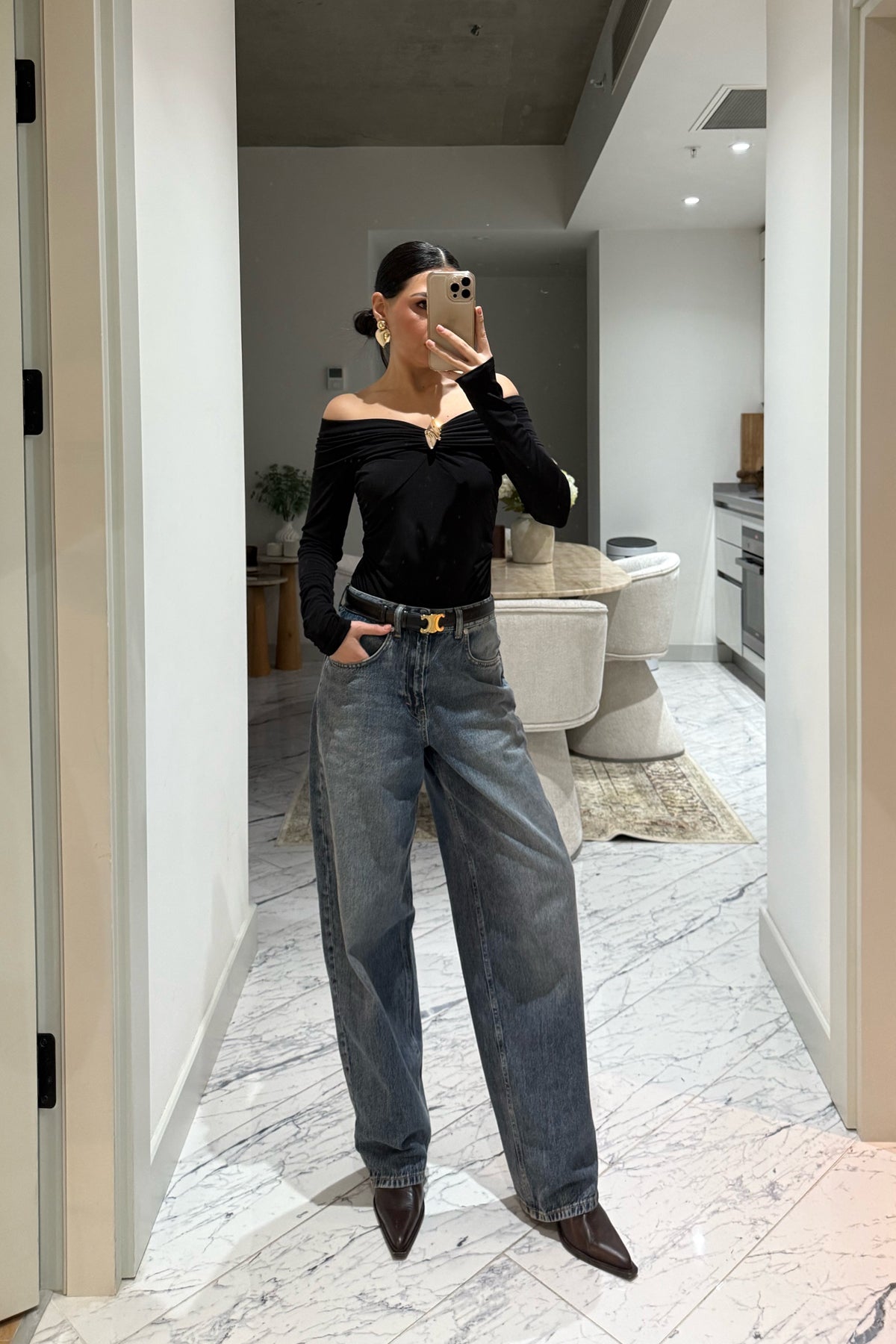 Ürün Detayları:Siyah Carmen Yaka Broş Detaylı Bluz