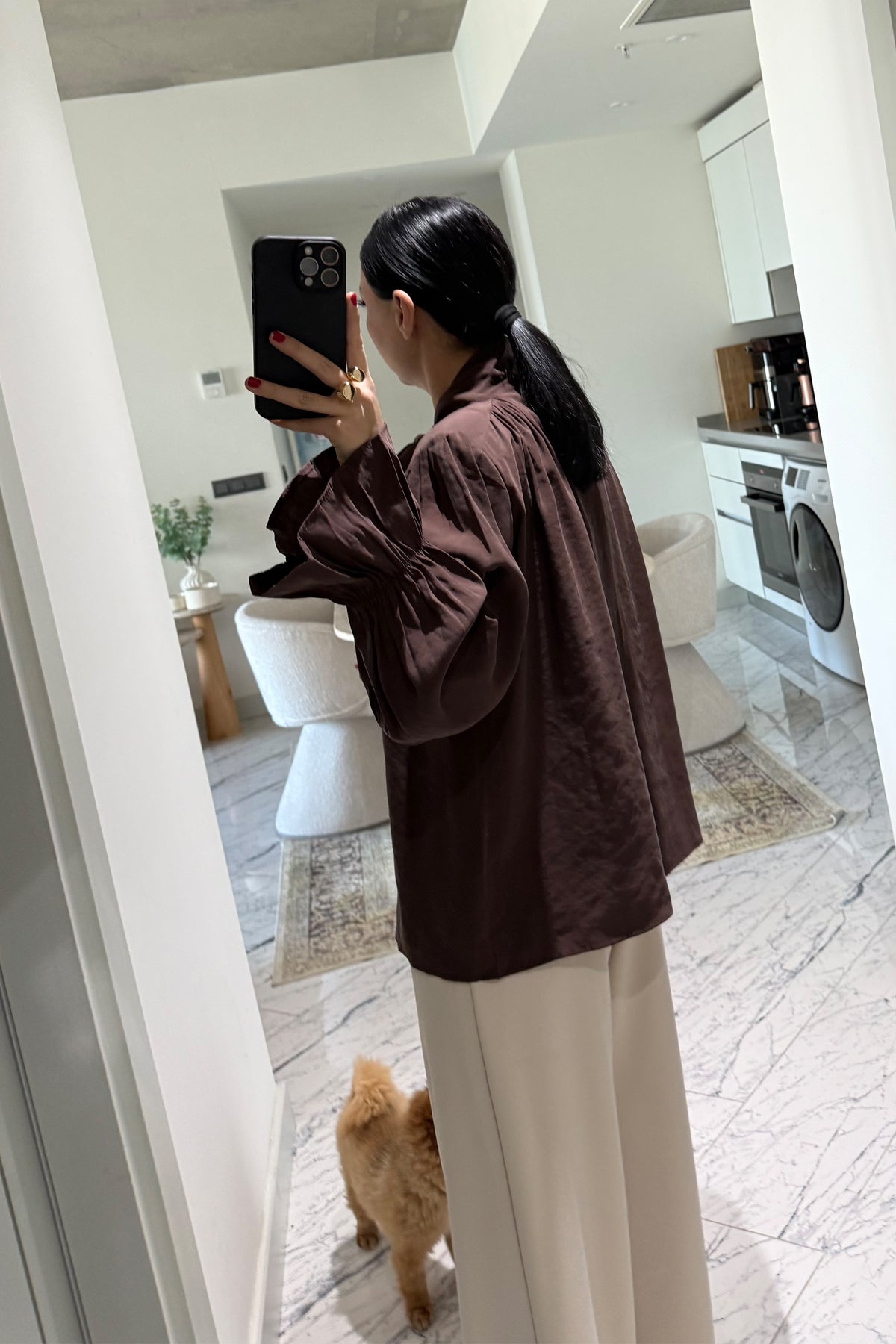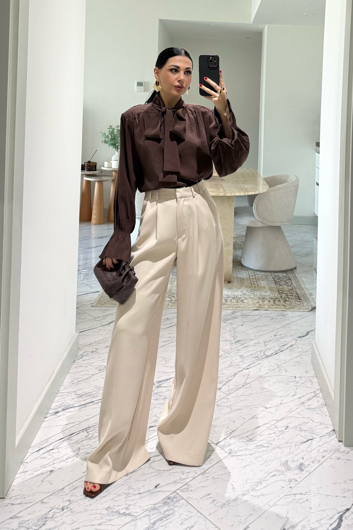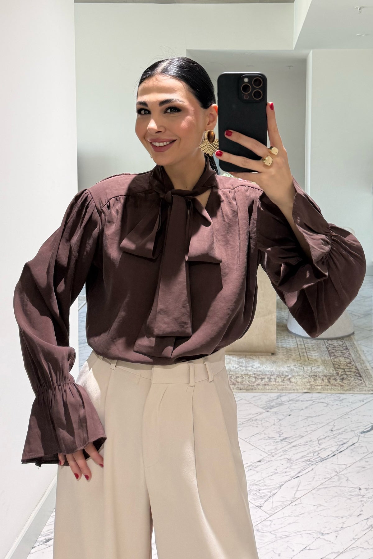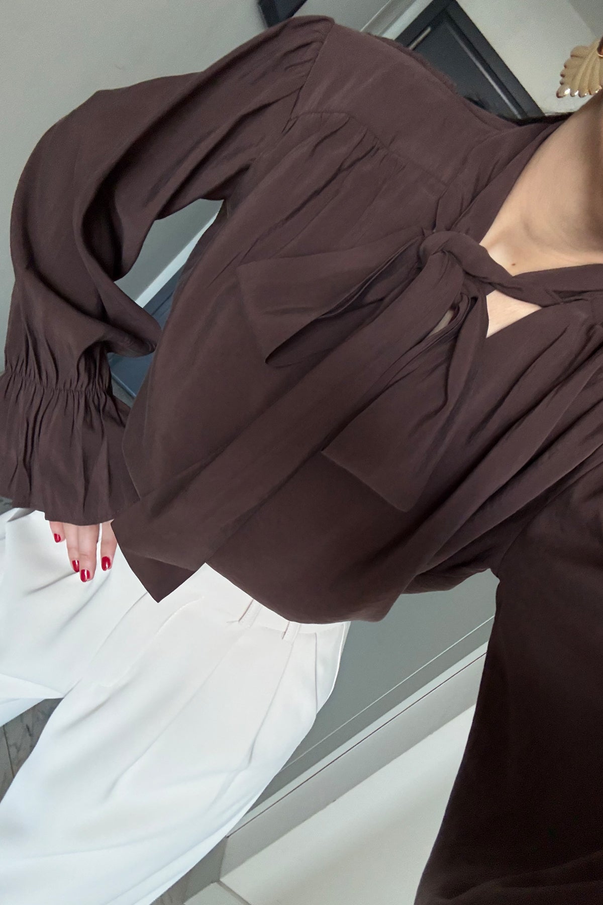Ürün Detayları:Fiyonk Kol Detaylı Kahverengi Bluz