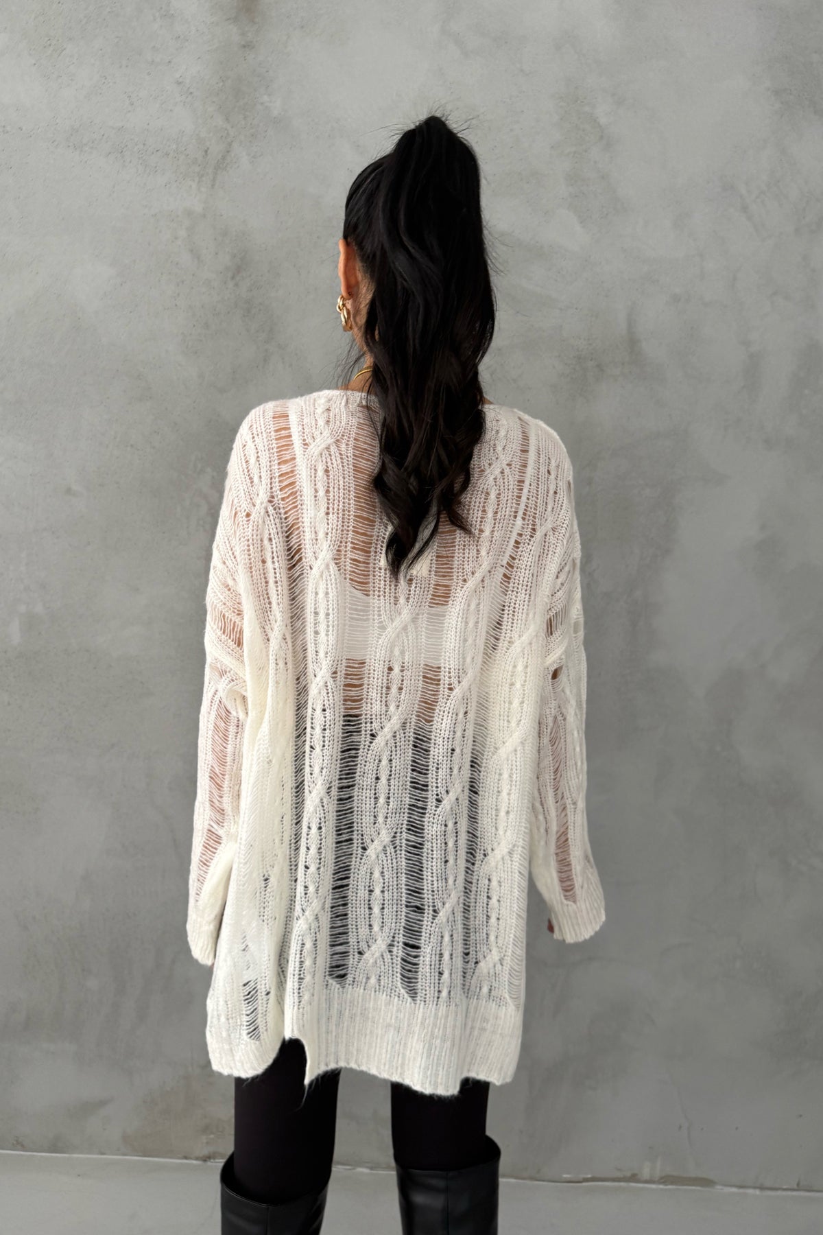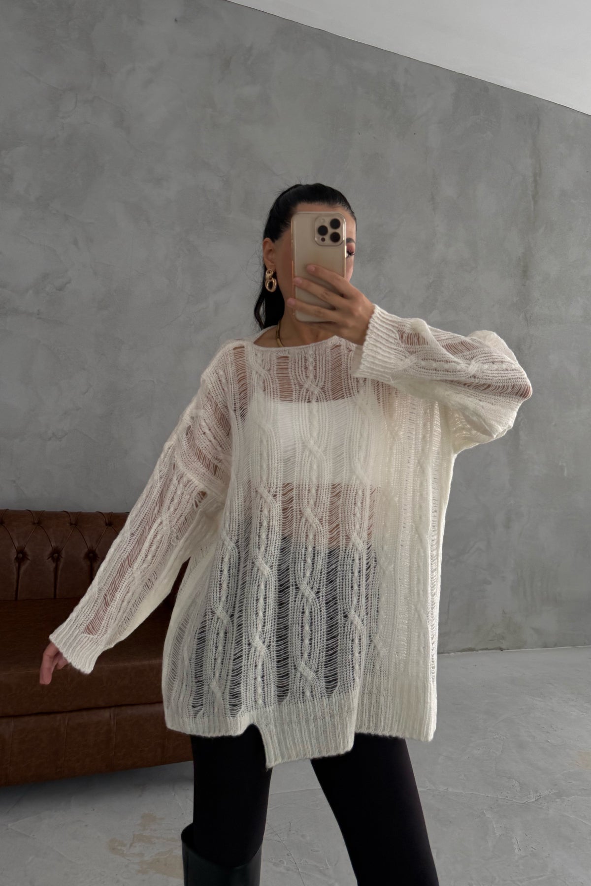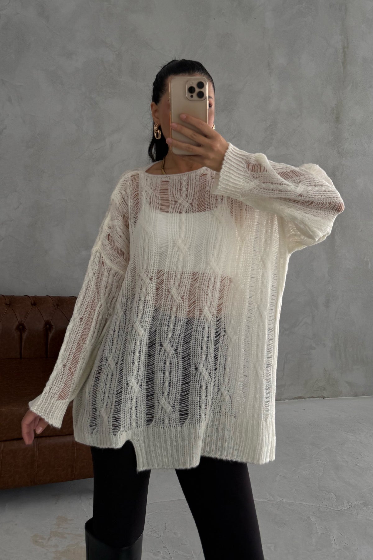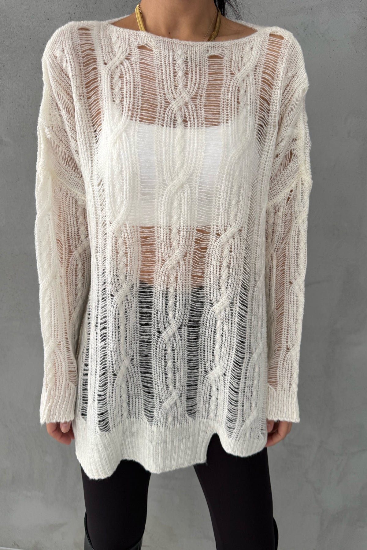 Ürün Detayları ; Ekru Ajurlu Kazak