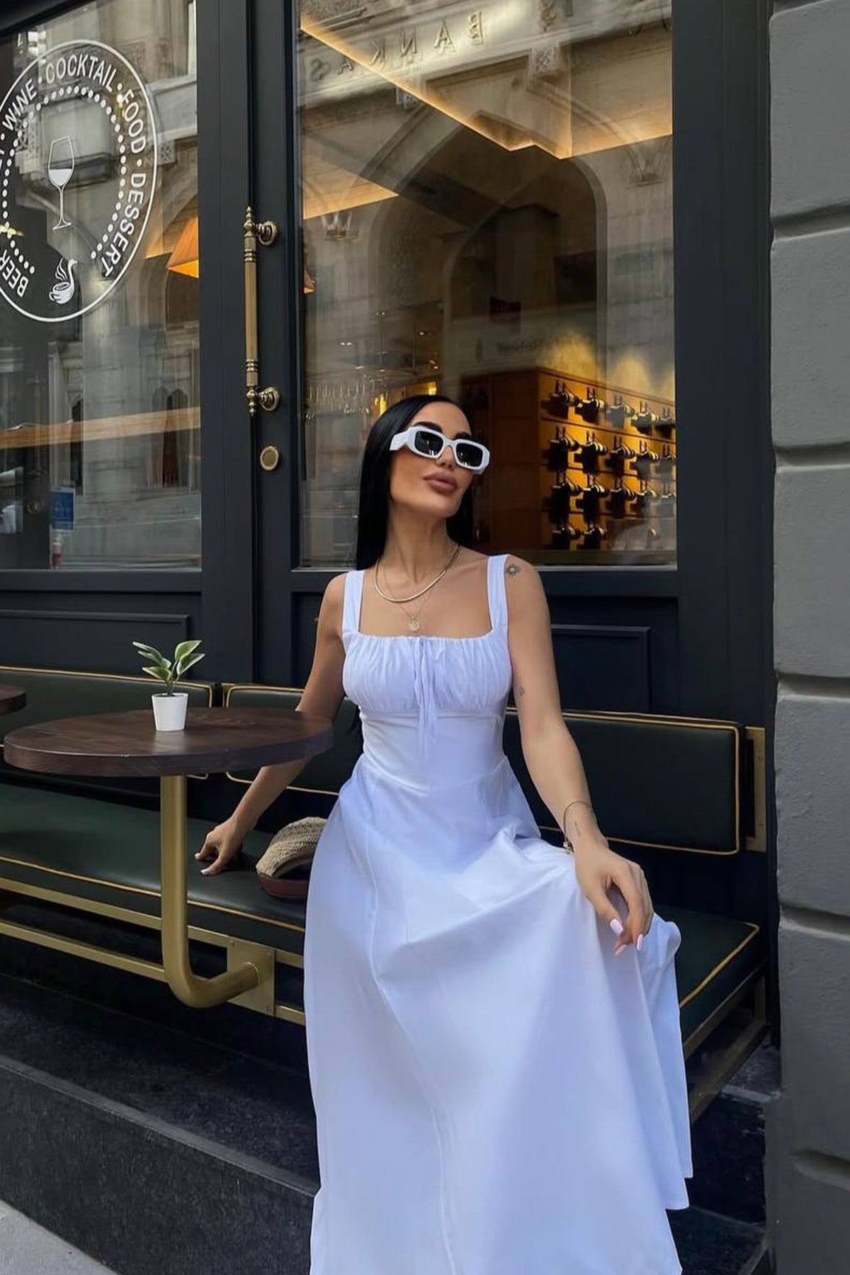 Ürün Detayları ; Kadın Beyaz Korse Görünümlü Poplin Midi Elbise