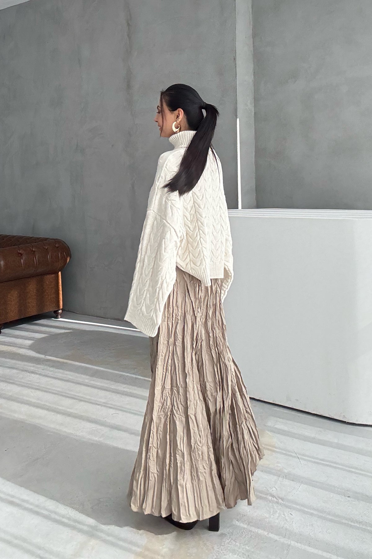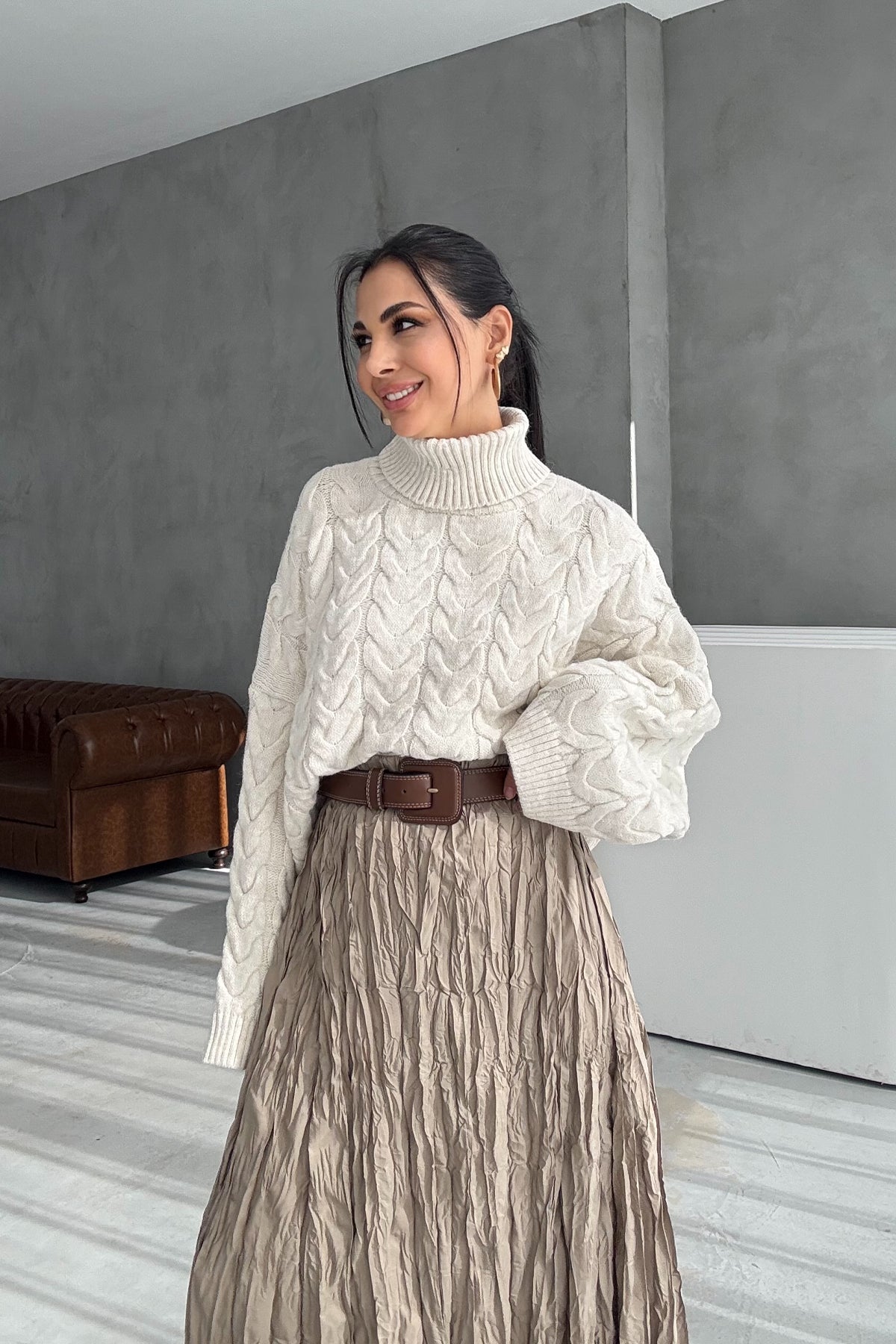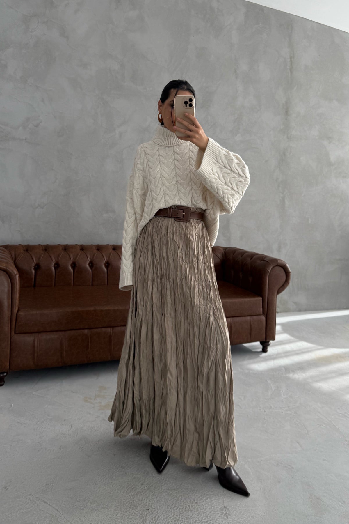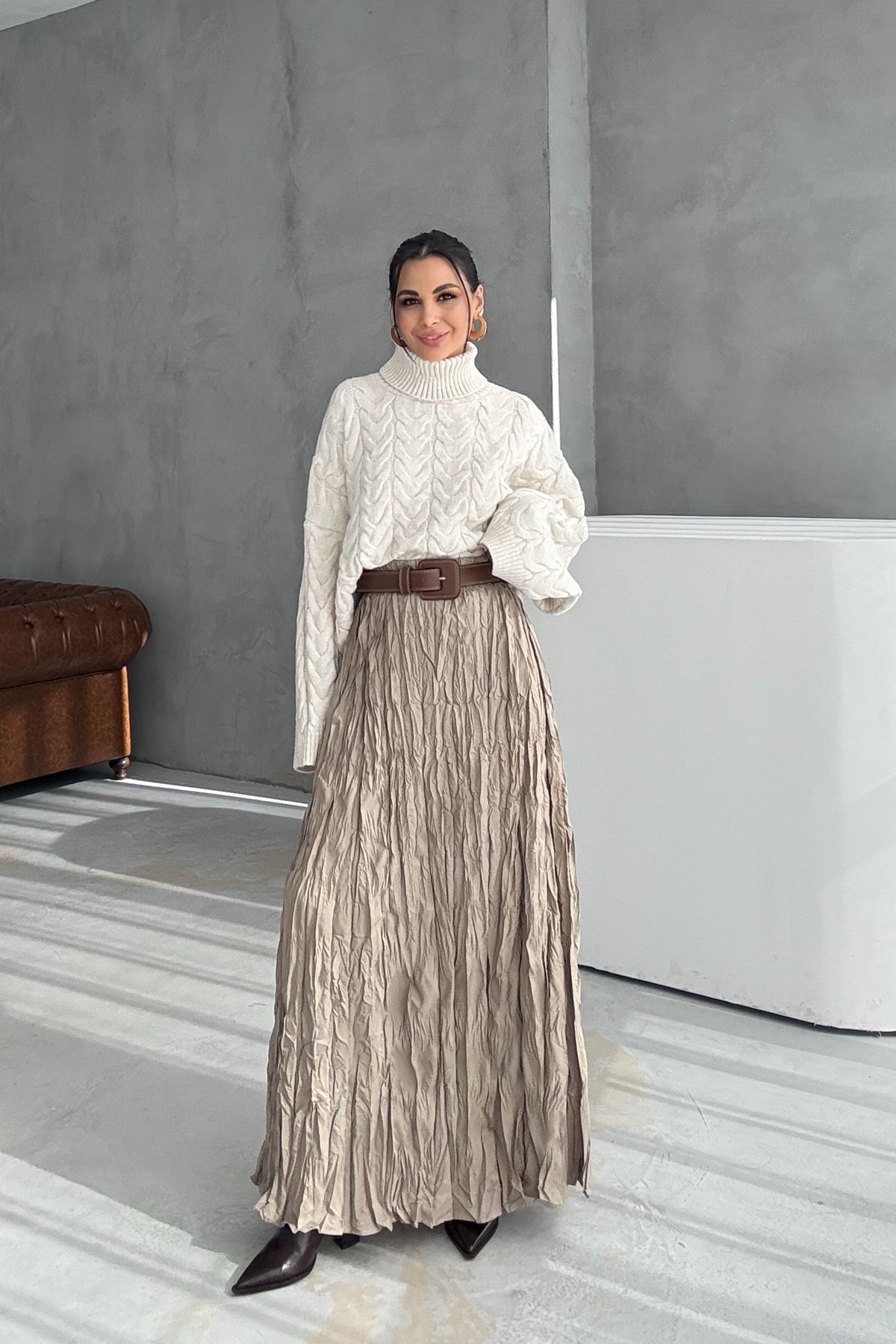 Ürün Detayları ;Vizon Kırışık Görünümlü Uzun Etek