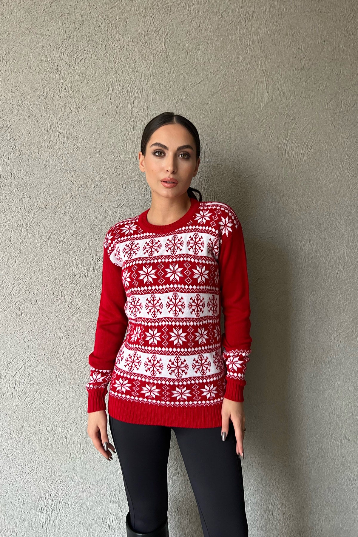 Ürün Detayları ; Bisiklet yaka, yılbaşı temalı kazak
