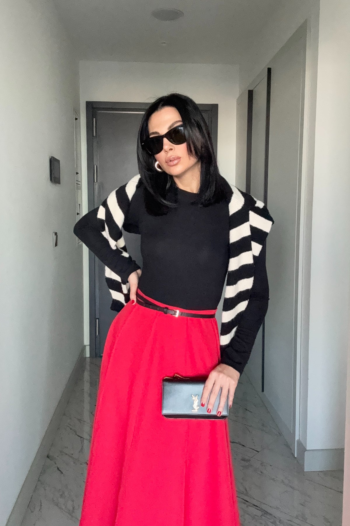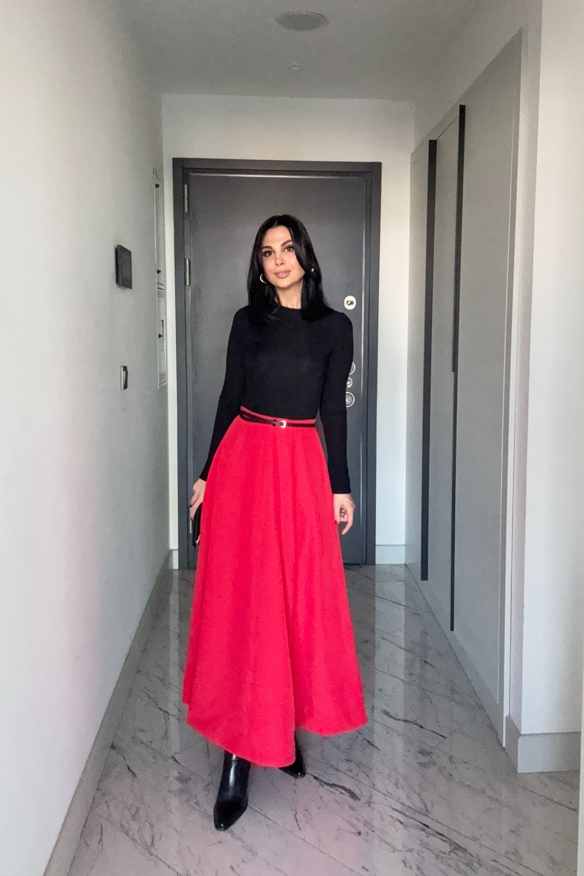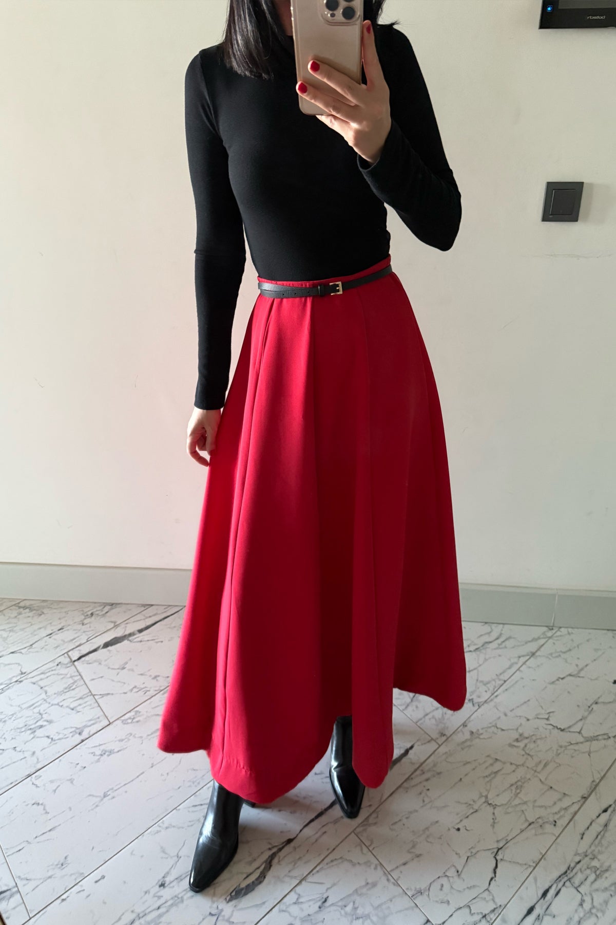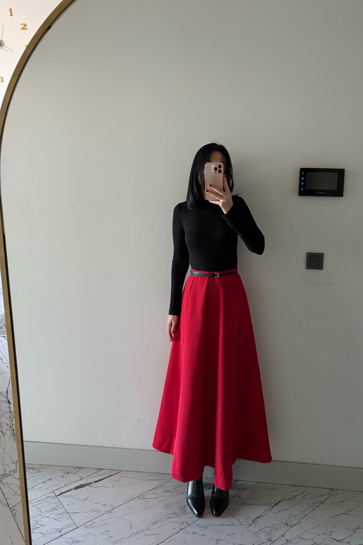 Ürün Detayları;Pilili Kırmızı Midi Etek
