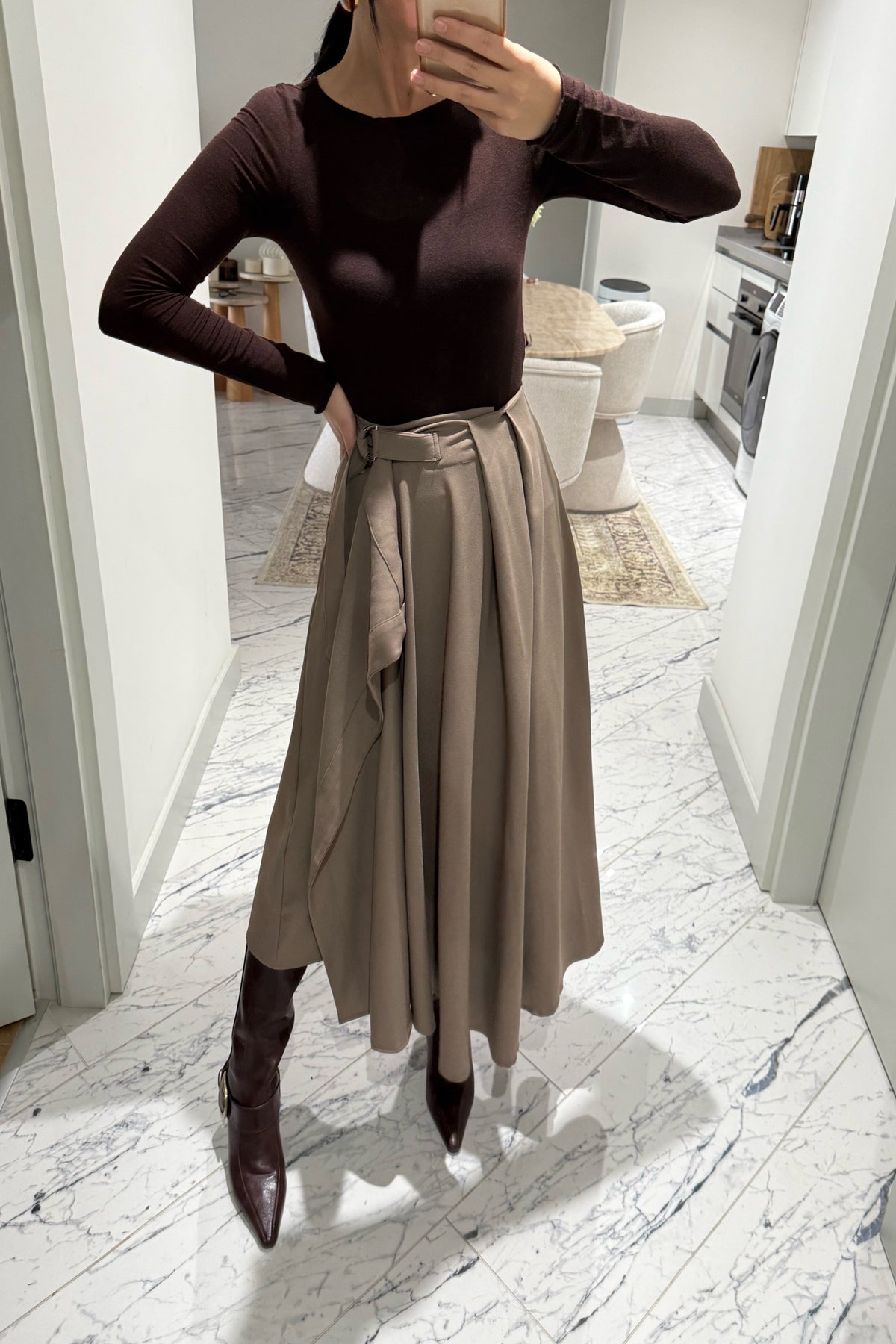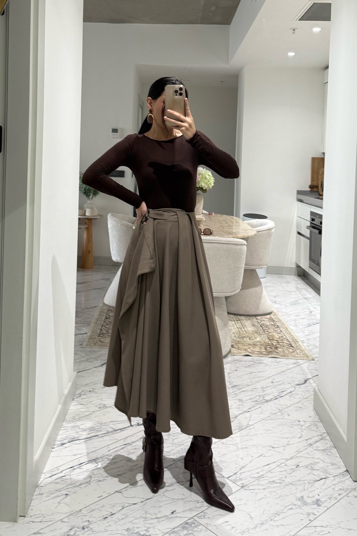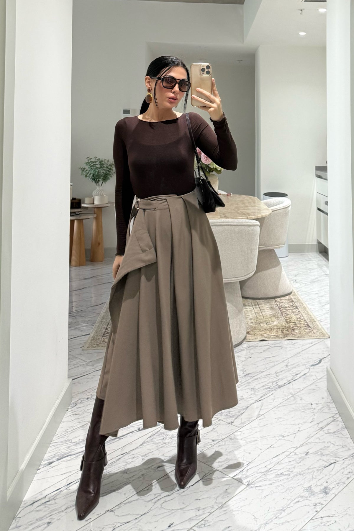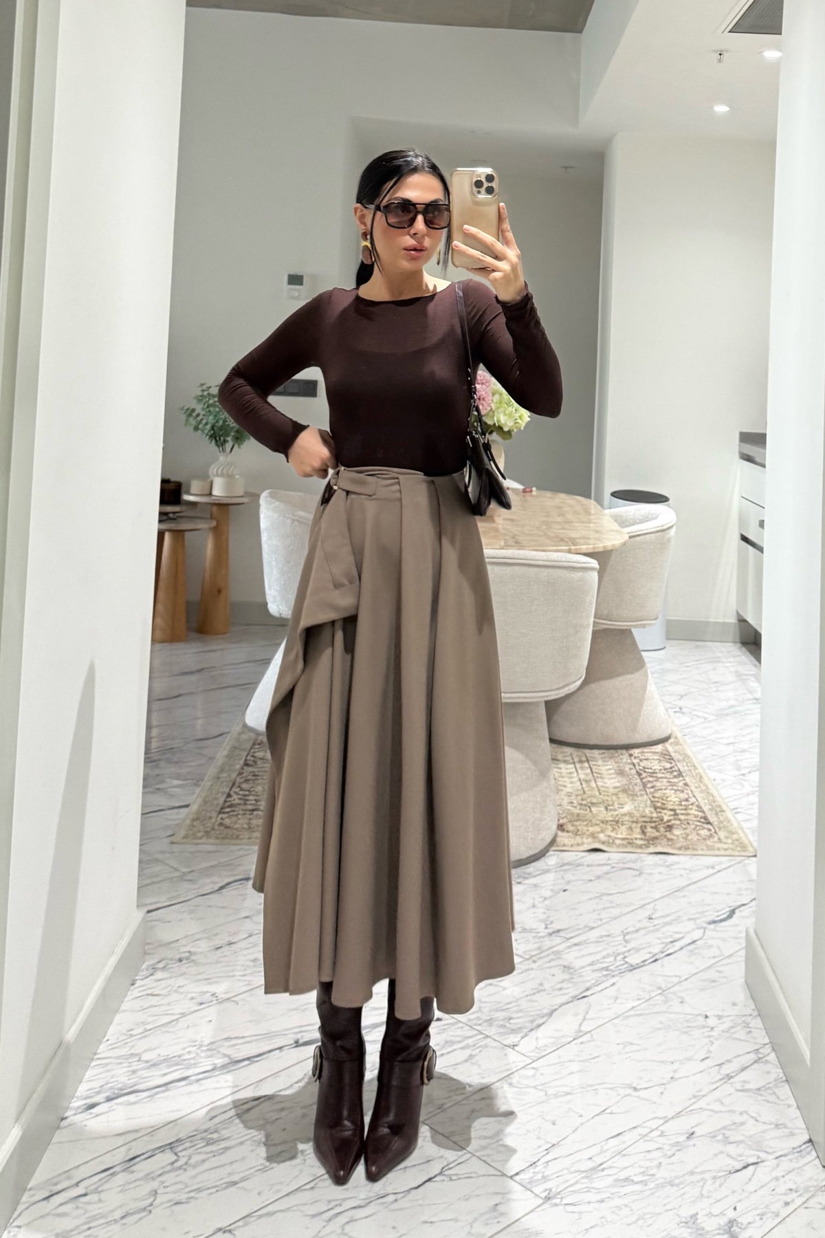 Bej Taka Detaylı Pareo Kloş Etek SY-3536-Bej
