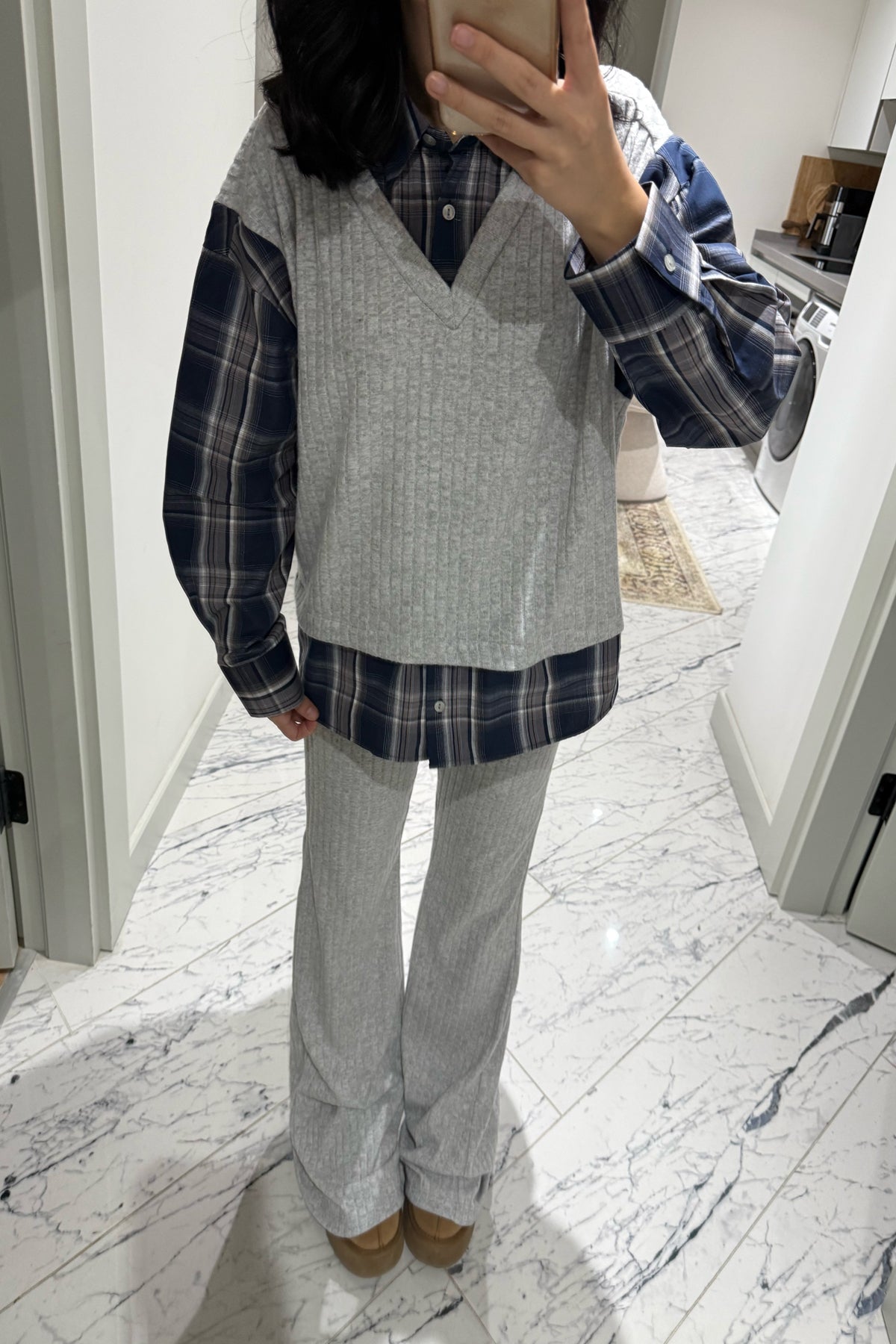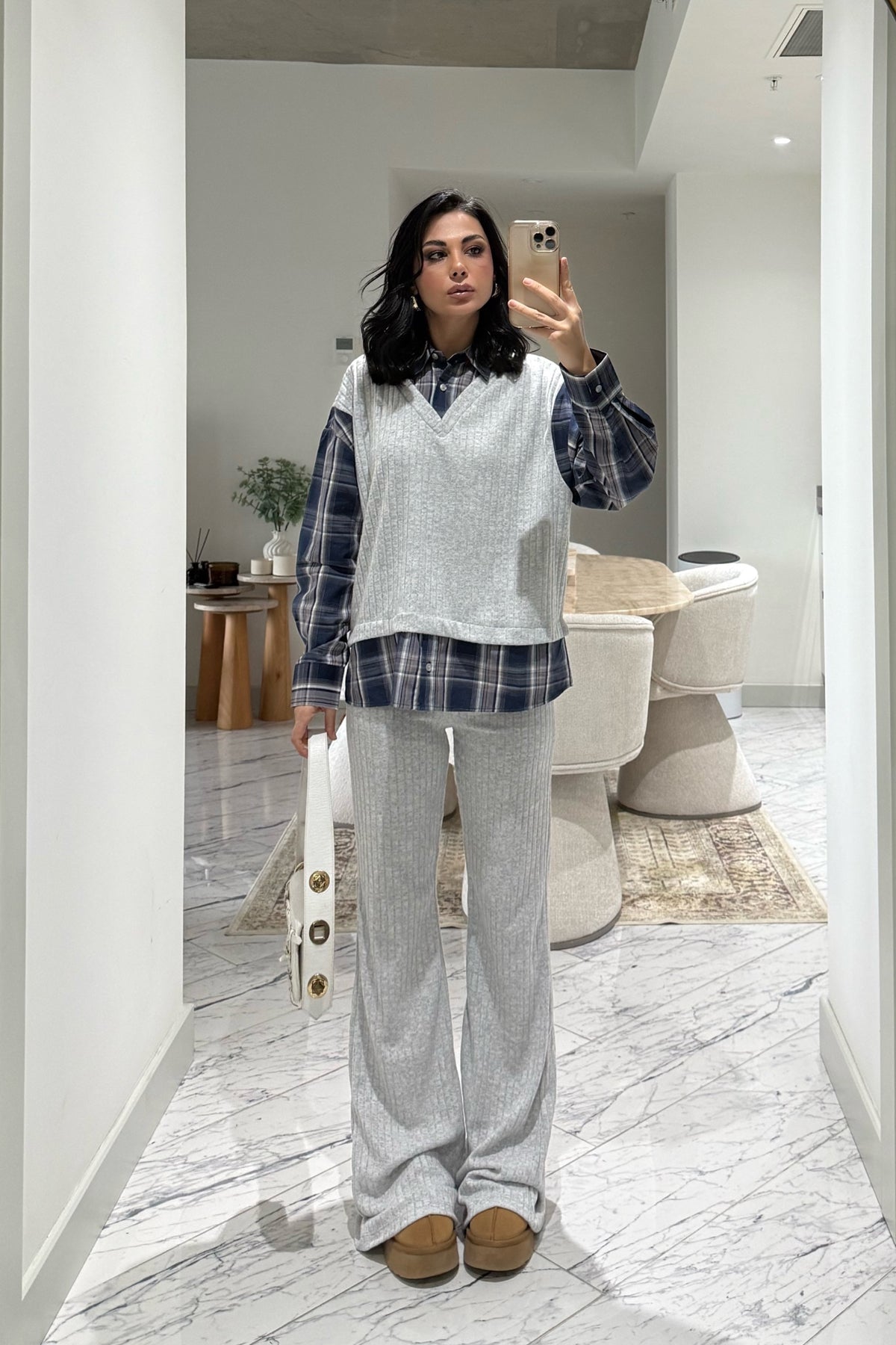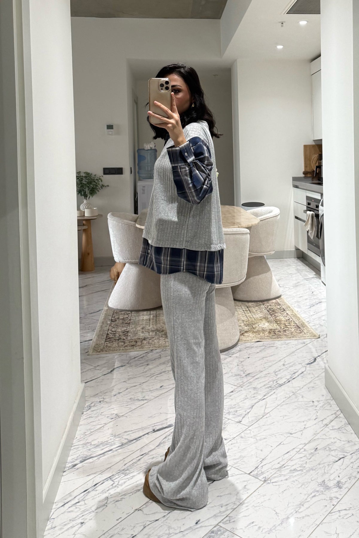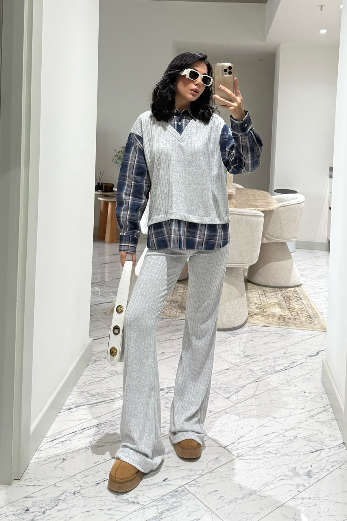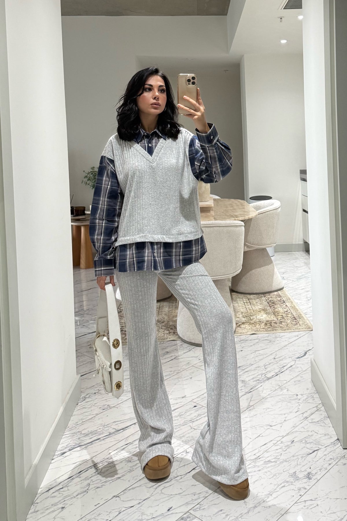 Gri Gömlek Detaylı Triko Pantolon Takım SY-3497-Gri