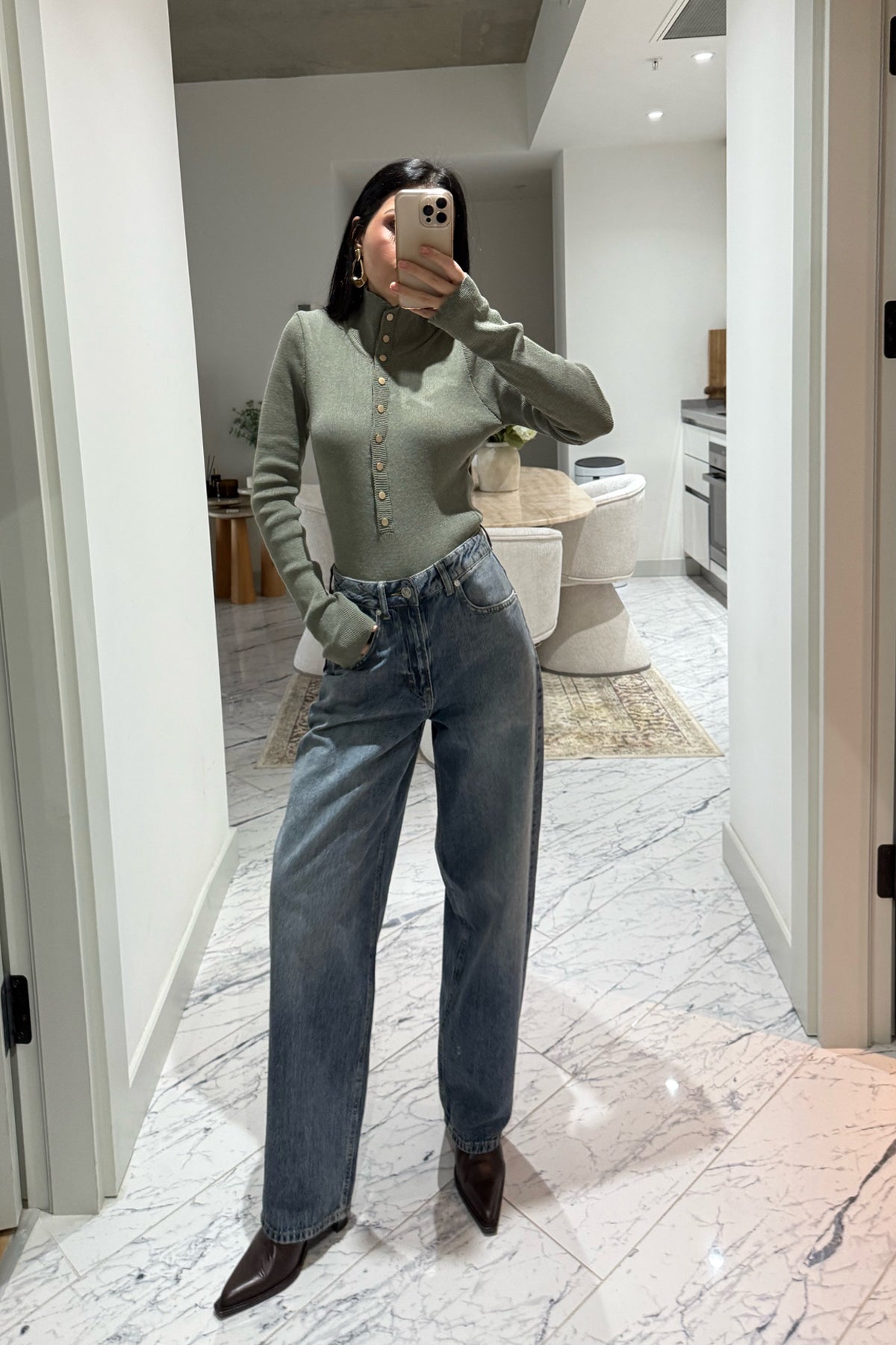 Ürün Detayları:Haki Dik Yaka Çıtçıtlı Triko Kazak