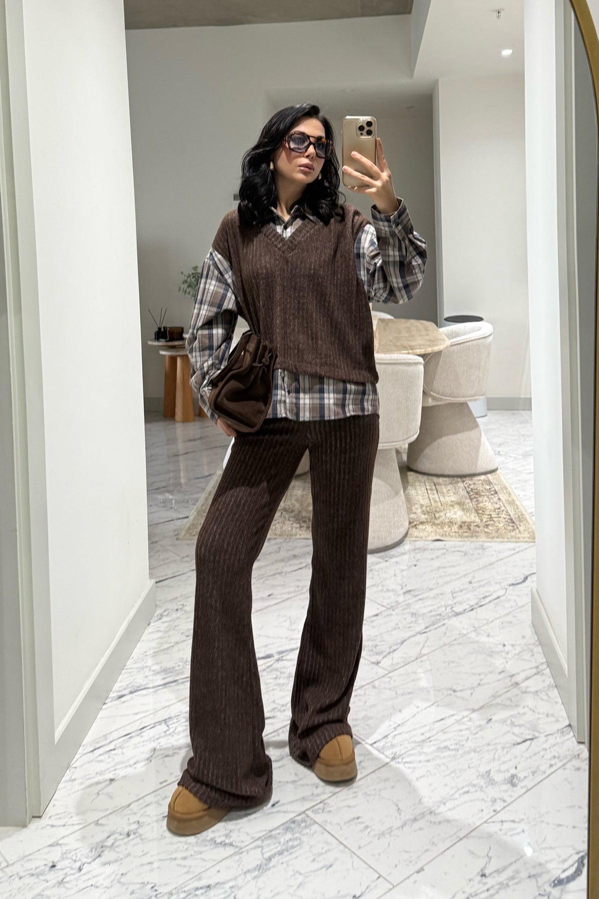 Ürün Detayları:Kahve Bej Gömlek Detaylı Triko Pantolon Takım