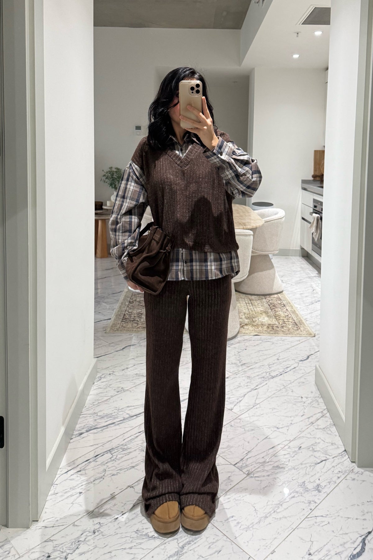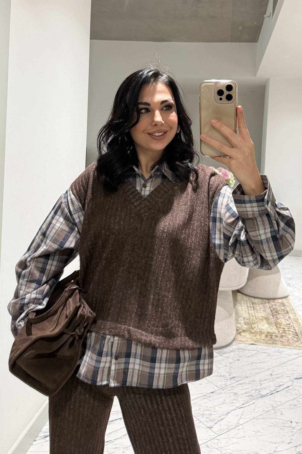 Kahve Bej Gömlek Detaylı Triko Pantolon Takım SY-3497-Bej