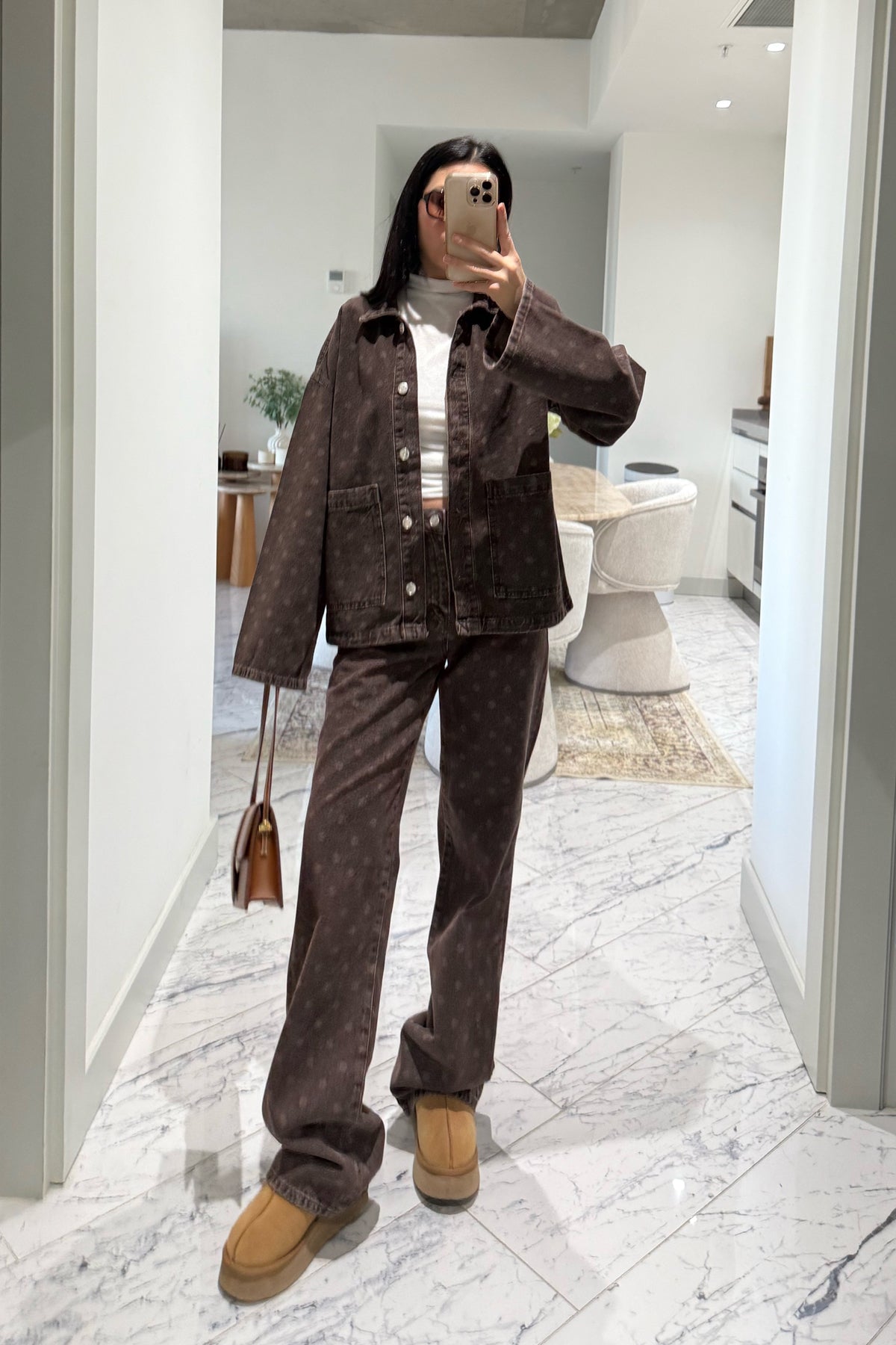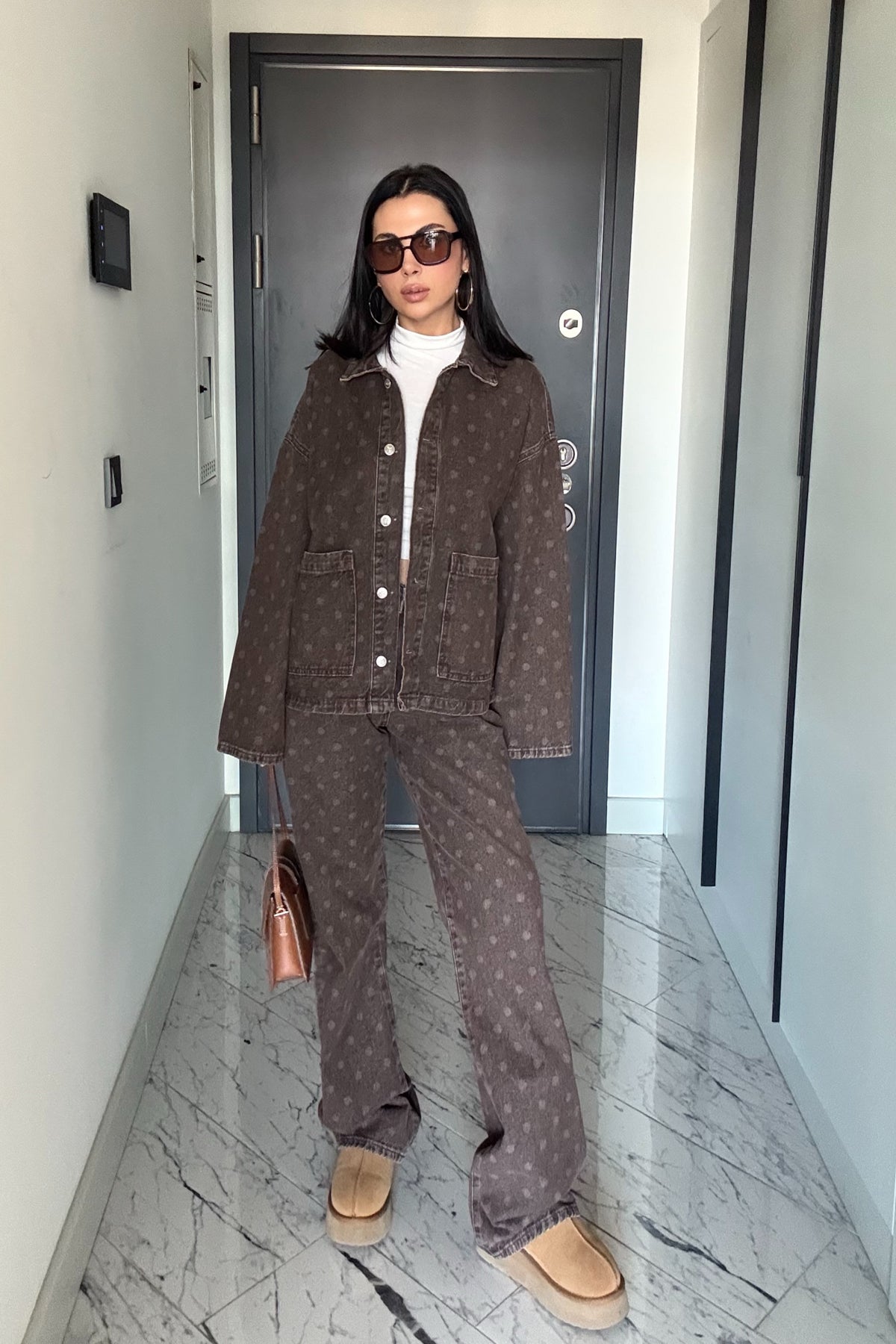 Ürün Detayları:Kahve Puantiyeli Yüksek Bel Vintage Denim Pantolon