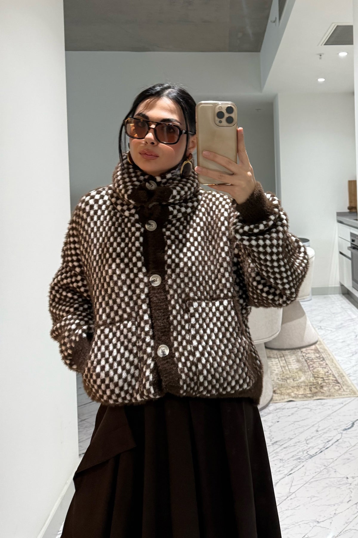 Ürün Detayları:Kahverengi Kareli Cepli Hırka