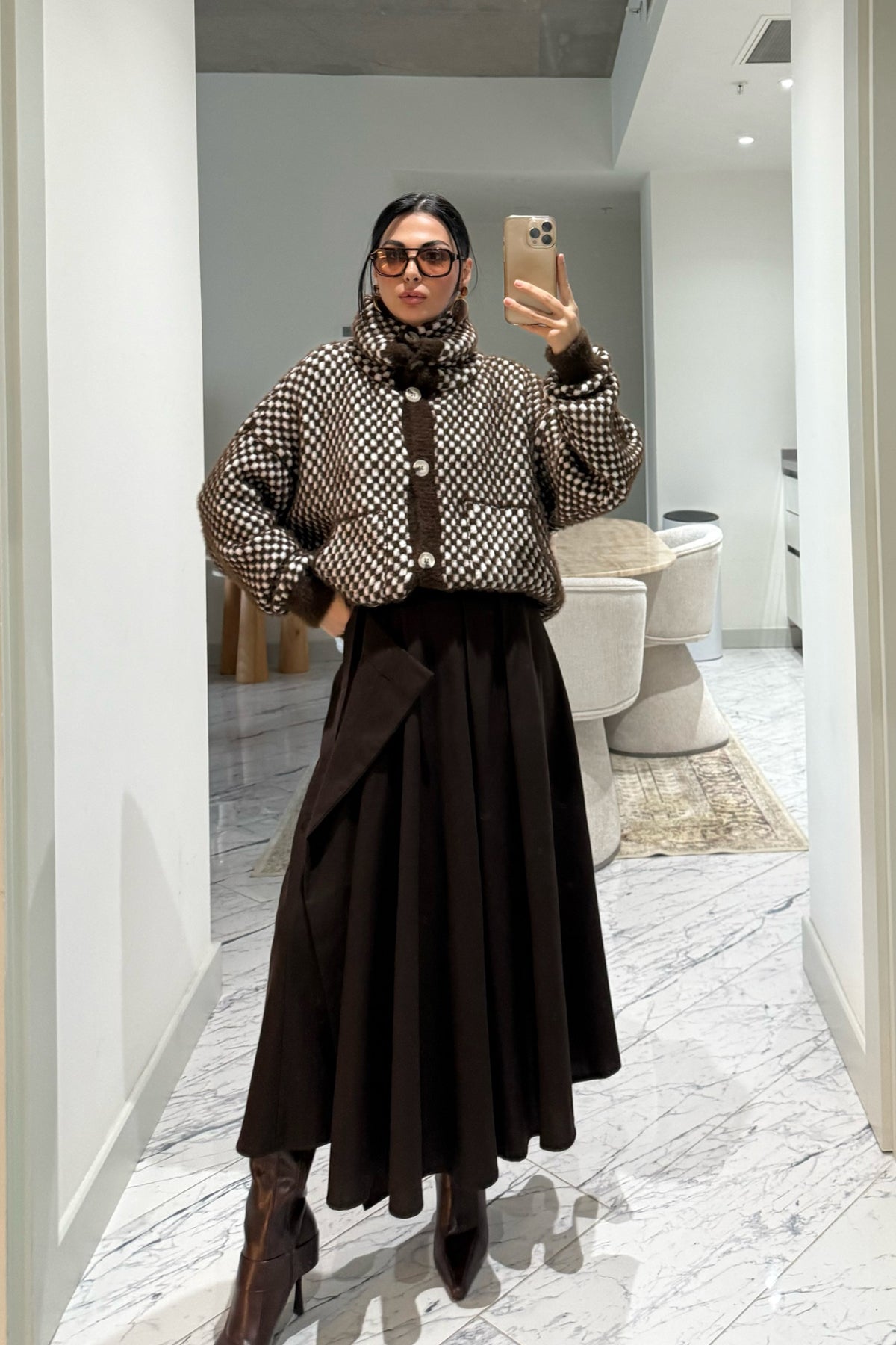 Kahverengi Kareli Cepli Hırka SY-3538-Kahverengi