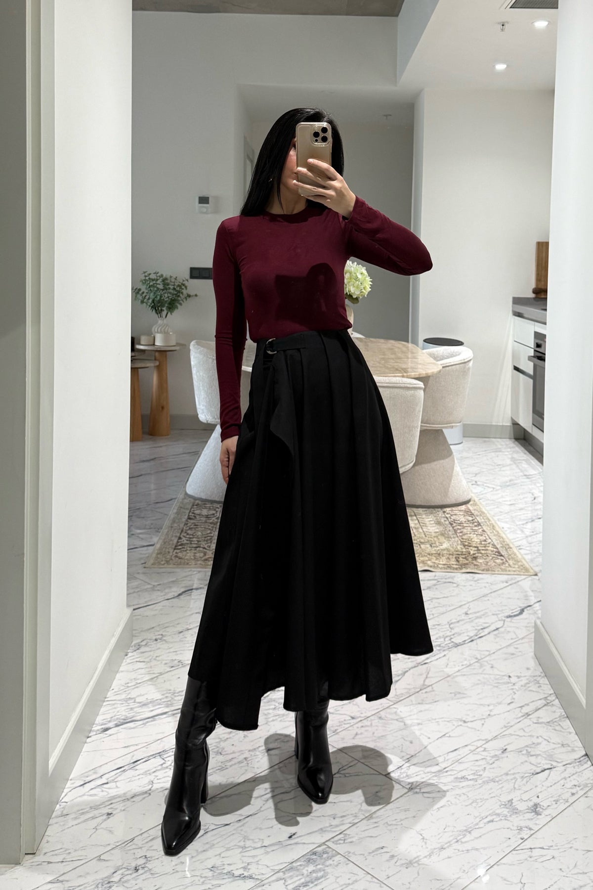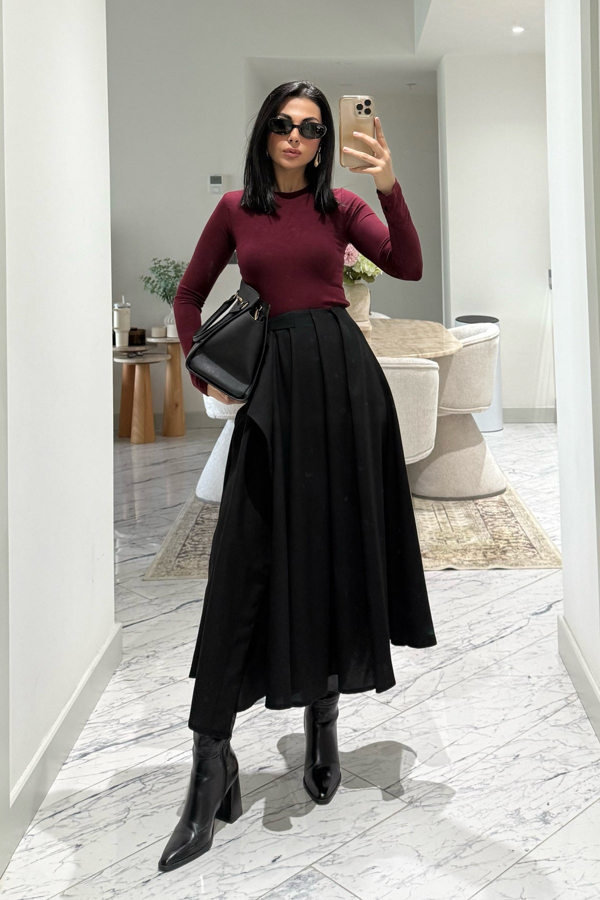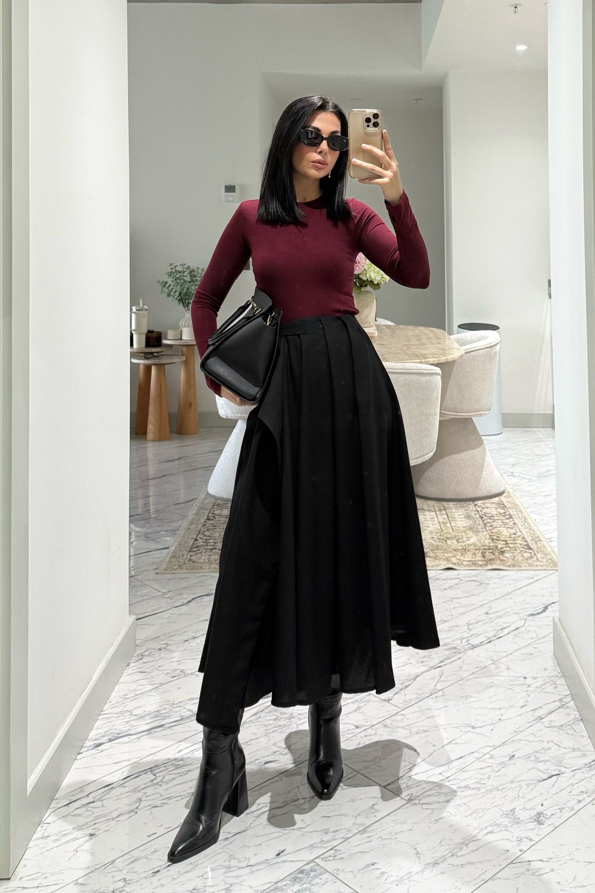 Ürün Detayları:Siyah Taka Detaylı Pareo Kloş Etek