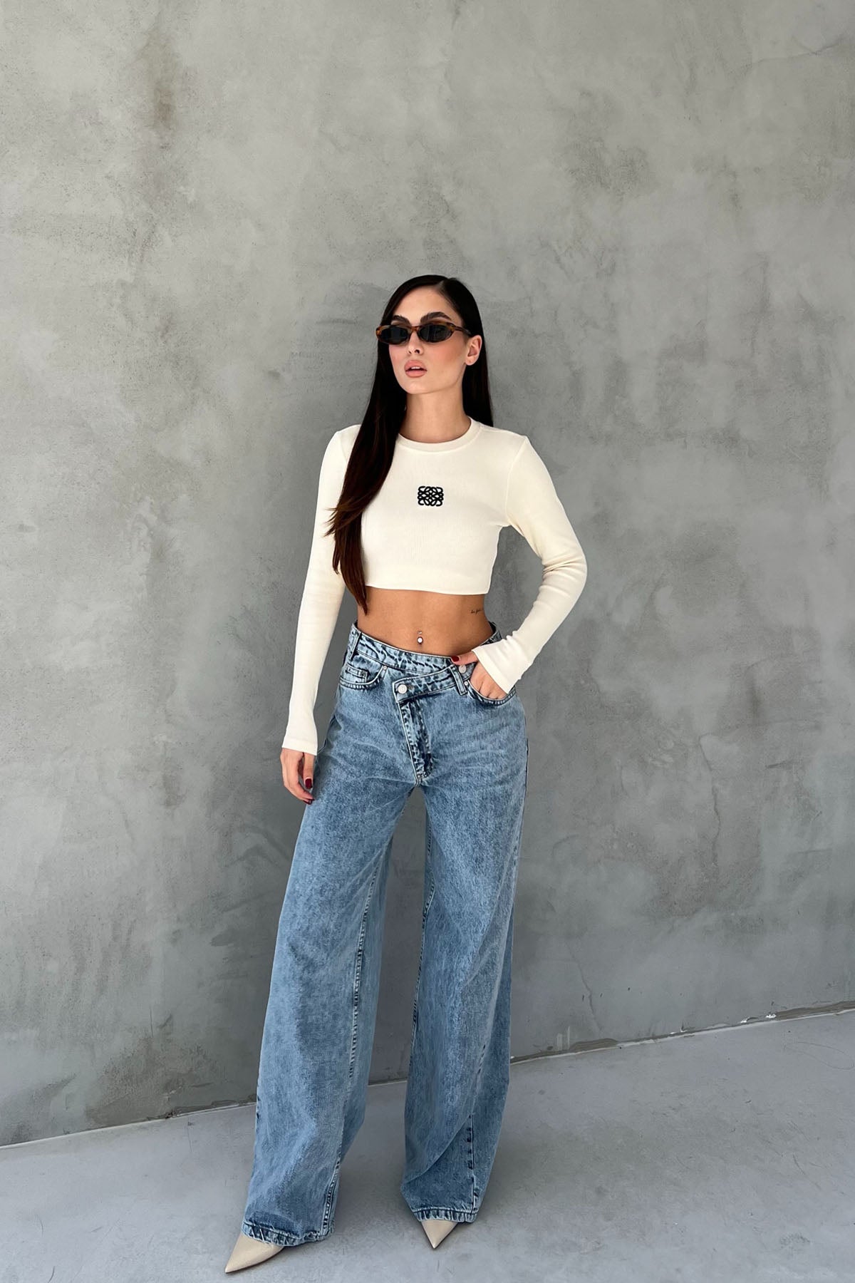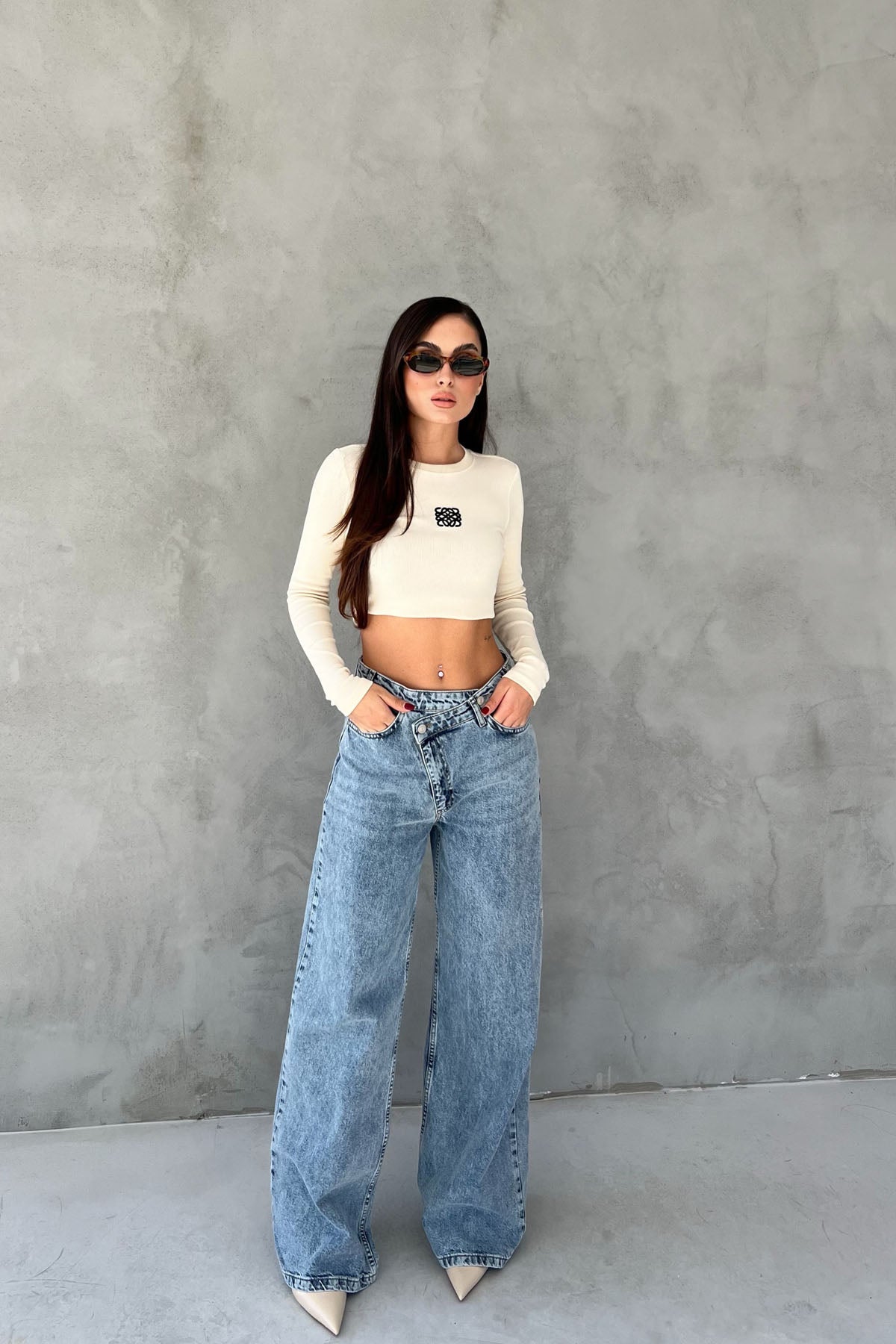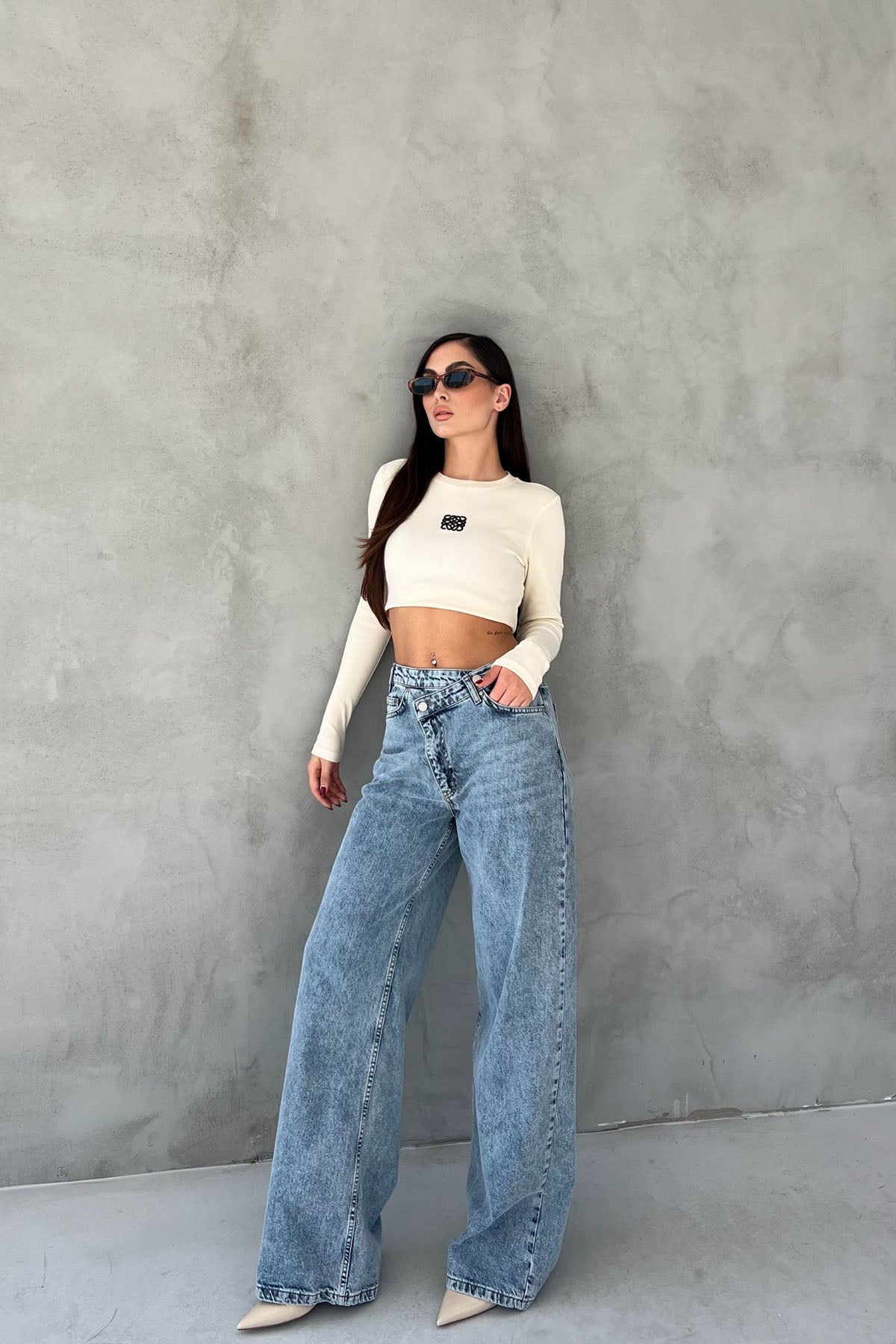 Açık Mavi Çapraz Düğme Detay Bol Paça Jean SY-2683-Açık Mavi