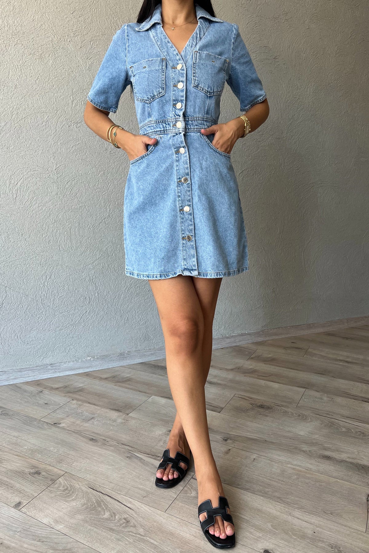 Ürün Özellikleri: Açık Mavi Cep Detaylı Mini Kot Elbise