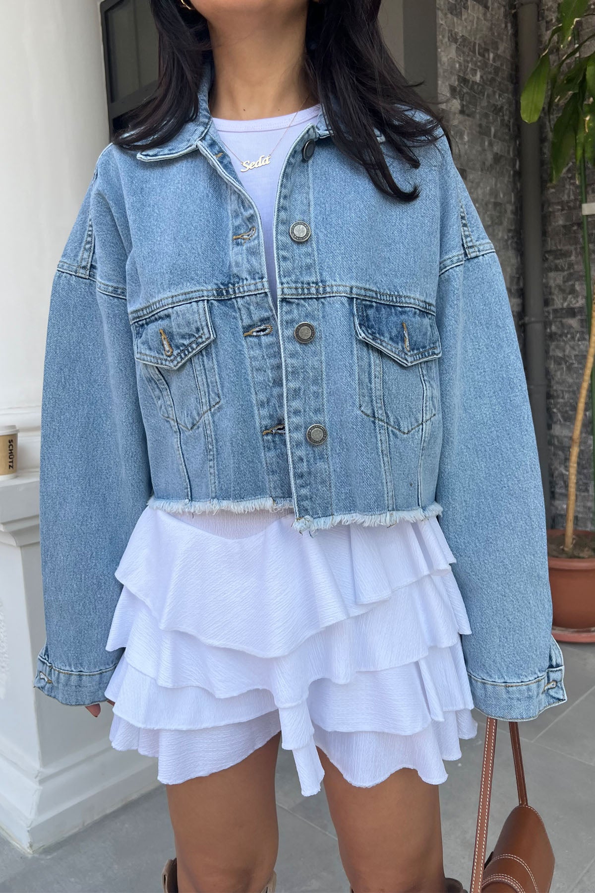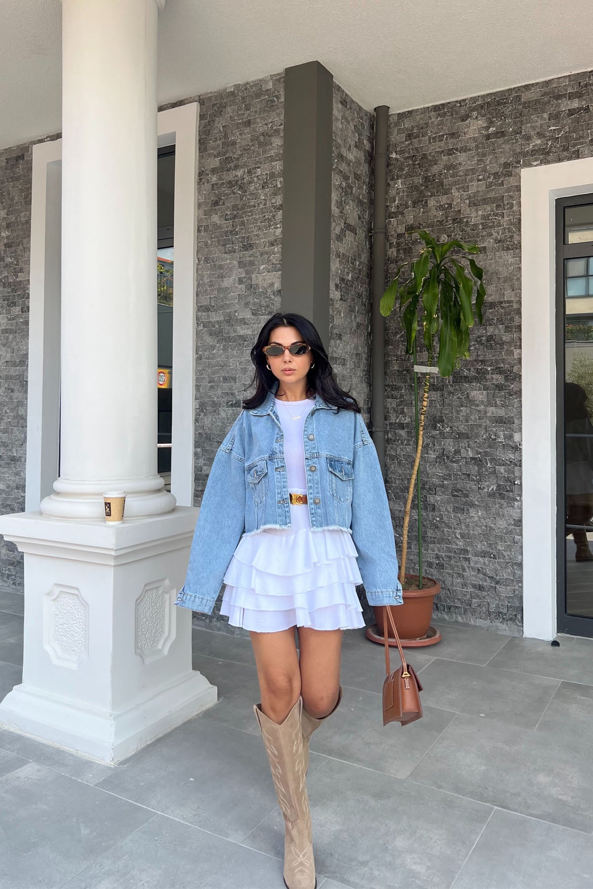 Ürün Özellikleri:Açık Mavi Crop Kot Ceket