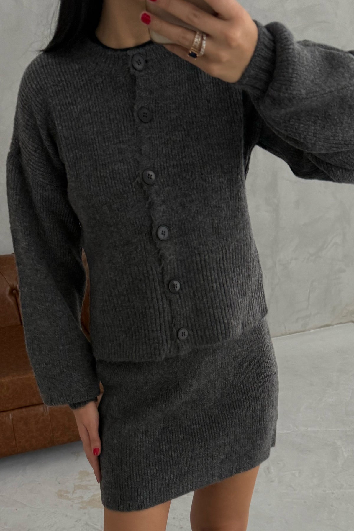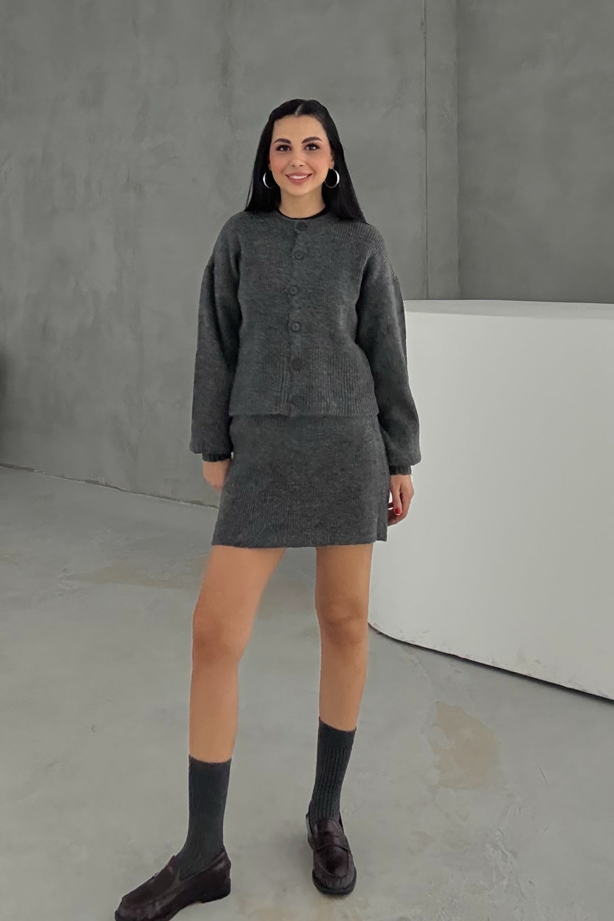 Antrasit Kırçıllı Etek Hırka Triko Takım SY-3455-Antrasit