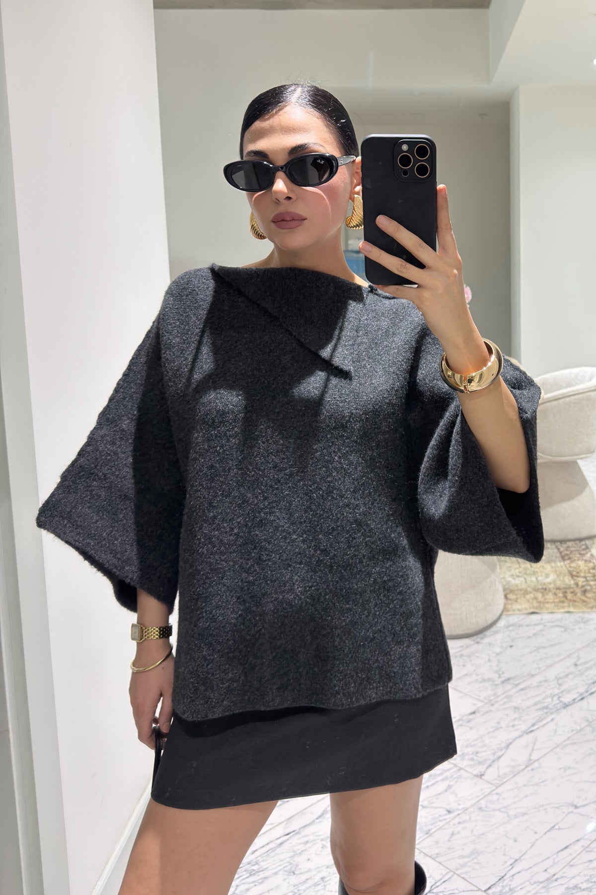 Ürün Detayları:Antrasit Yaka Detaylı Triko-Kazak