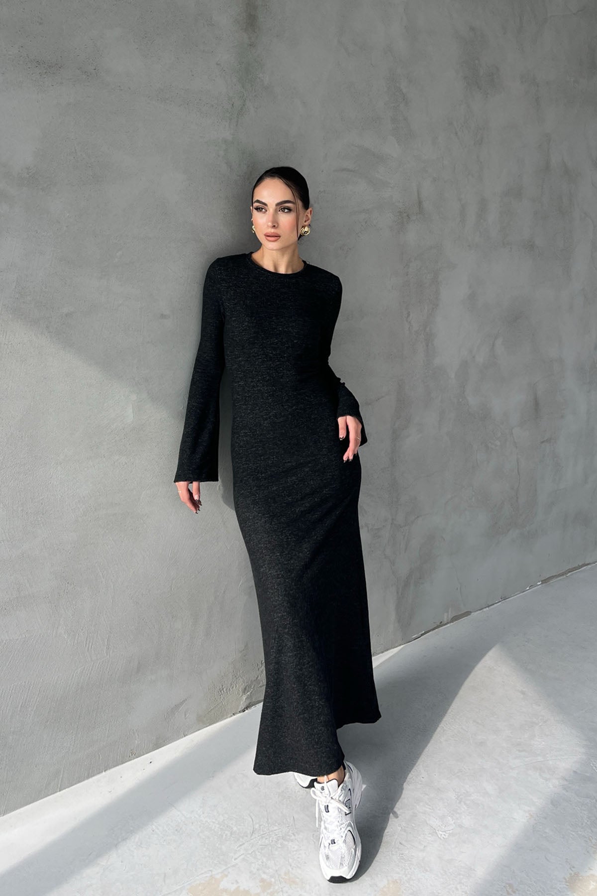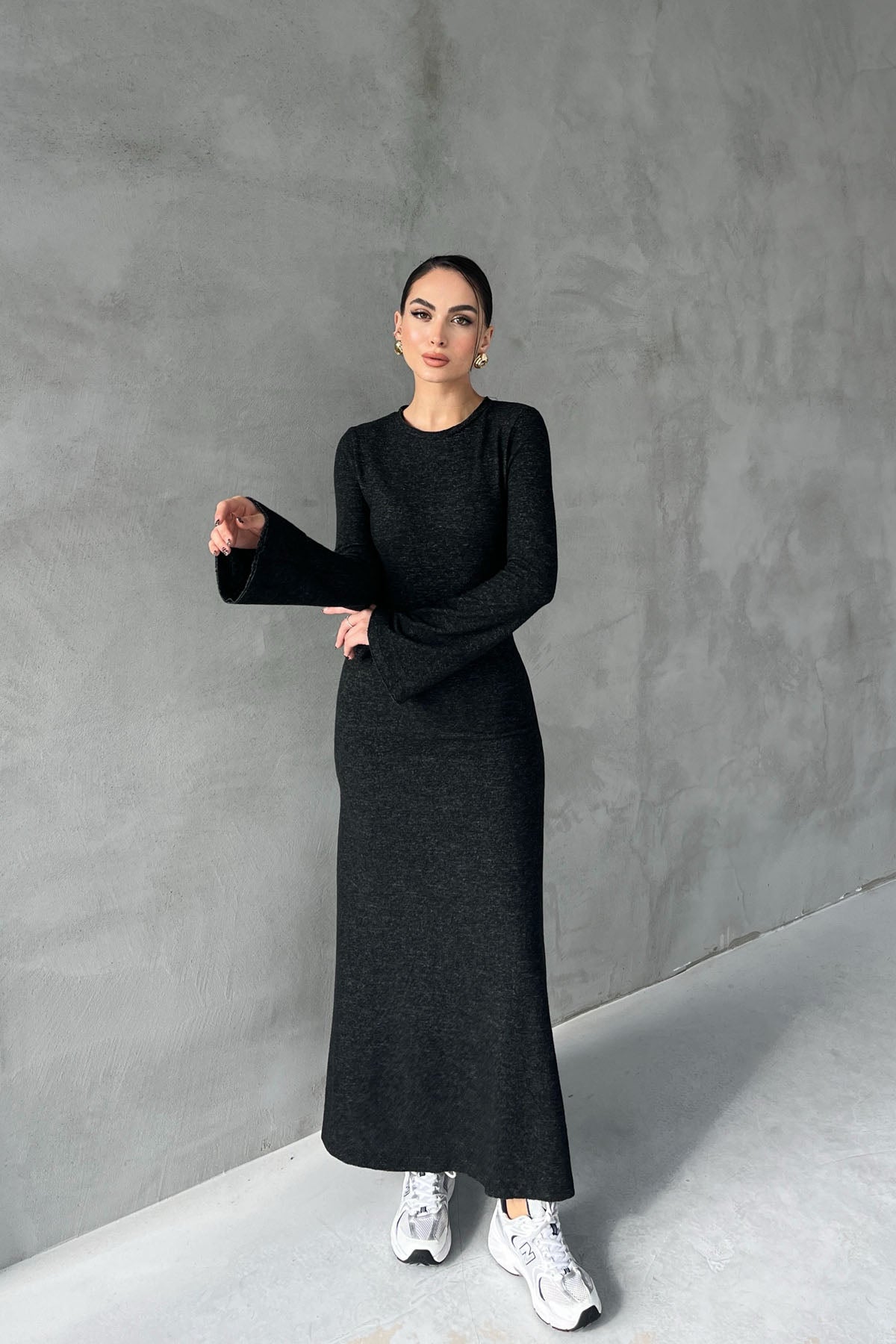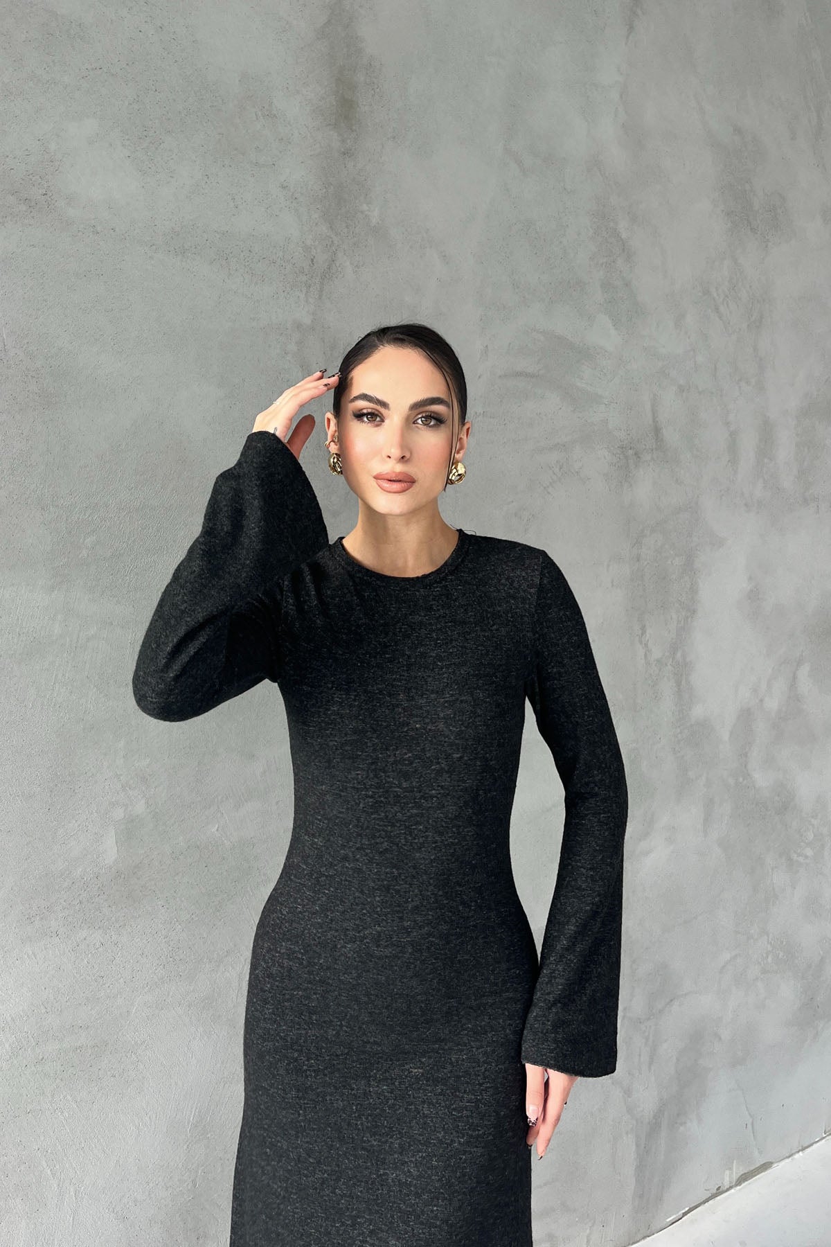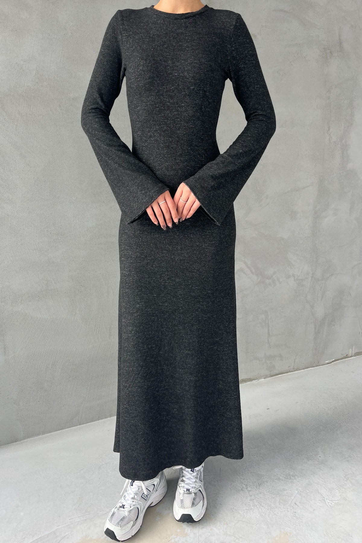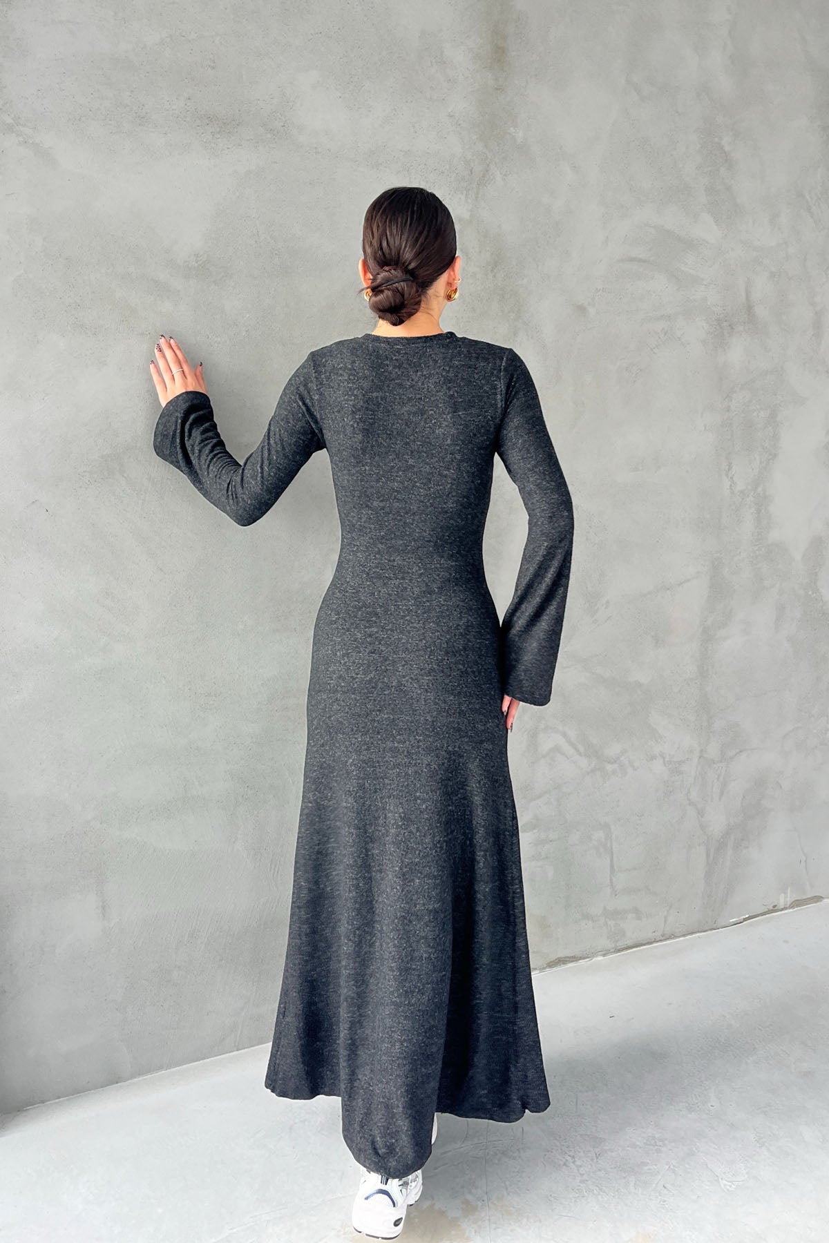 Antrasit Yumoş İspanyol Kol Uzun Elbise SY-2619-Antrasit