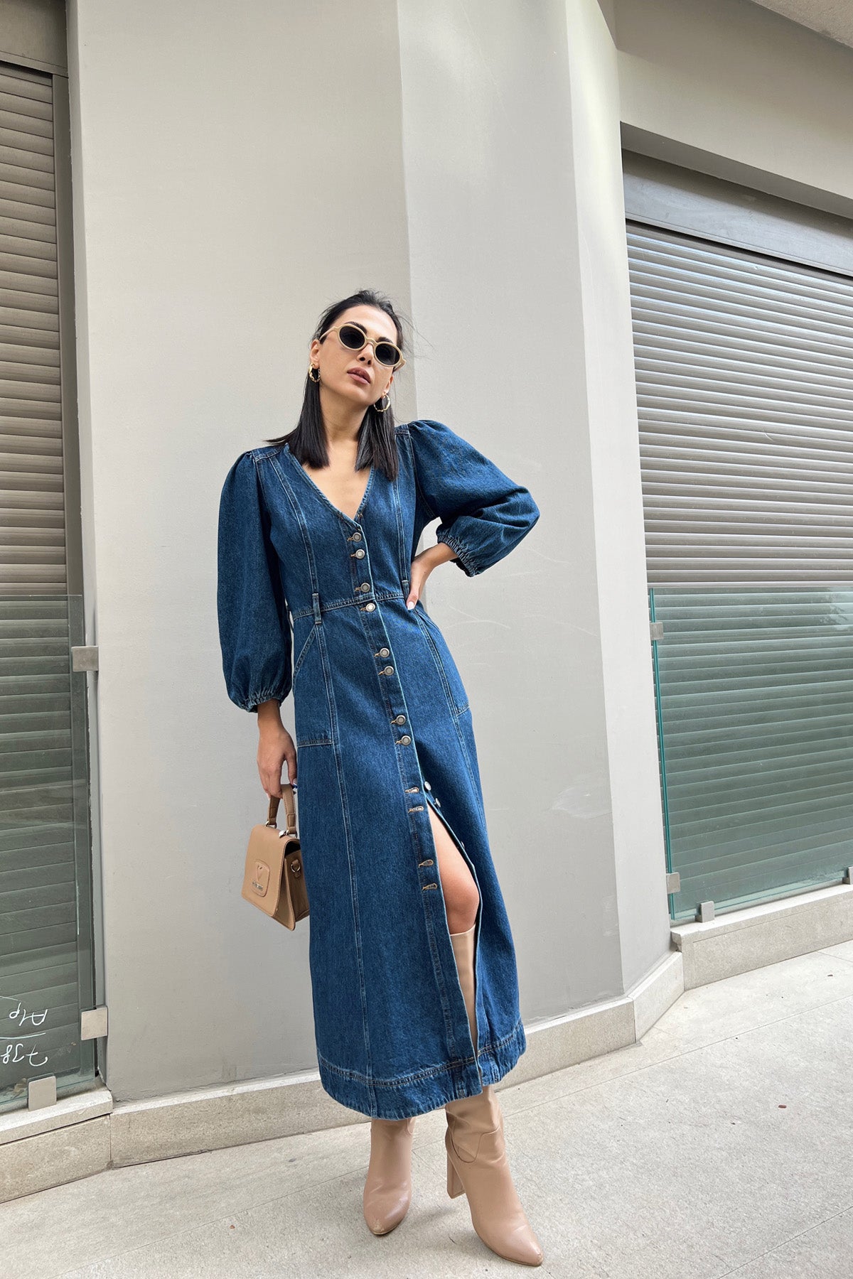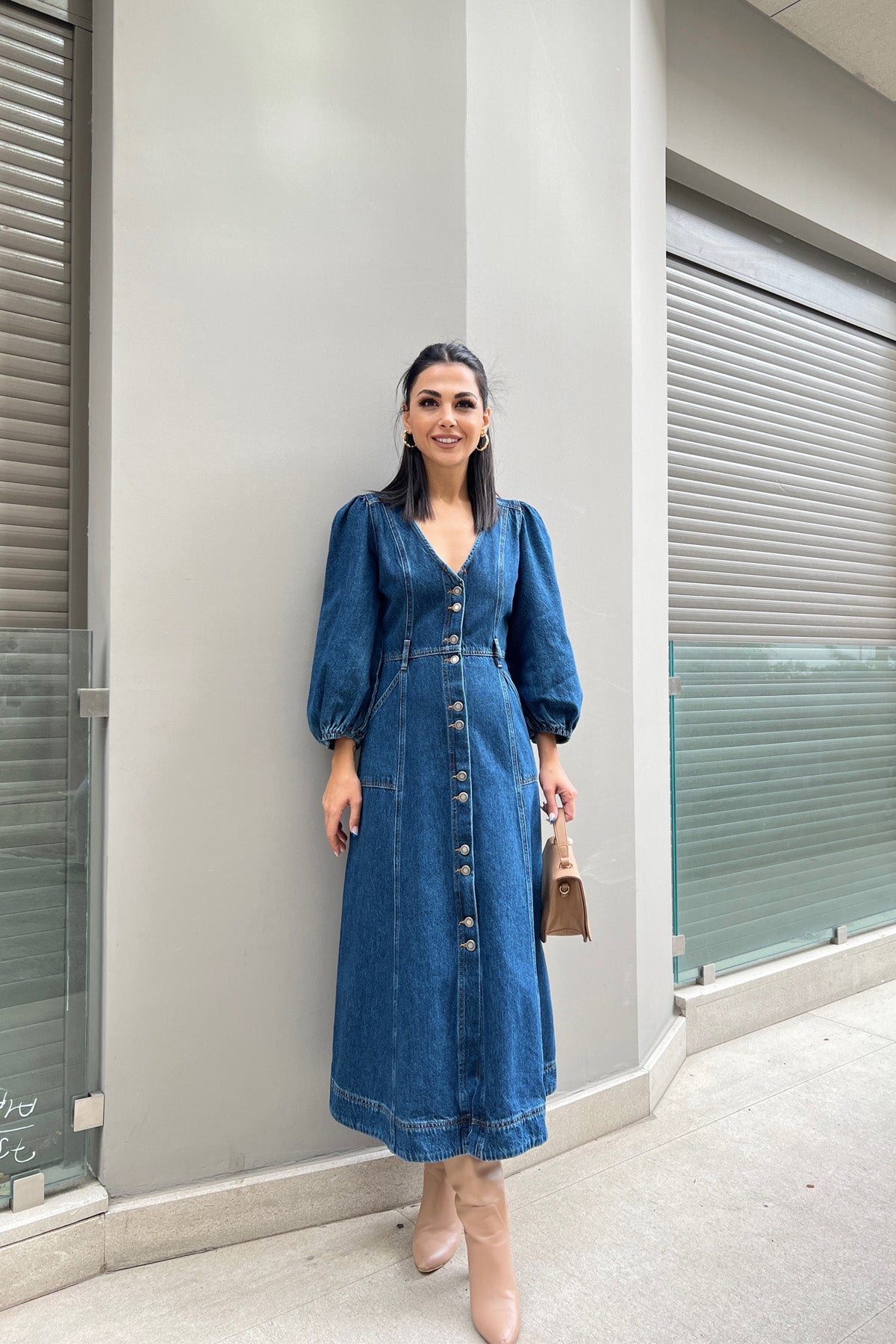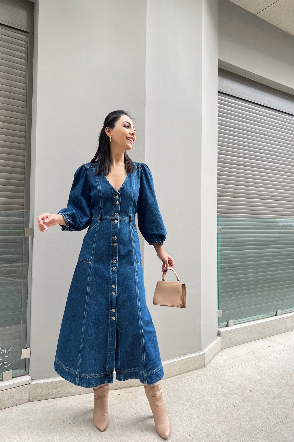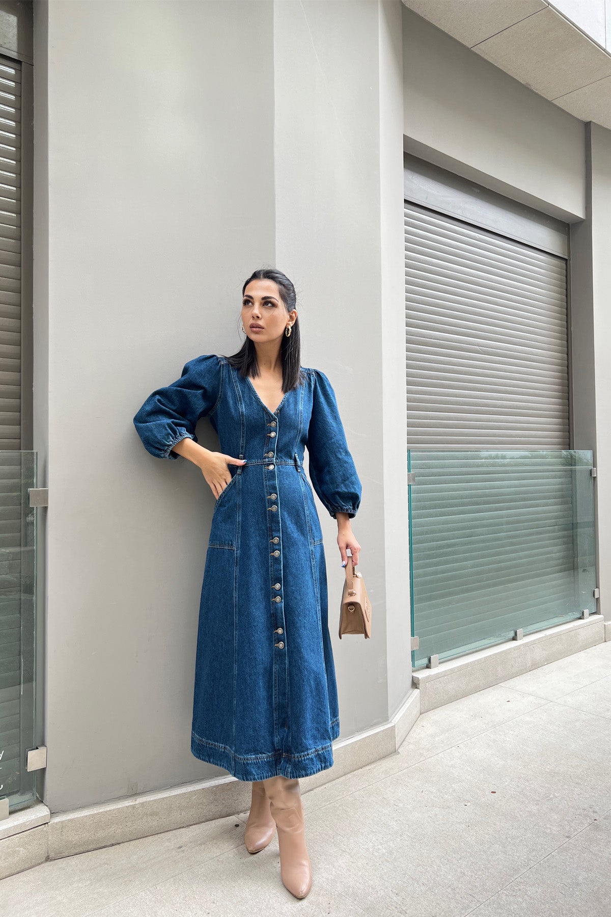 Ürün Detayları ; Sezonun en tarz elbiseleri Seda Yalçın Atelier'de. Balon kol, kolları lastikli, önü düğmeli, yanları cepli.