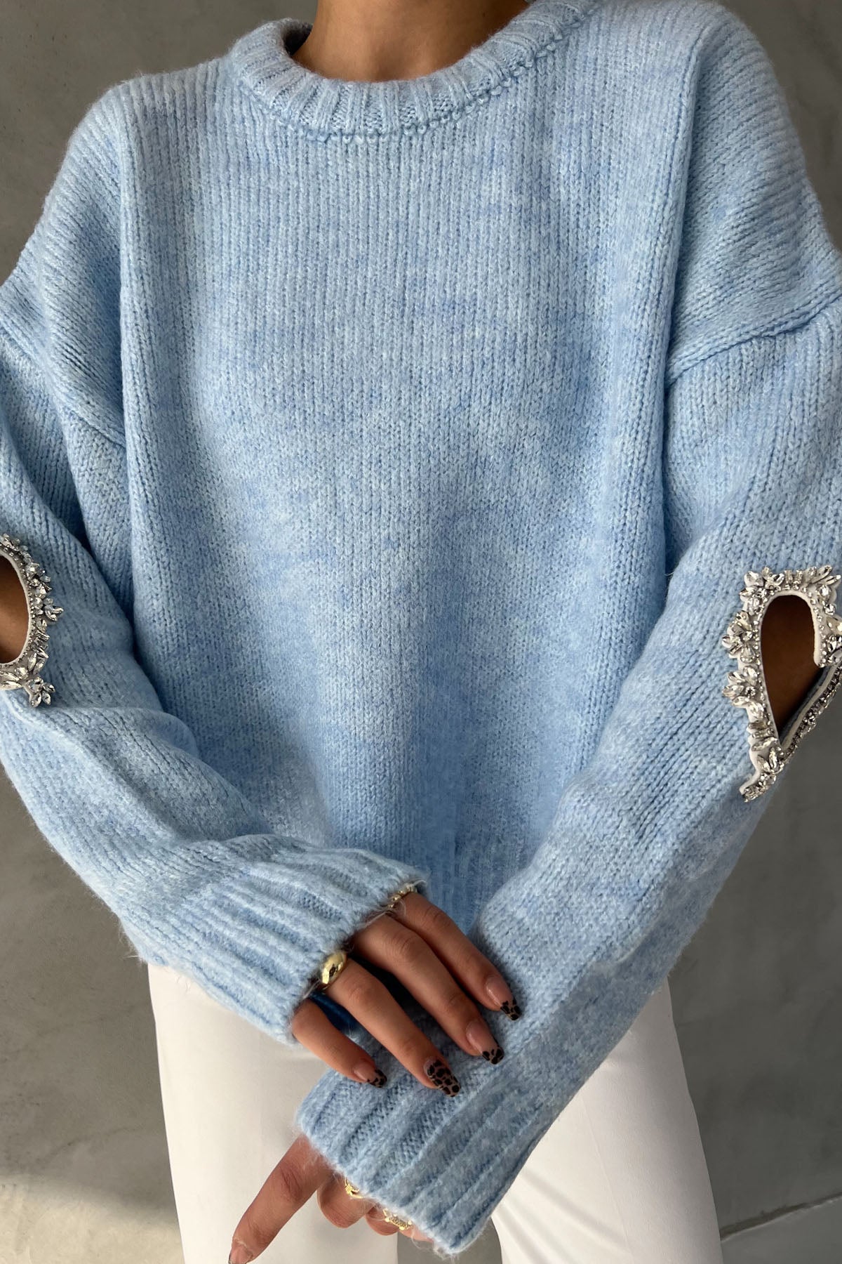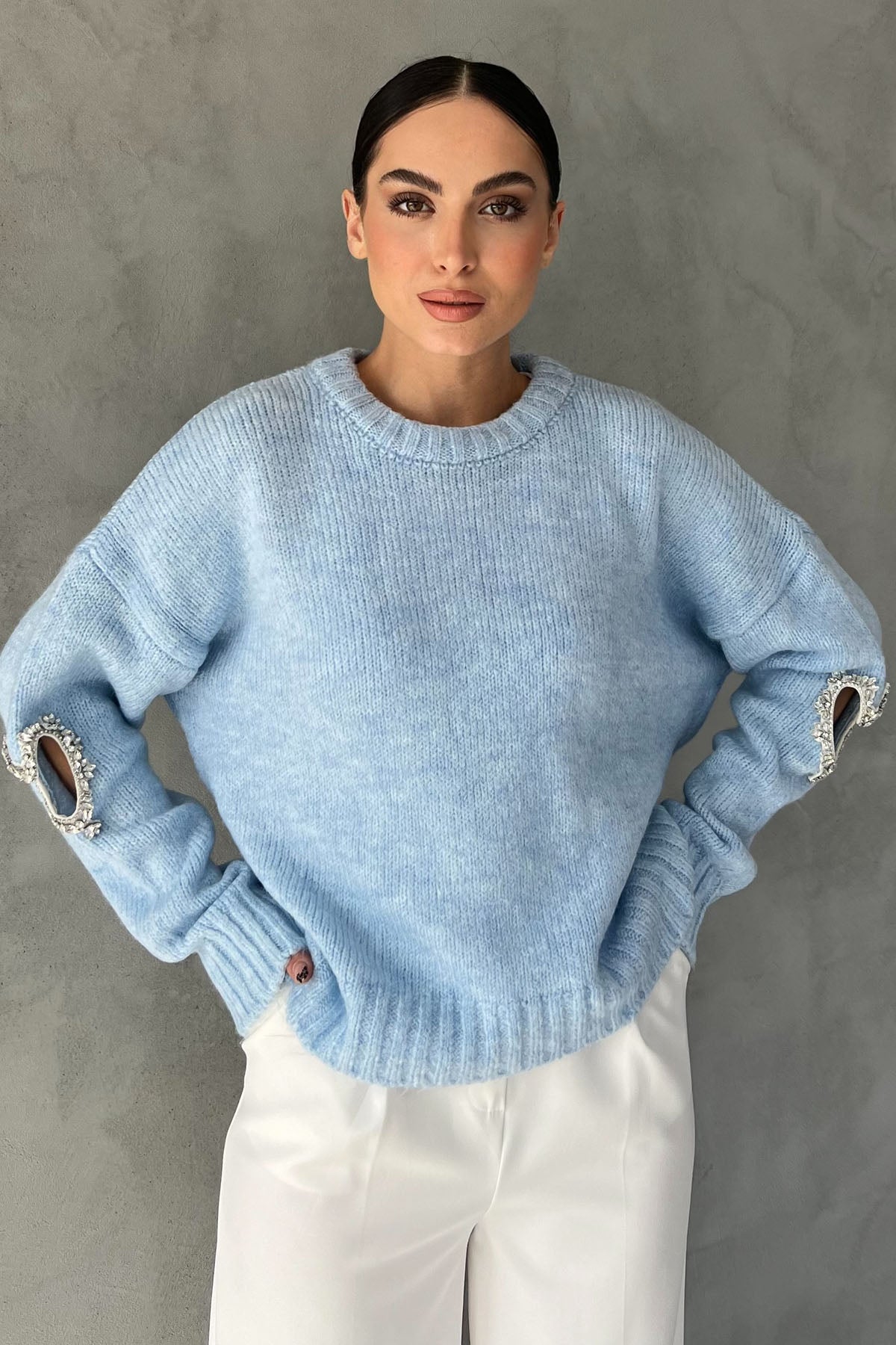Ürün Detayları ; Sezonun en sevilen Kazakları Seda Yalçın Atelier'de sizleri bekliyor.Bebe Mavisi Kolu Kalpli Taş Detay Triko Kazak kombinlerinizin vazgeçilmezi olacak !
