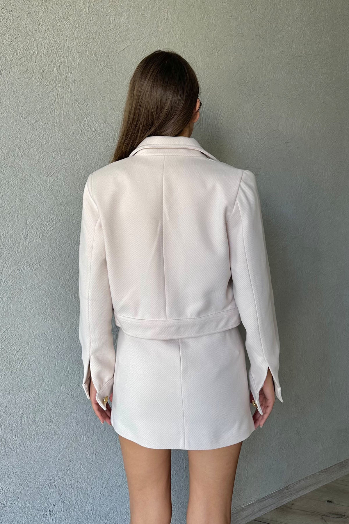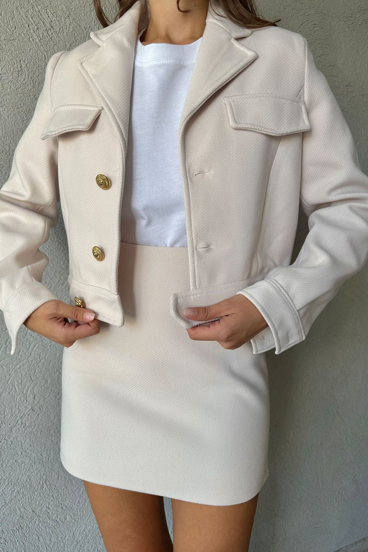 Bej Kaşe Gold Düğme Detaylı Etek Ve Ceket Takım SY-1064-Bej