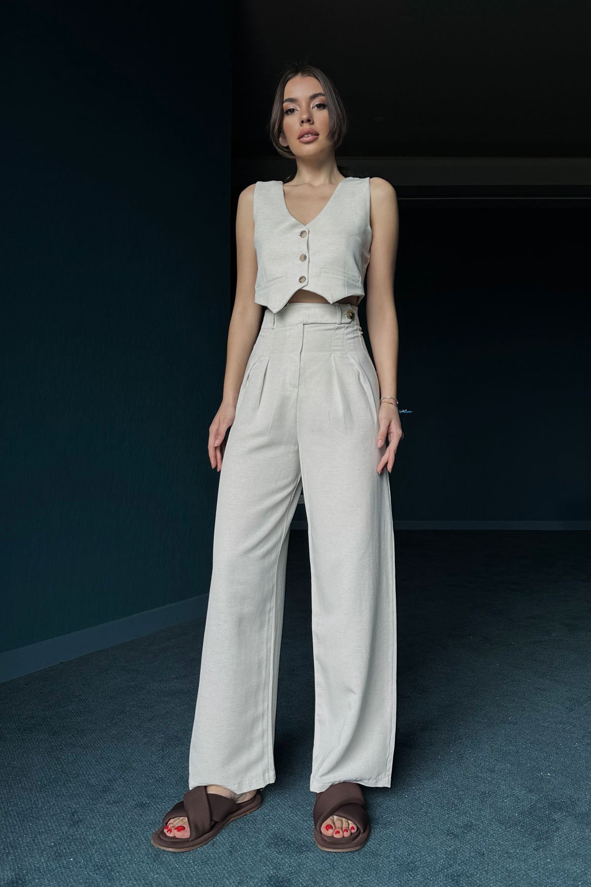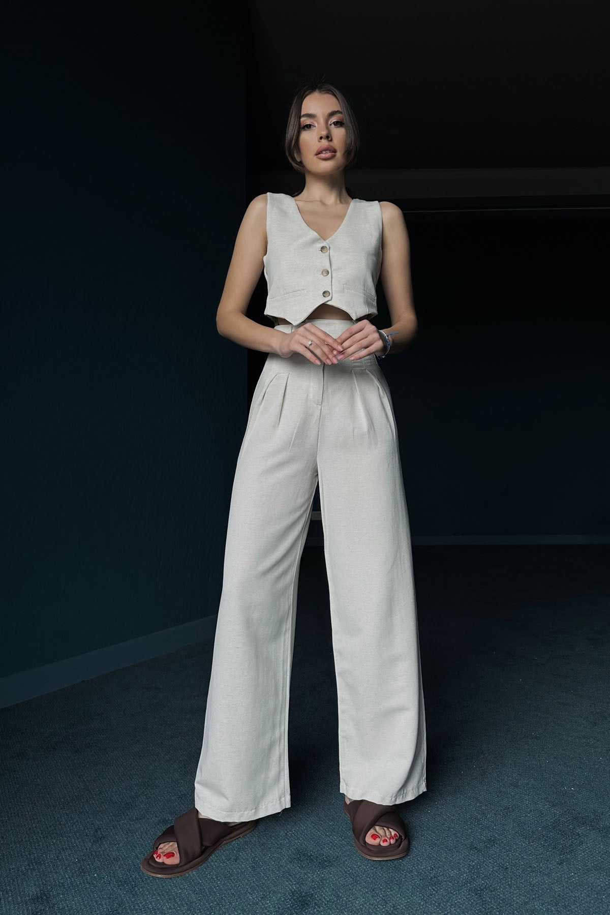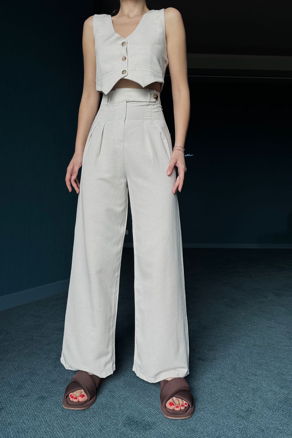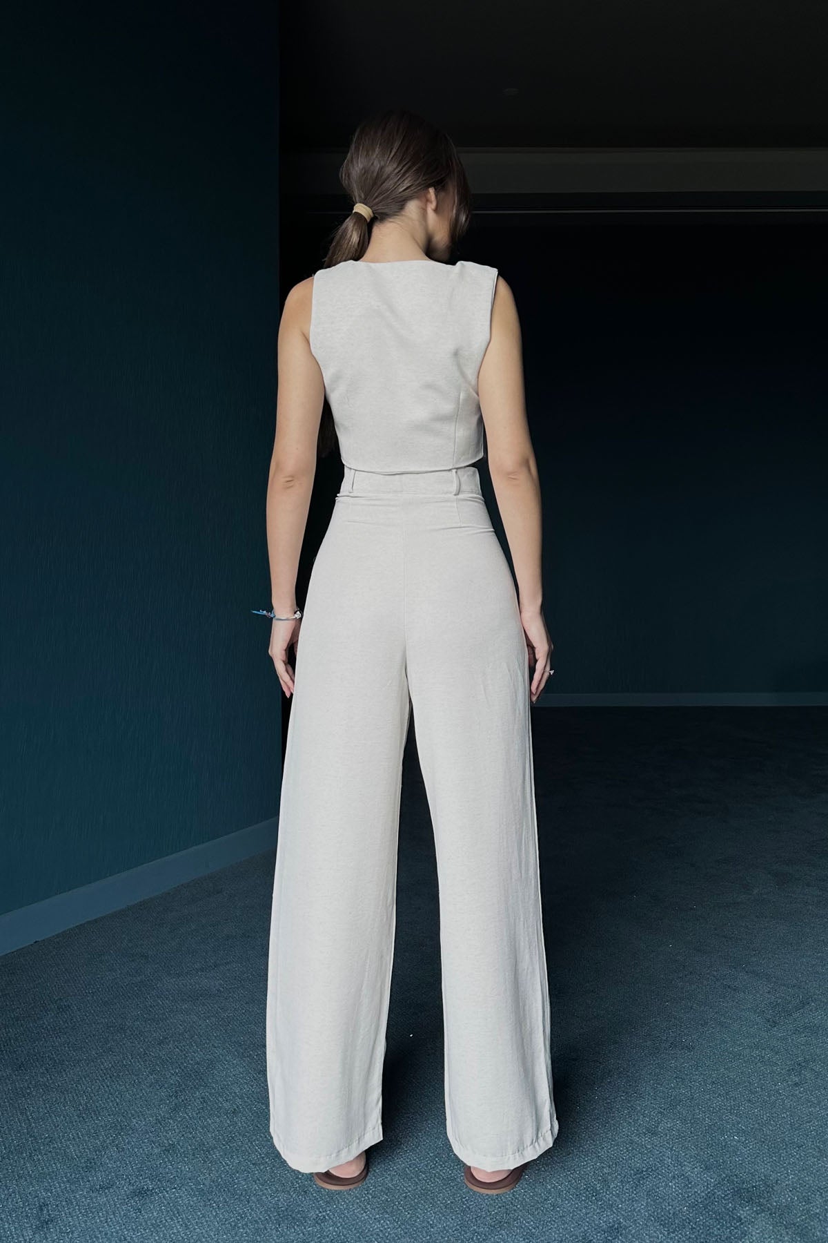 Bej Keten Yelek Pantolon Takım SY-0309-Bej