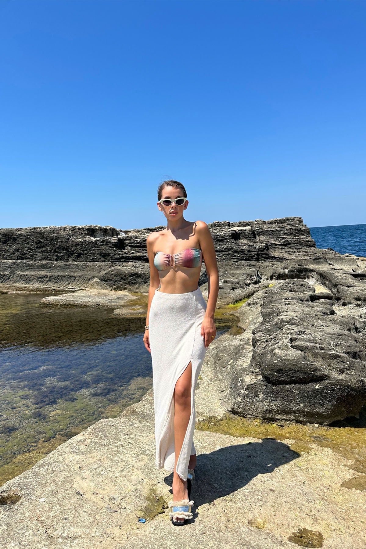Ürün Detayları ; Sezonun en sevilen etekleri Seda Yalçın Atelier'de sizleri bekliyor. Bej Merserize Yırtmaçlı Çan Etek.