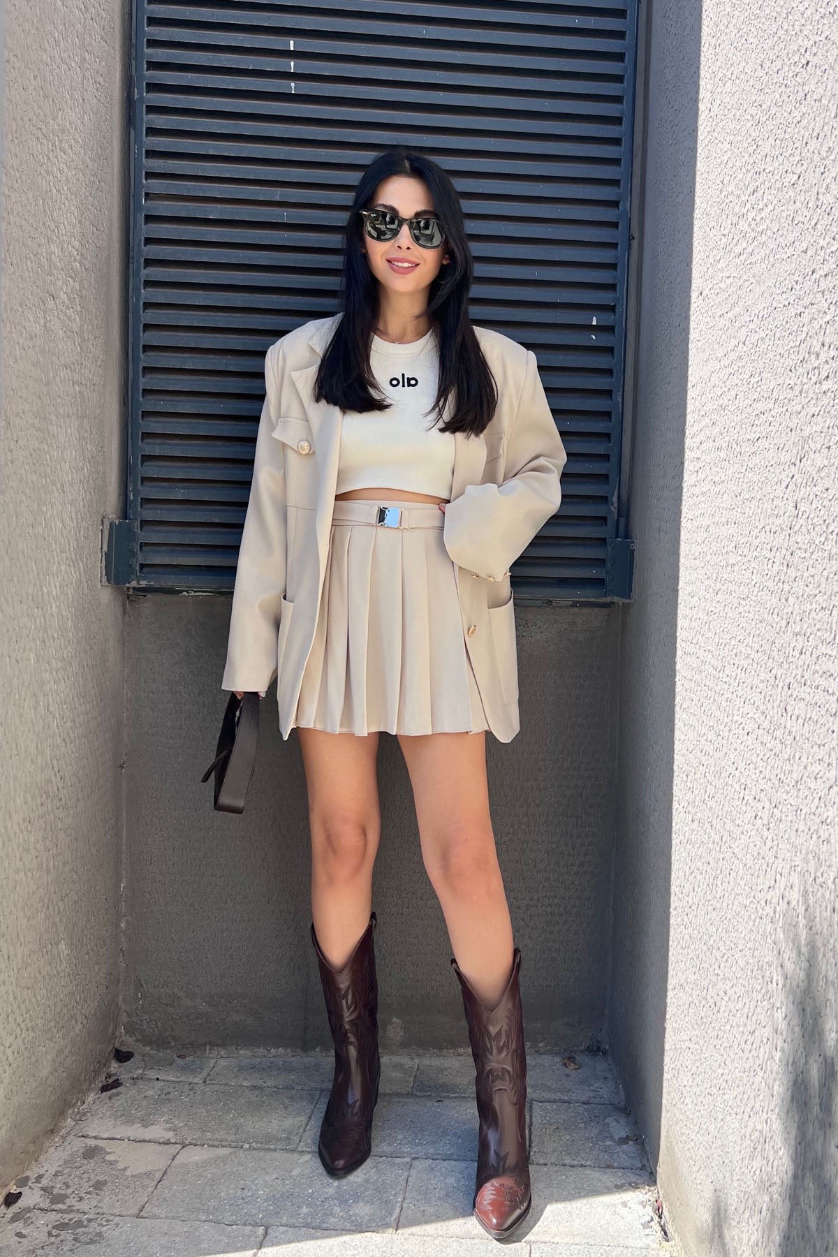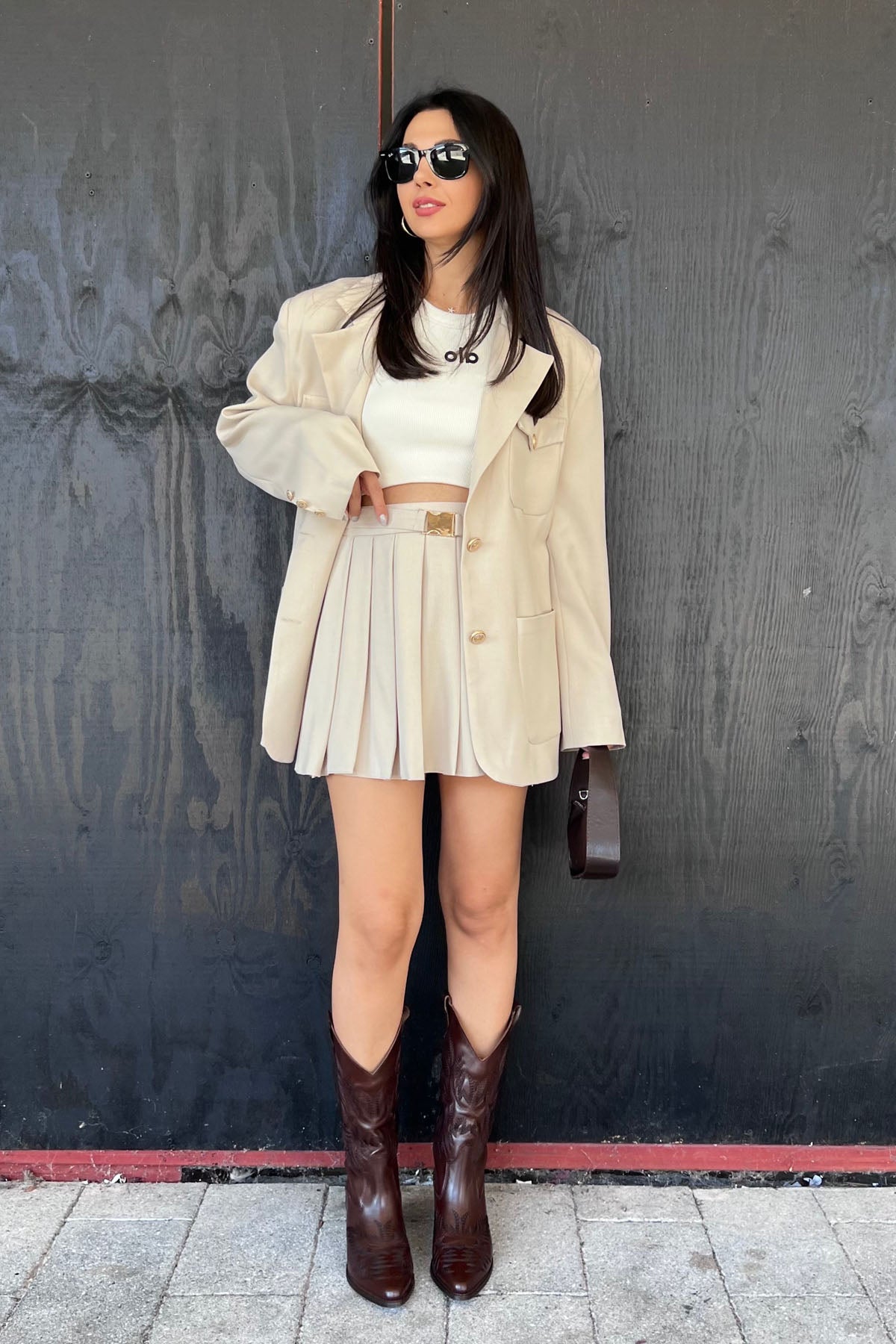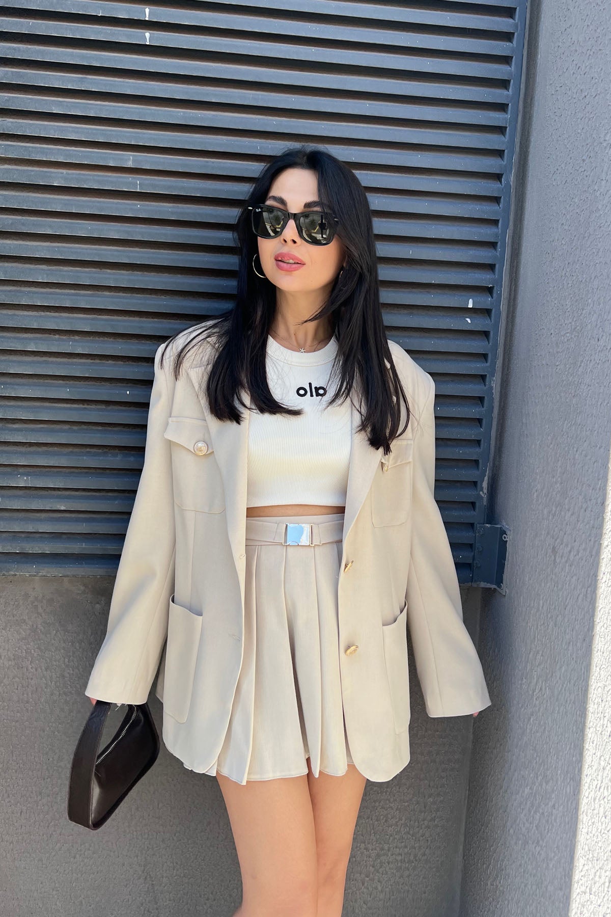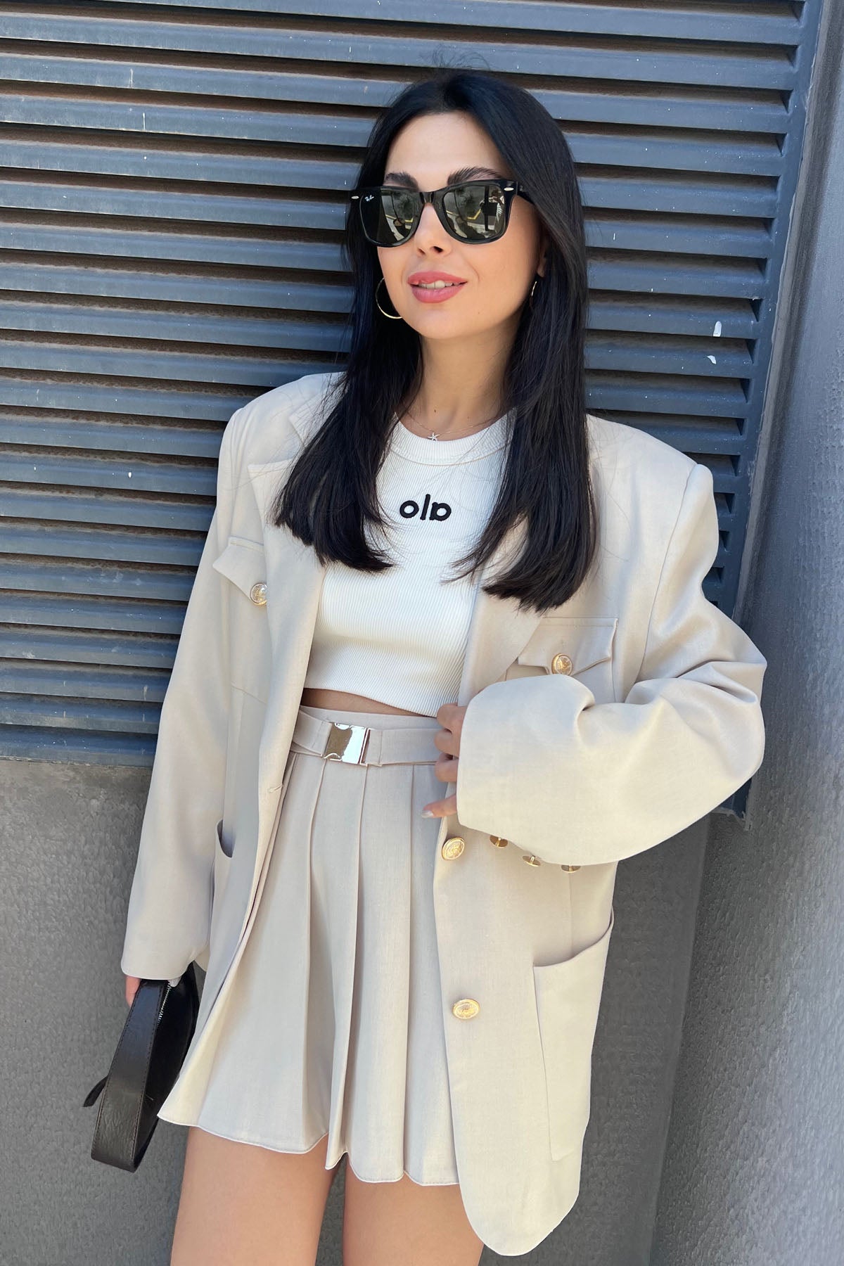 Bej Premium Gold Düğme detaylı Ceket ve Etek Takım SY-0982-Bej