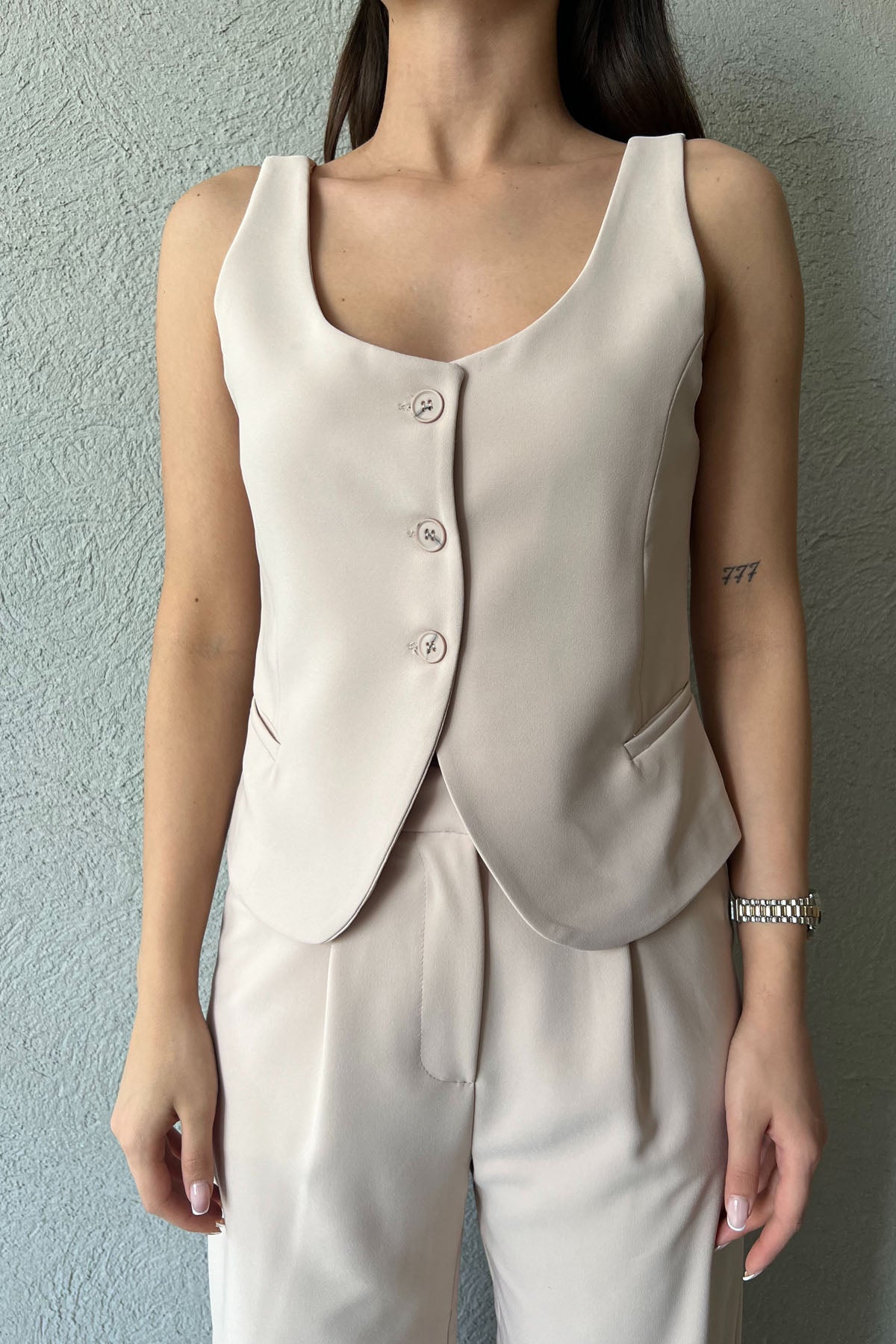 Ürün Detayları :Bej V Yaka Tasarım Klasik Yelek