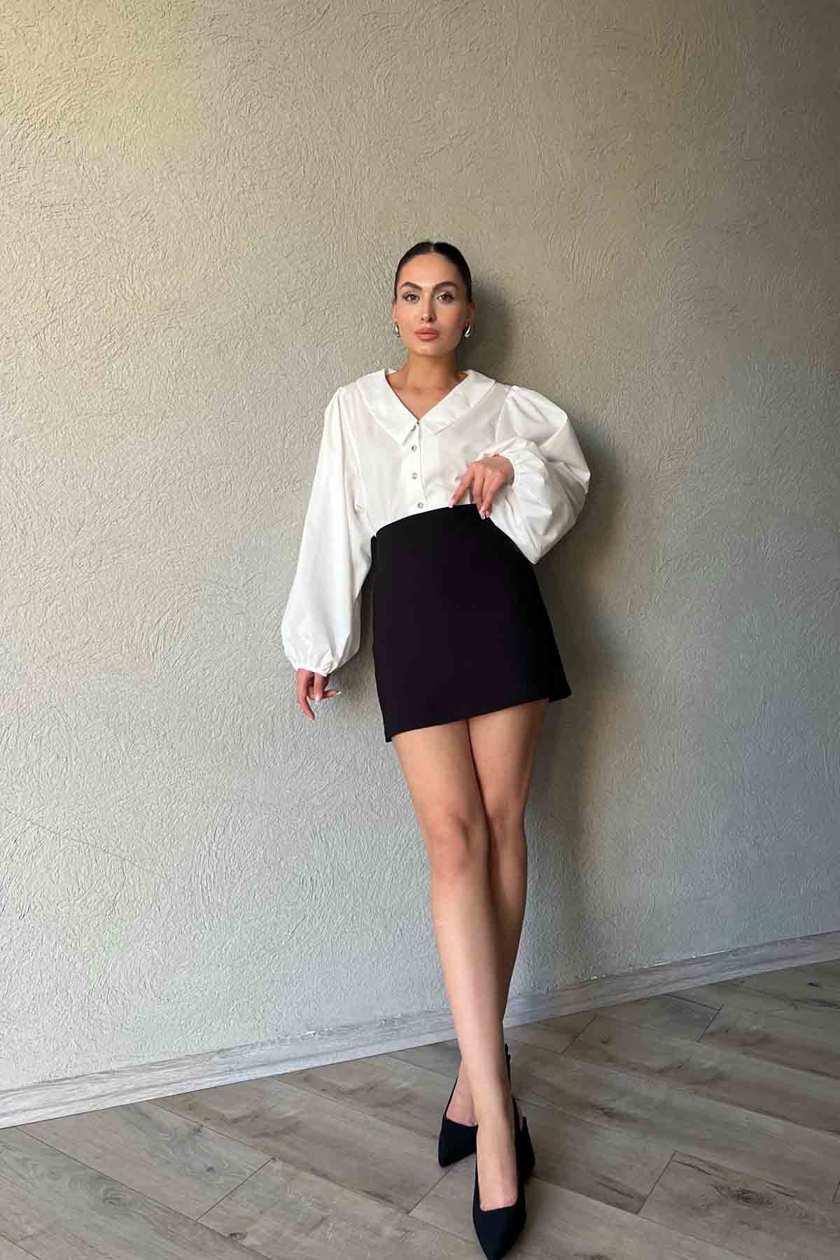 Ürün Detayları ;Beyaz Bebe Yaka Taş Düğme Detaylı Balon Kol Gömlek