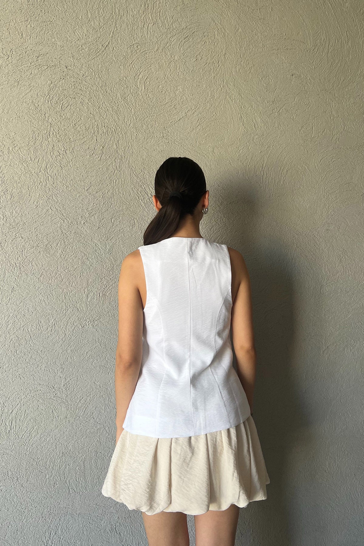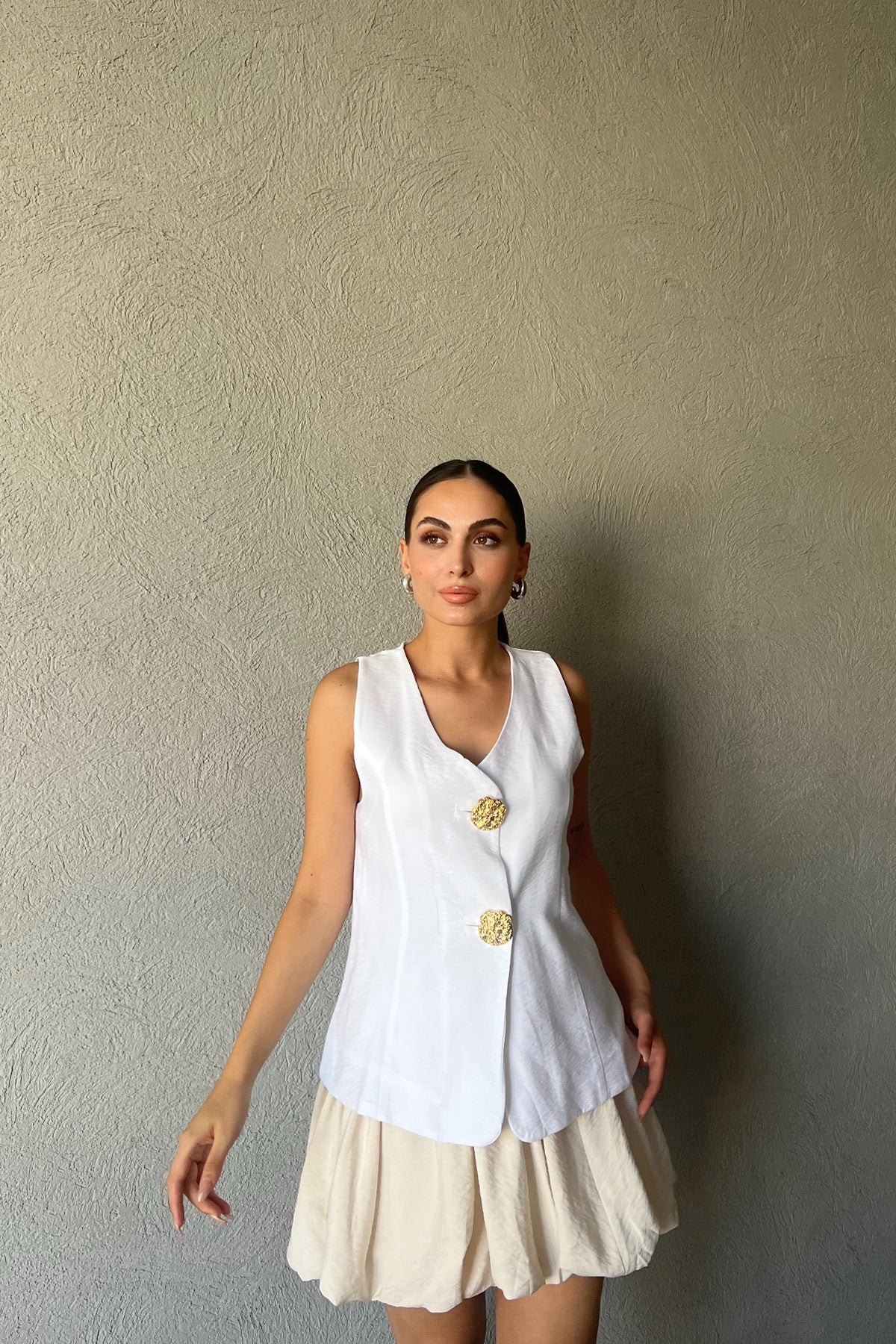 Ürün Detayları ;;Beyaz Büyük Düğmeli Yelek