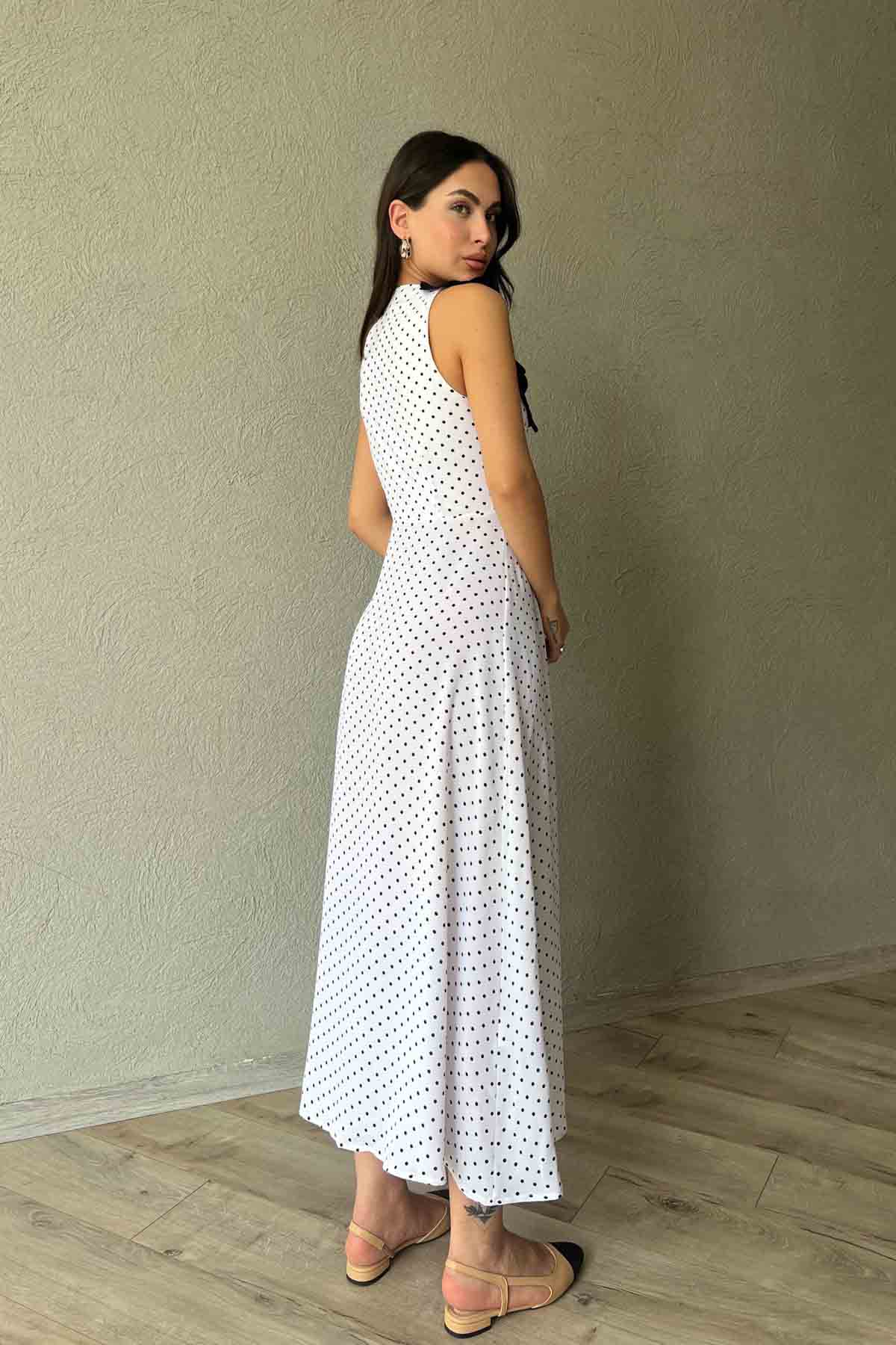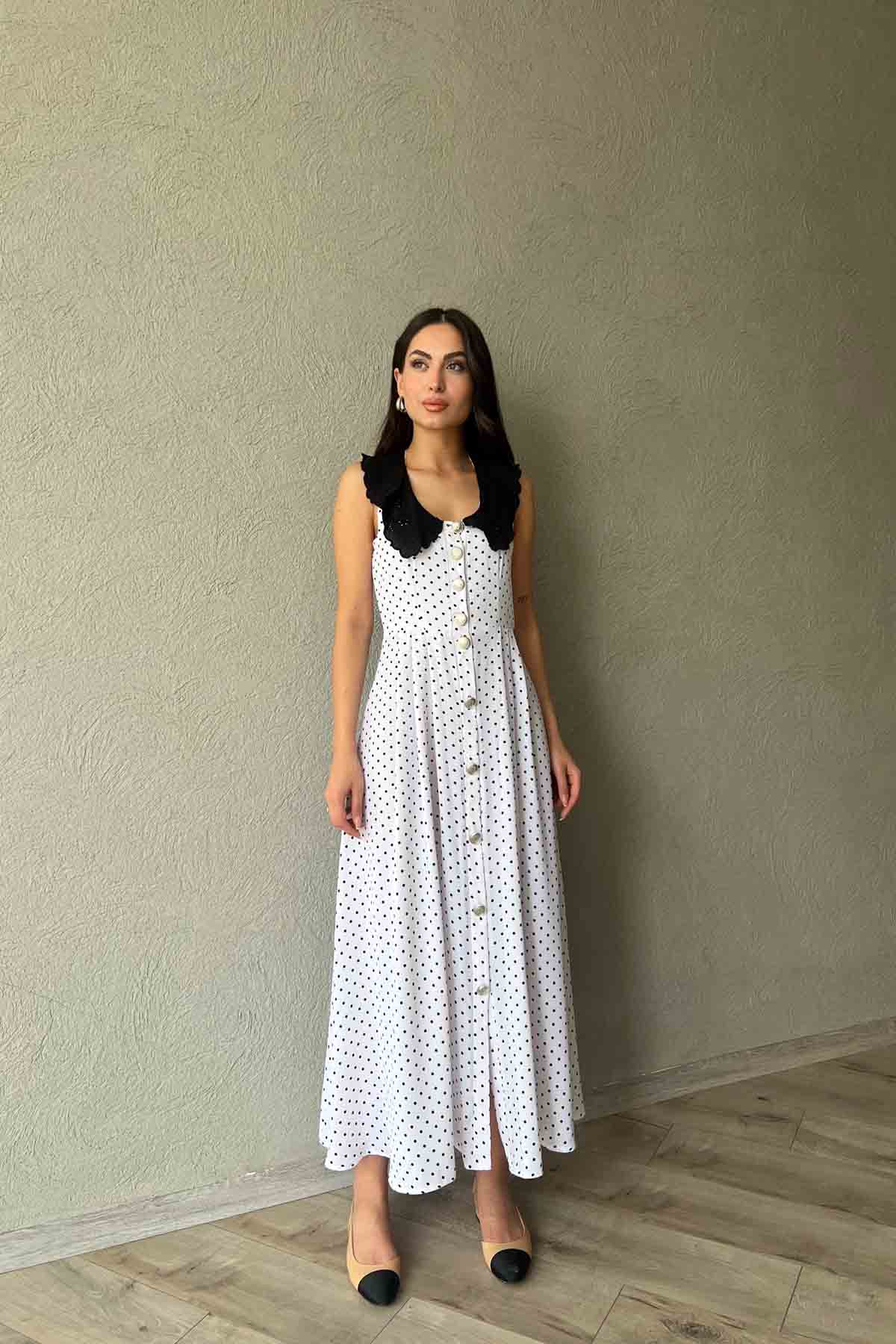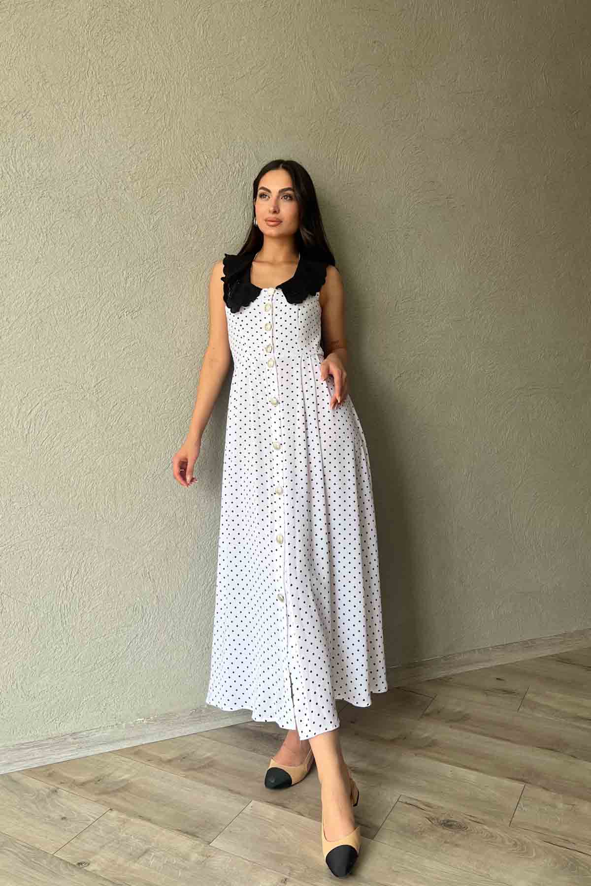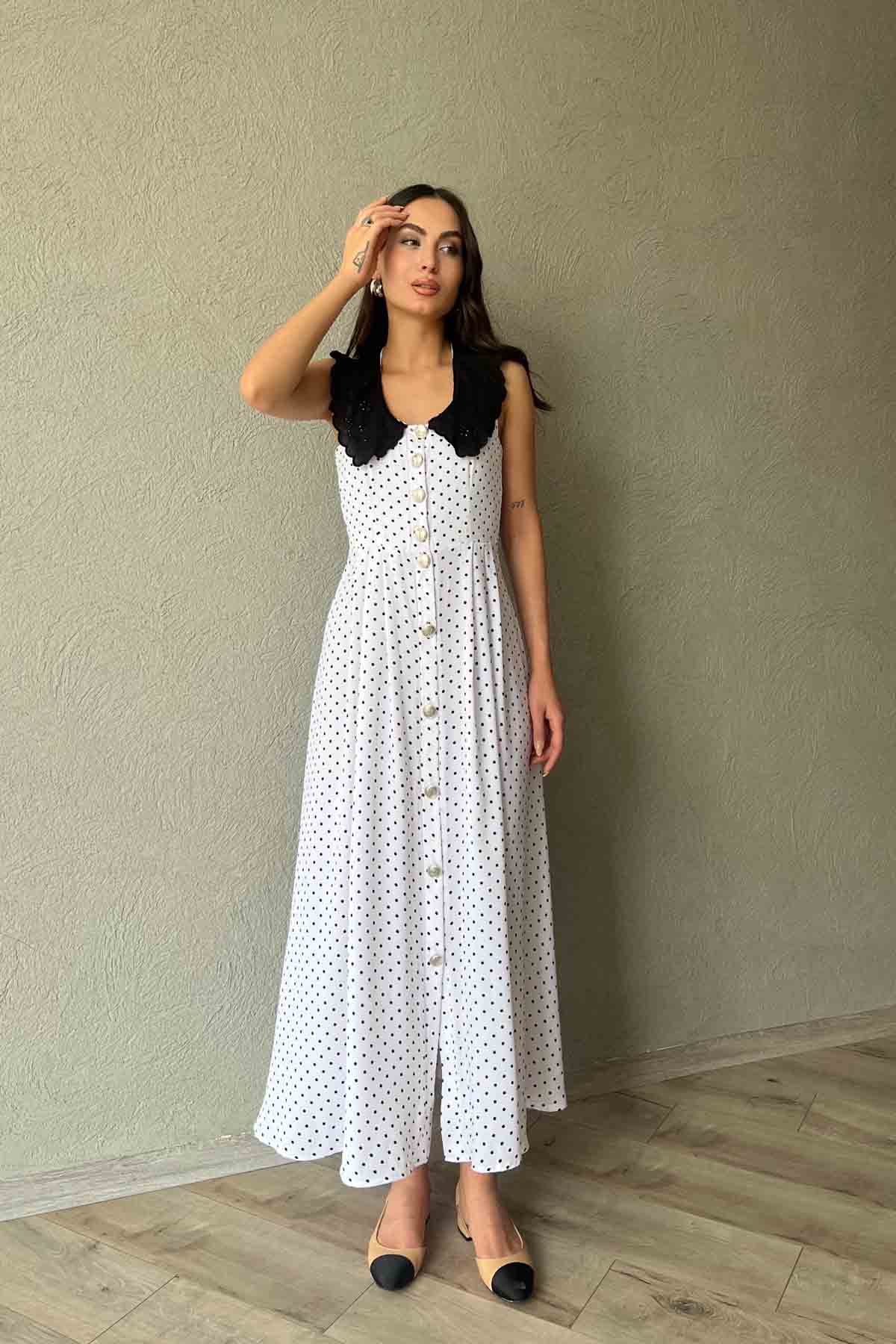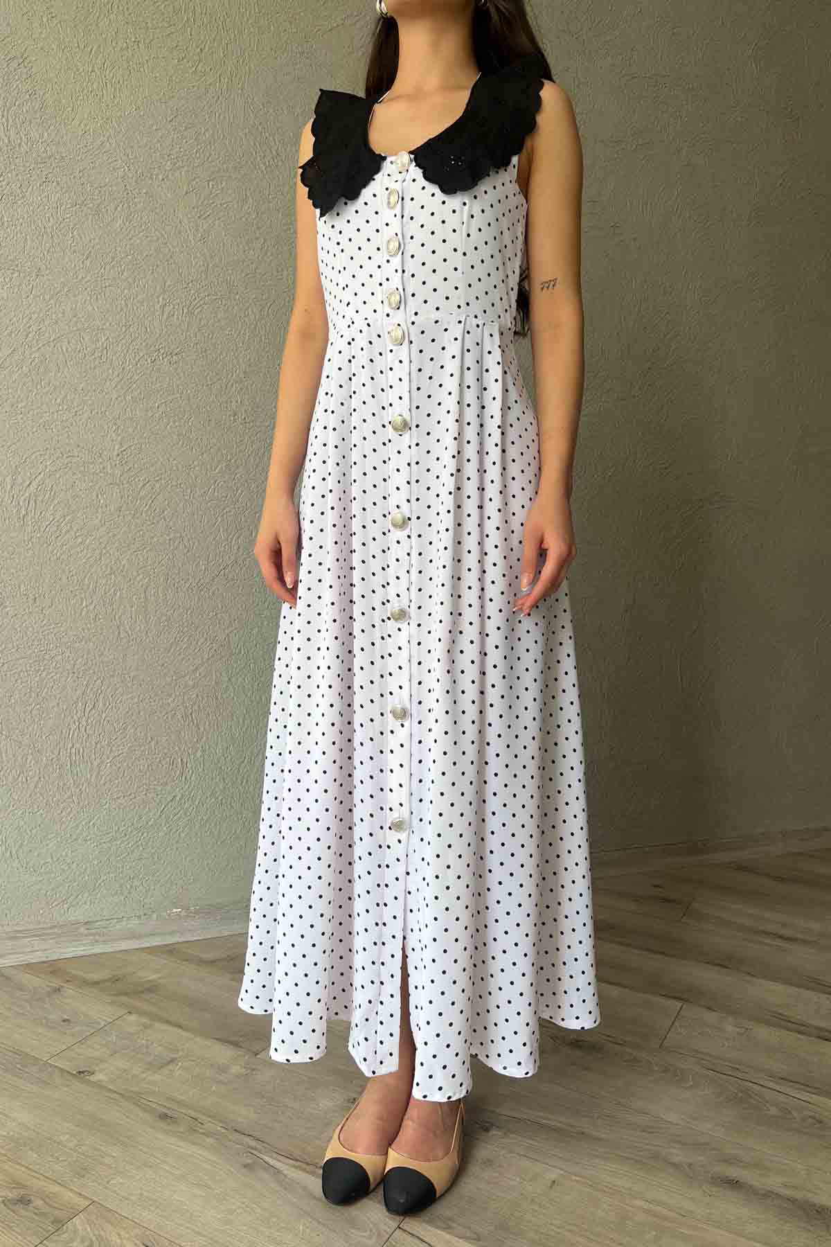 Beyaz Dantel Yaka Puantiyeli Tasarım Elbise SY-0638-Beyaz