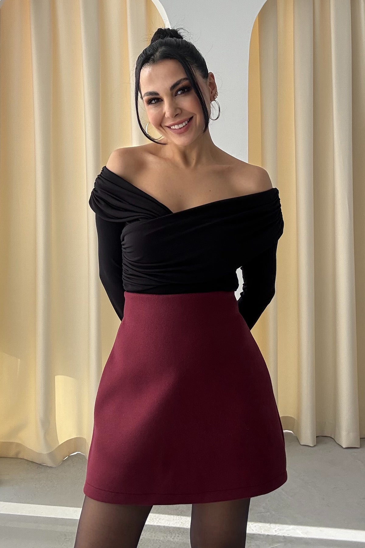 Bordo Kısa Kaşe Etek SY-3480-Bordo
