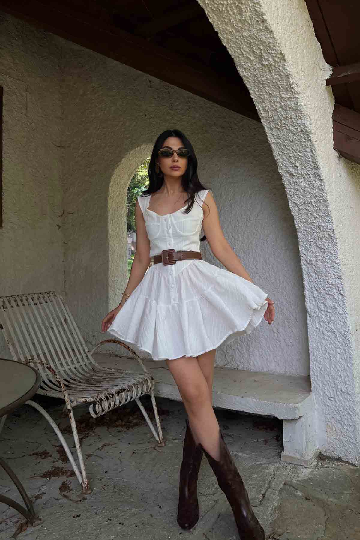 Ekru Düğme Detaylı Tulum Elbise SY-1929-Ekru