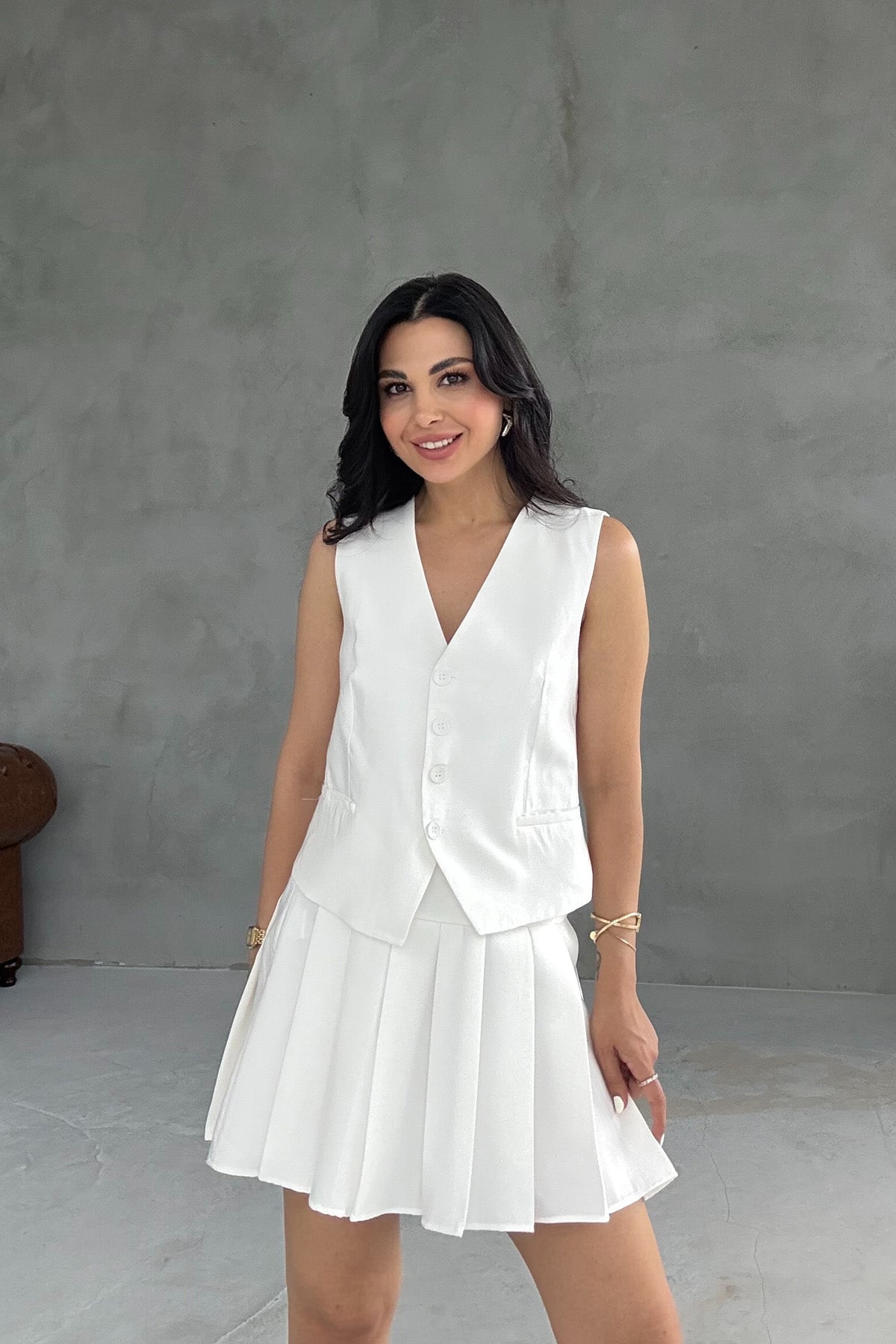 Ekru Maskülen Yelek Piliseli Etek Takım SY-2030-Ekru