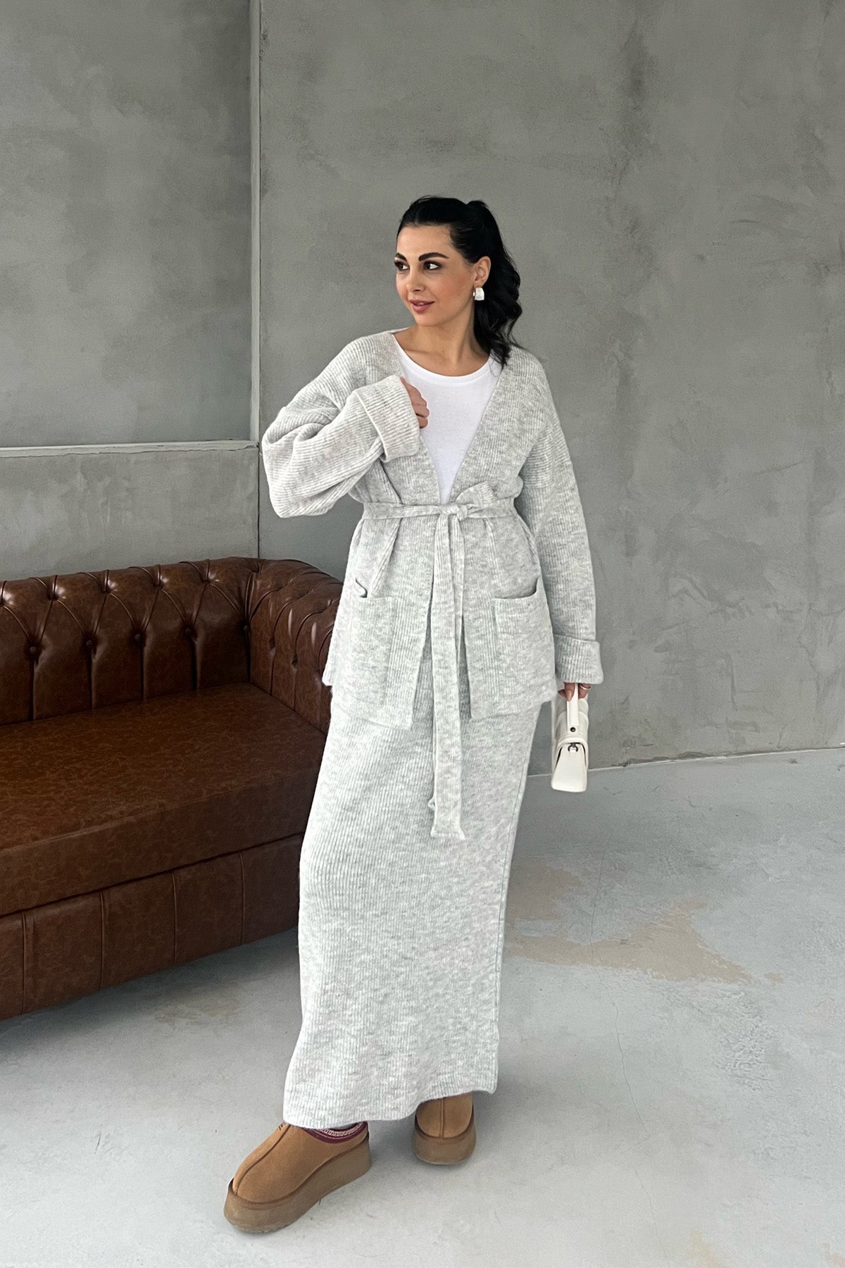 Gri Bolera Triko Etekli Takım SY-2919-Gri